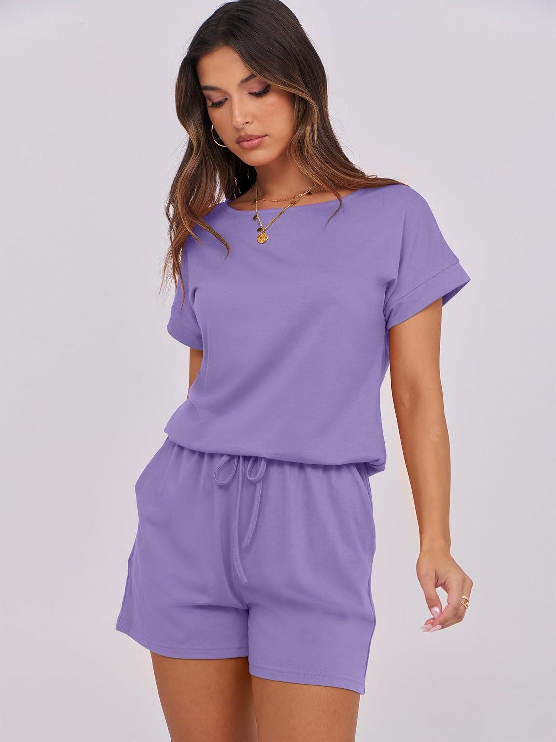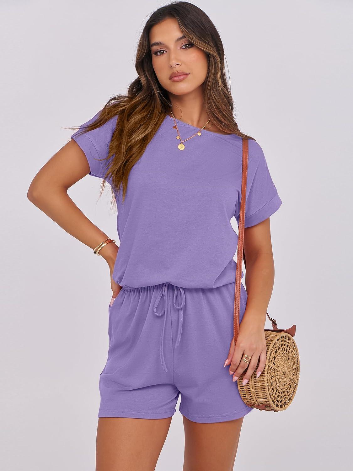 ANRABESS Rompers for Women Summer 2026 Casual Dressy One Piece Tshirt Short Pants Jumpsuit Beach Vacation Outfit Clothes(04 Purple)