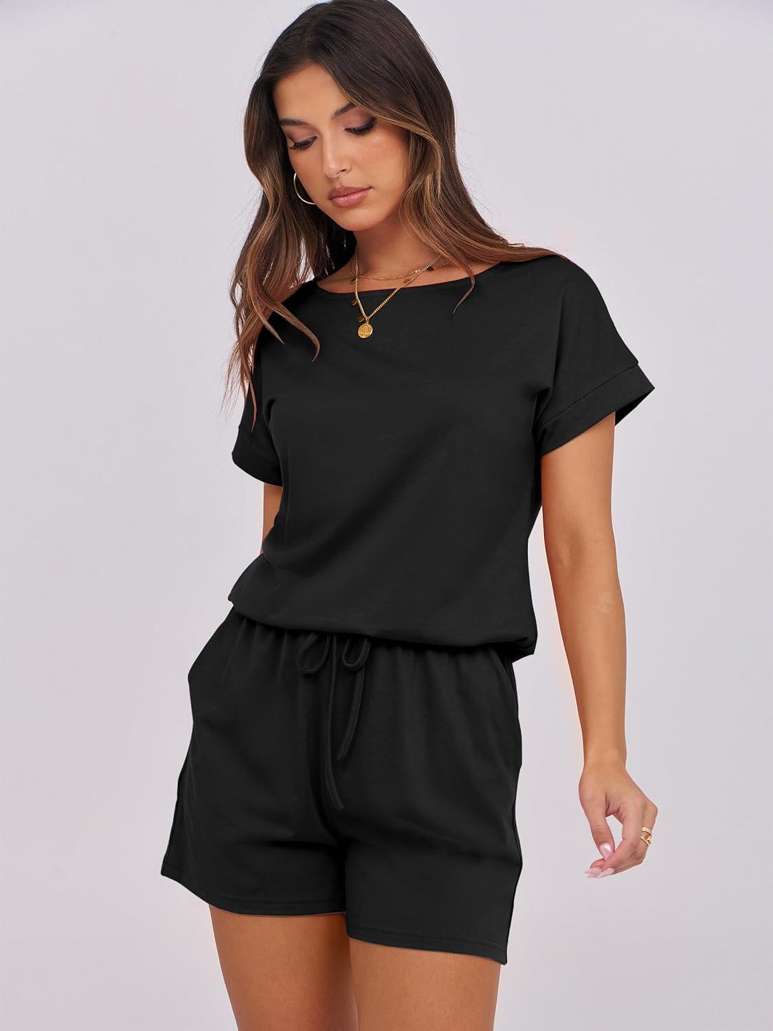 ANRABESS Rompers for Women Summer 2026 Casual Dressy One Piece Tshirt Short Pants Jumpsuit Beach Vacation Outfit Clothes(Black)