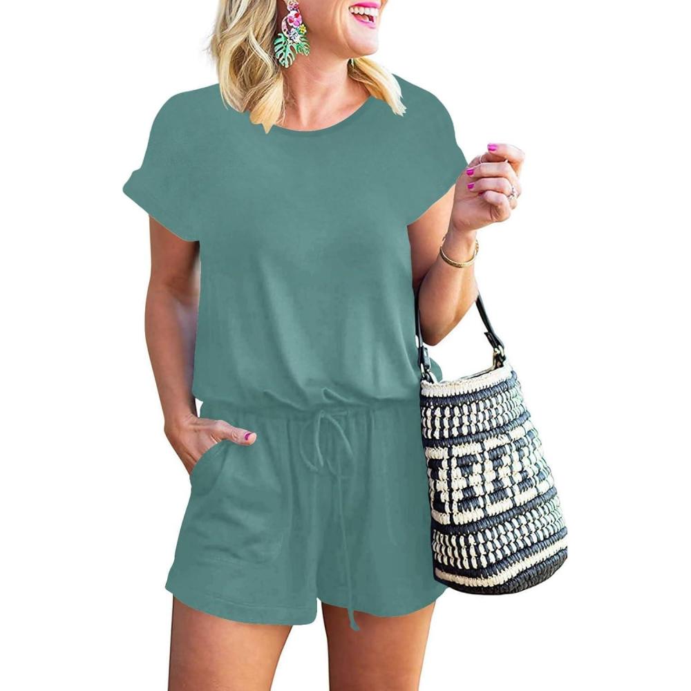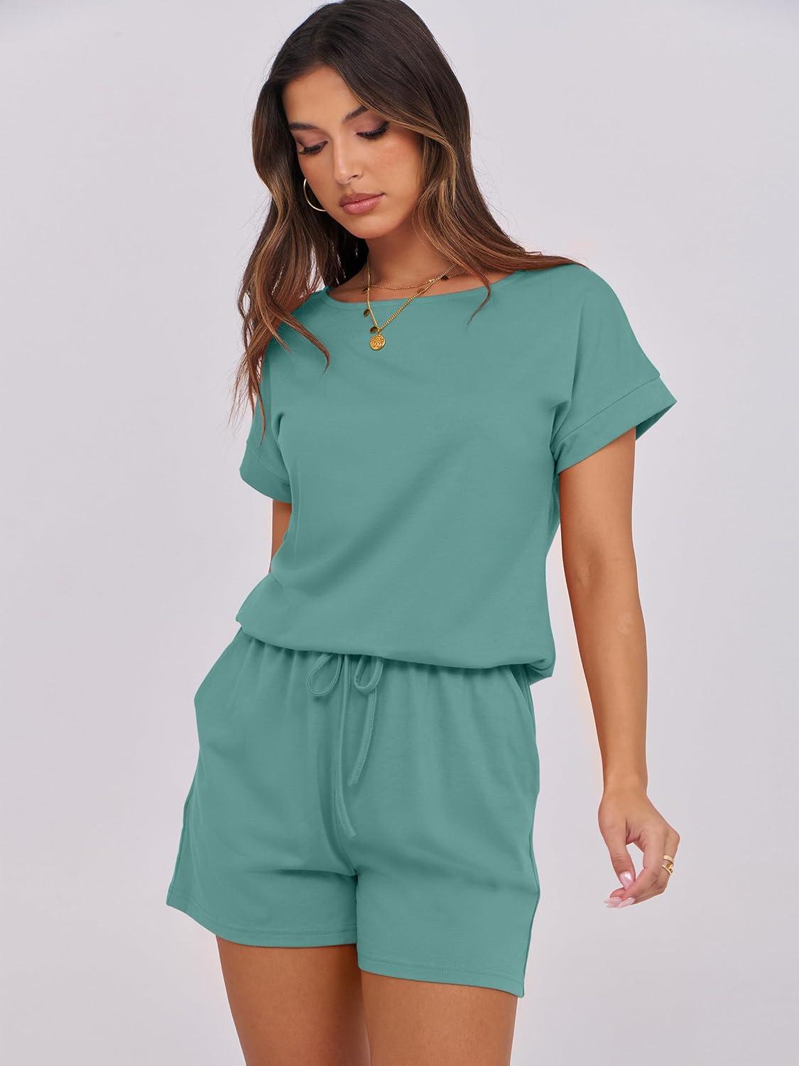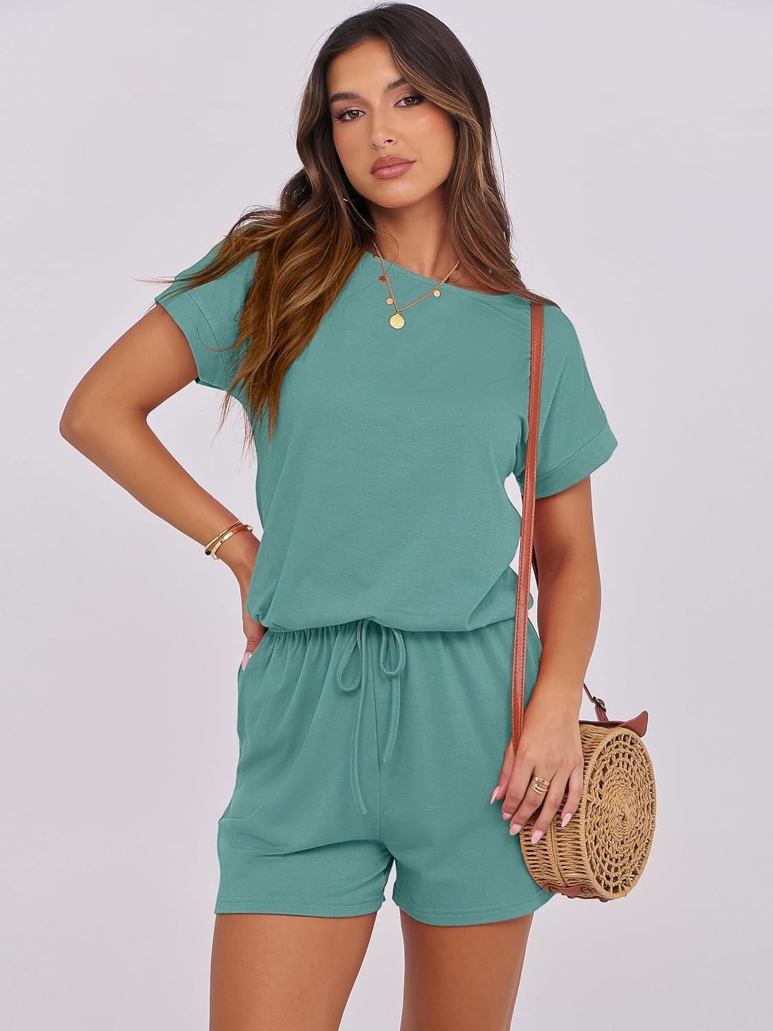 ANRABESS Rompers for Women Summer 2026 Casual Dressy One Piece Tshirt Short Pants Jumpsuit Beach Vacation Outfit Clothes(Lake)