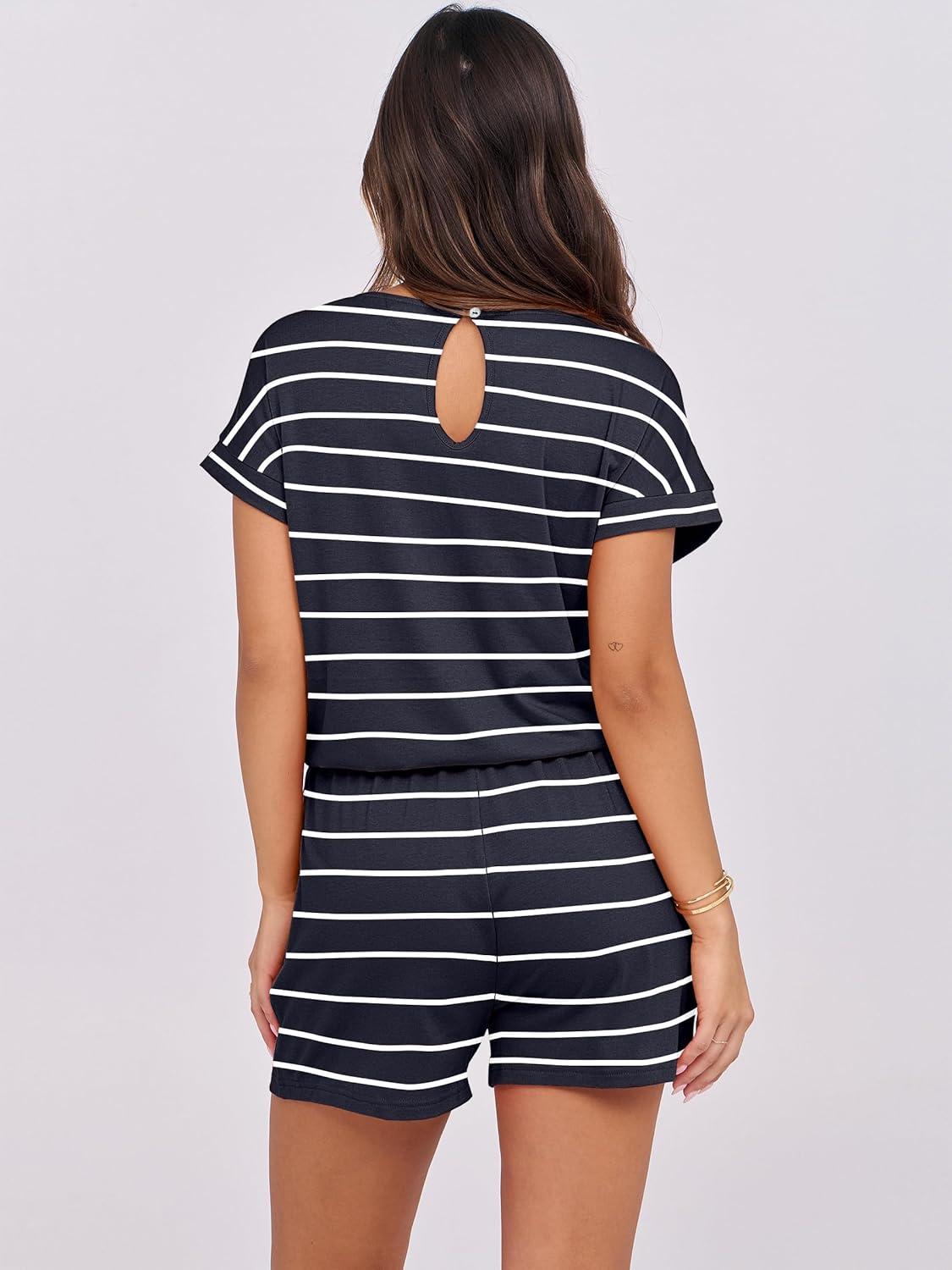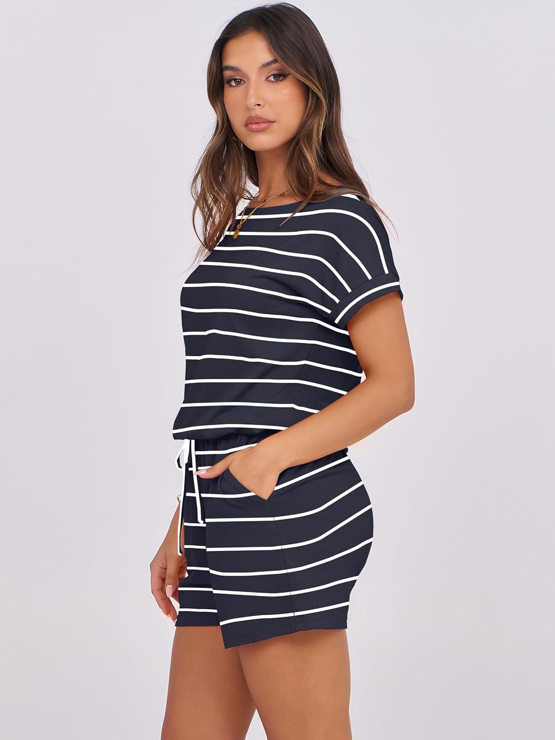 ANRABESS Rompers for Women Summer 2026 Casual Dressy One Piece Tshirt Short Pants Jumpsuit Beach Vacation Outfit Clothes(Navy White)