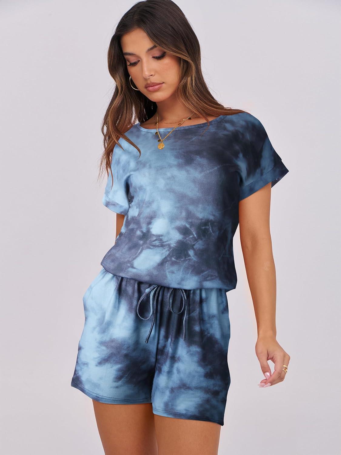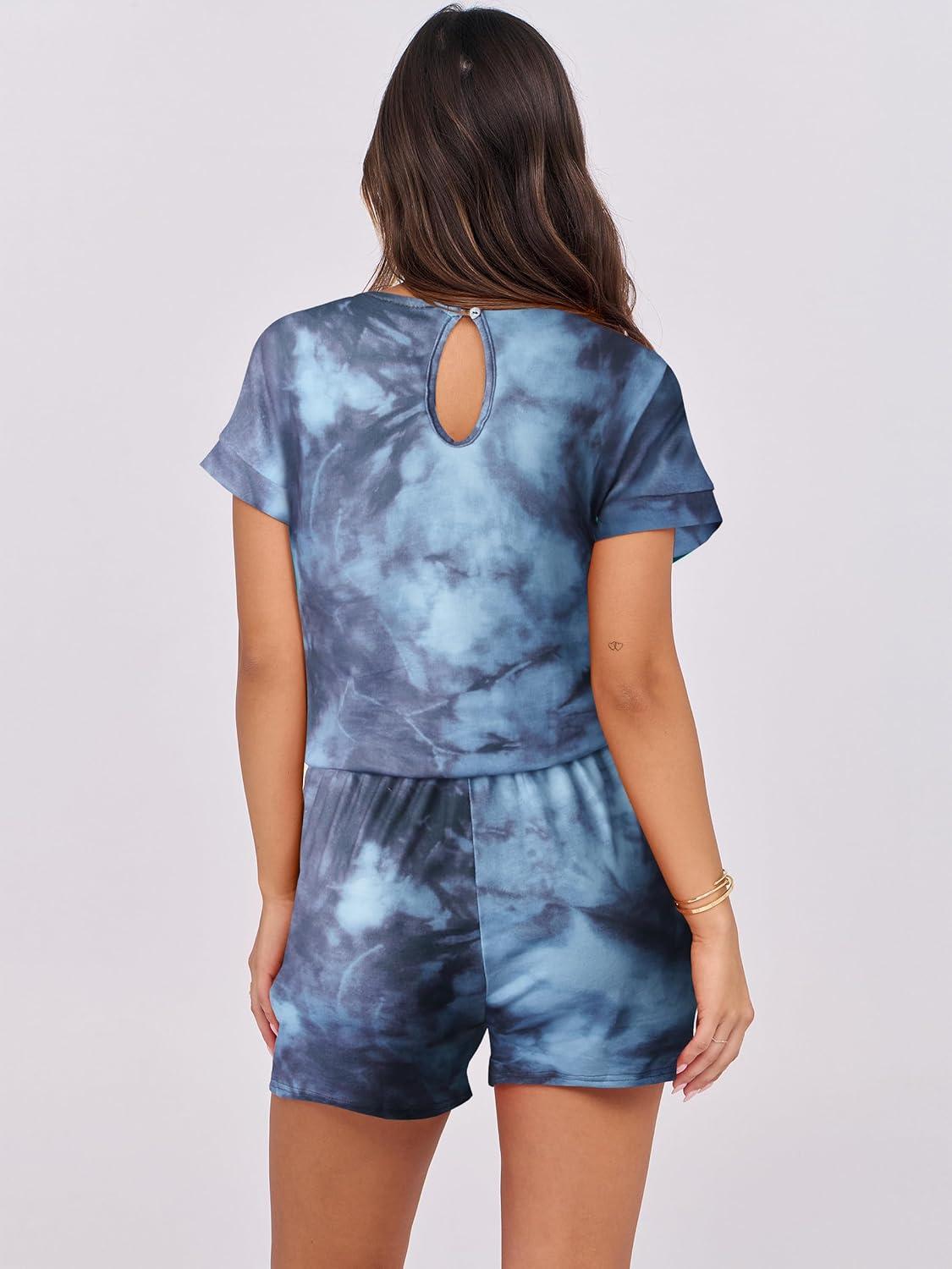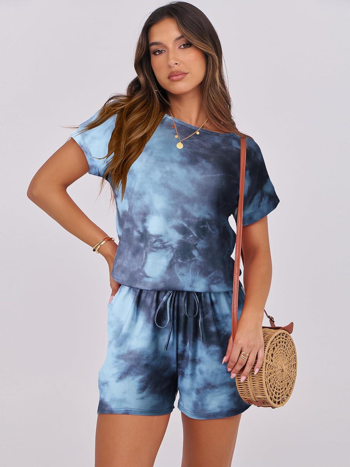 ANRABESS Rompers for Women Summer 2026 Casual Dressy One Piece Tshirt Short Pants Jumpsuit Beach Vacation Outfit Clothes(Tie Dye Space)