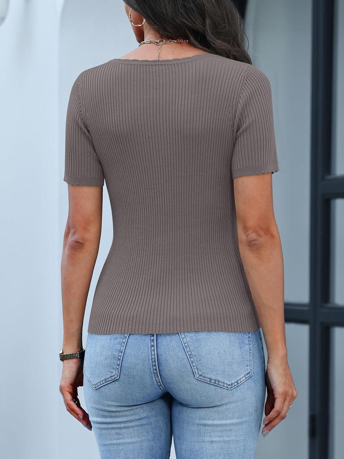 Be the first to review “ANRABESS Short Sleeve Sweater for Women Scoop Neck Casual Lightweight Ribbed Knit Pullover Tops 2026 Spring Summer Outfits(Camel)”