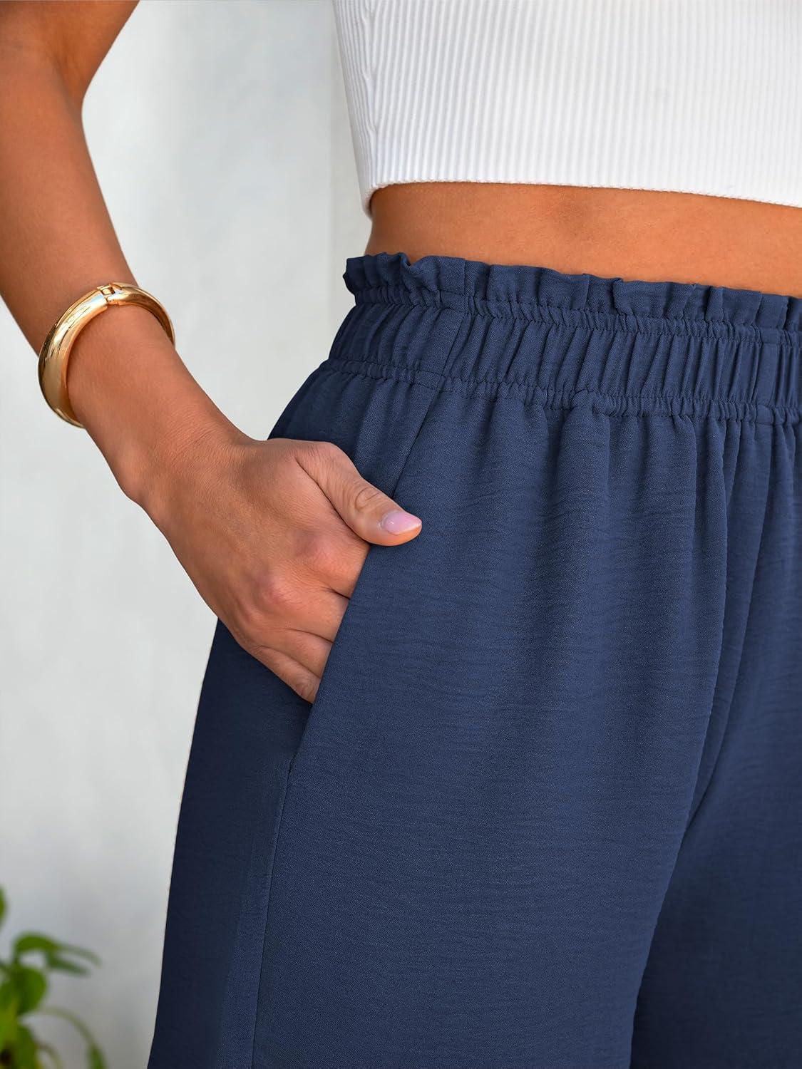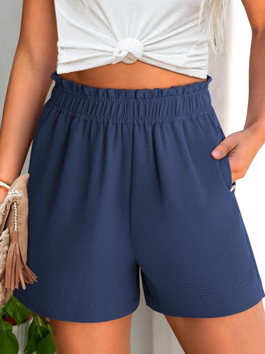 ANRABESS Shorts for Women Summer Casual Elastic High Waisted Dressy Lounge Shorts Comfy Bottoms 2025 Beach Vacation Clothes(Deep Blue)