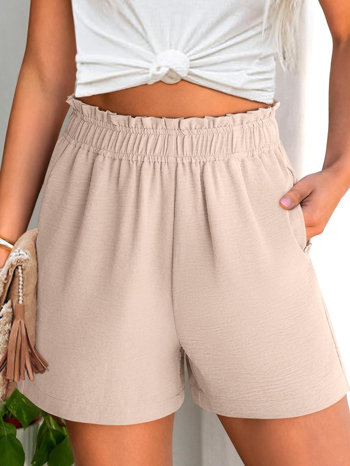 imageANRABESS Shorts for Women Summer Casual Elastic High Waisted Dressy Lounge Shorts Comfy Bottoms 2025 Beach Vacation ClothesKhaki