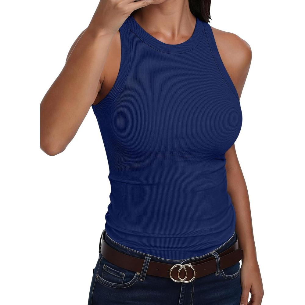 ANRABESS Sleeveless Tank Tops for Women High Neck Racerback Ribbed Knit Top Summer 2026 Casual Basic Slim Fit Workout Shirts(Navy Blue)