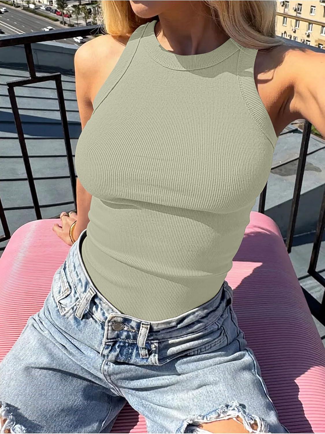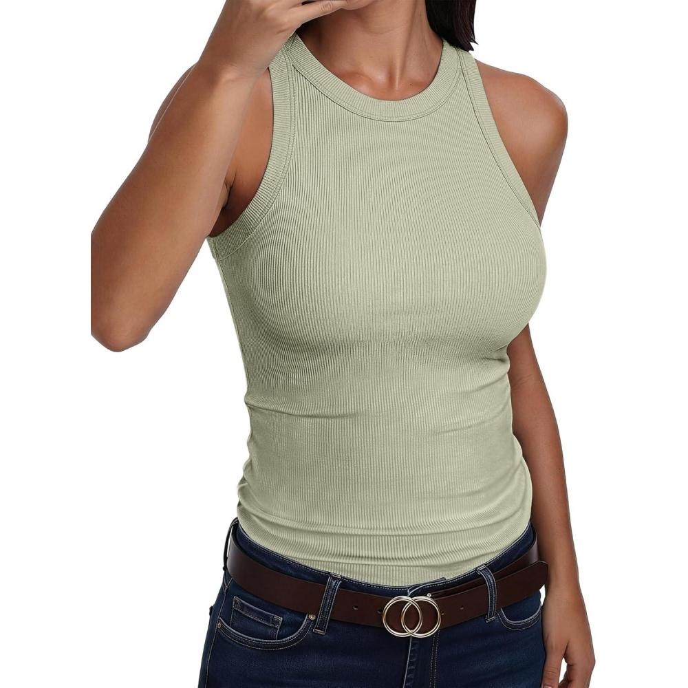 ANRABESS Sleeveless Tank Tops for Women High Neck Racerback Ribbed Knit Top Summer 2026 Casual Basic Slim Fit Workout Shirts(Sage Green)
