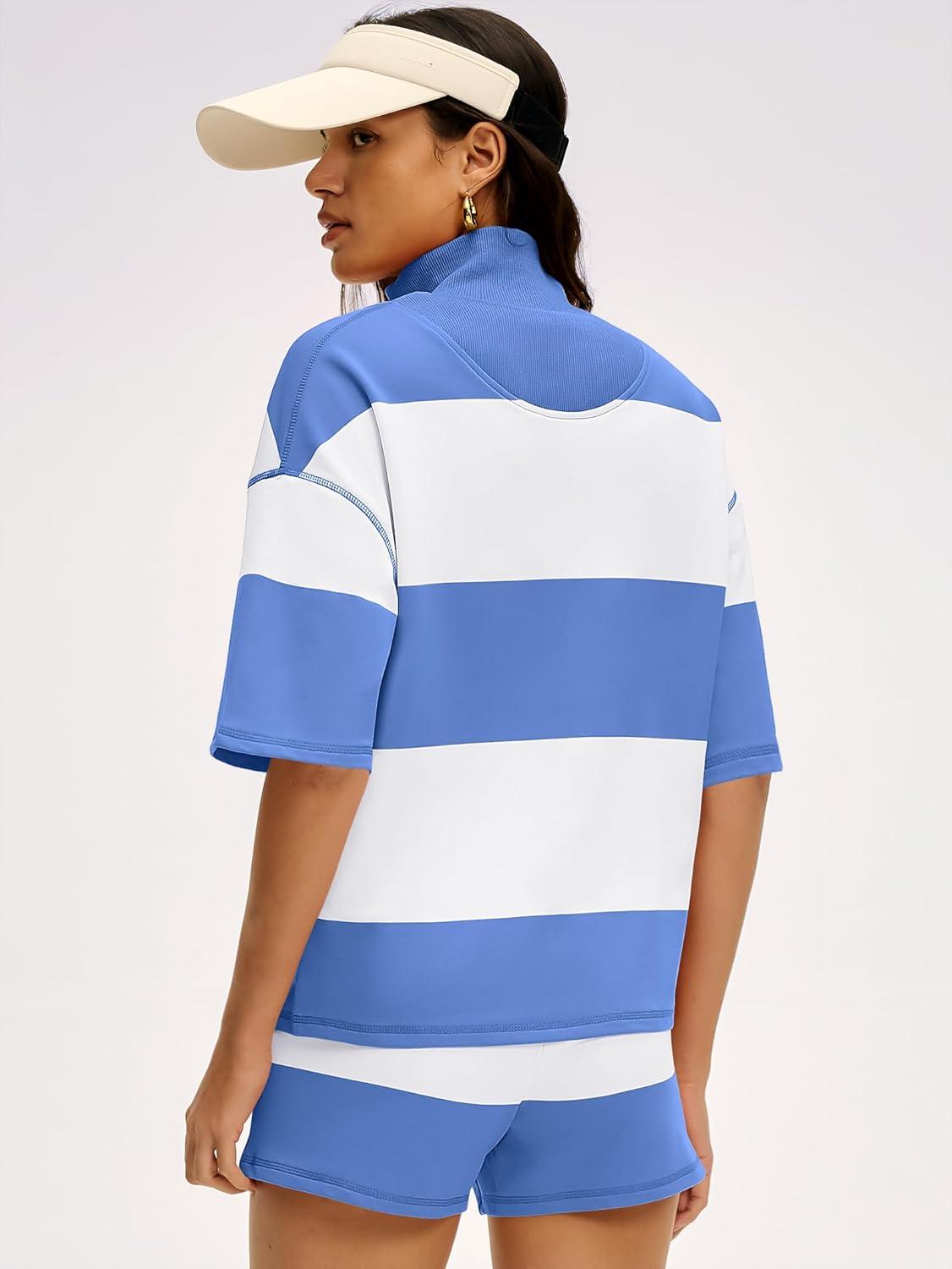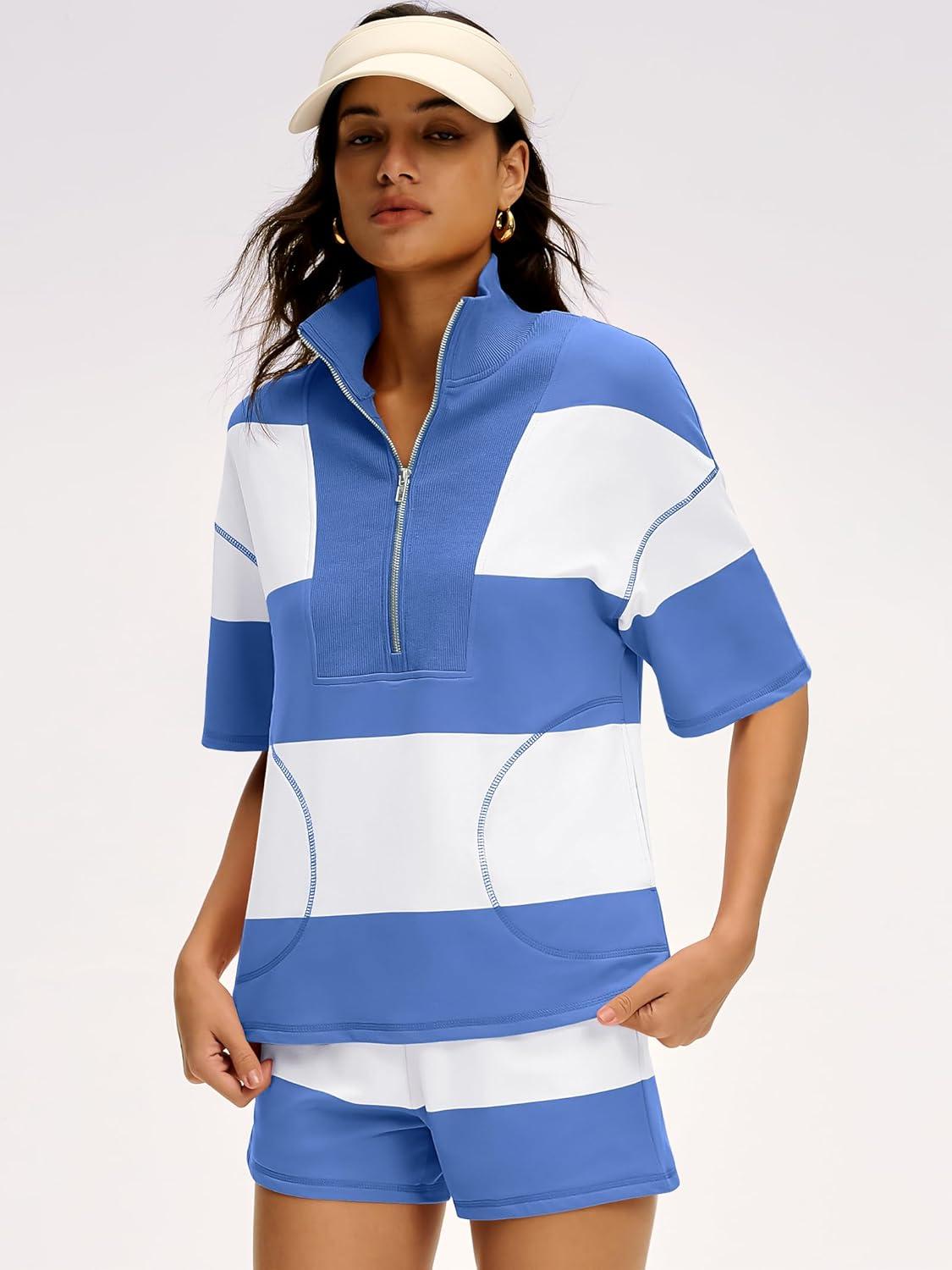 Be the first to review “ANRABESS Striped Short Sets for Women 2 Piece Outfits Summer Casual Oversized Workout Athletisure Travel Lounge Matching Sets(Blue White)” Cancel reply