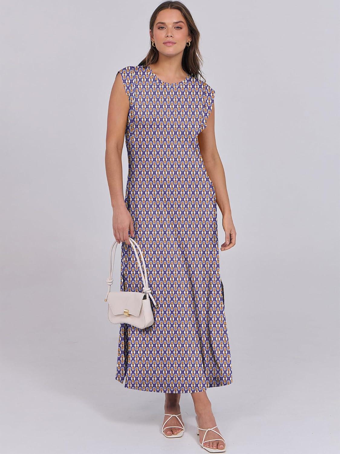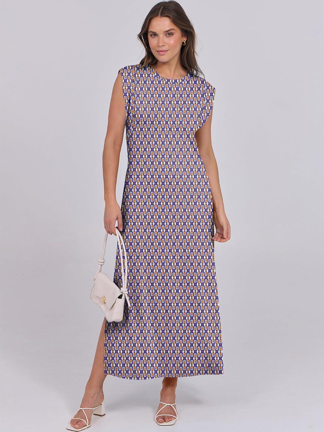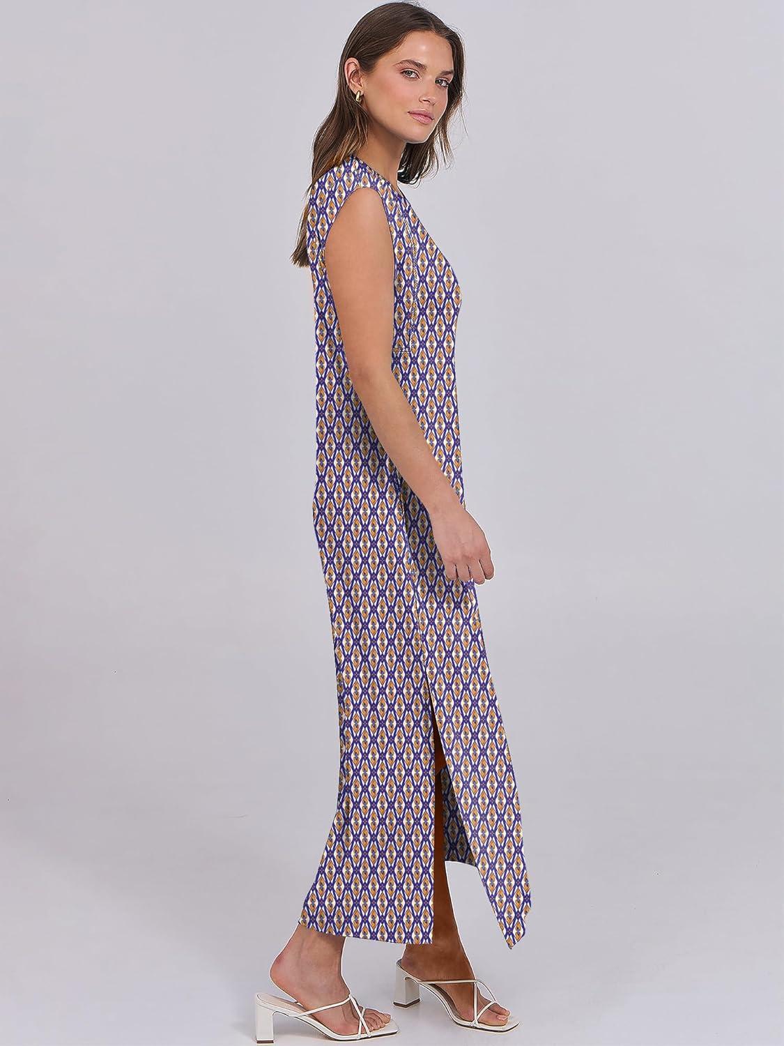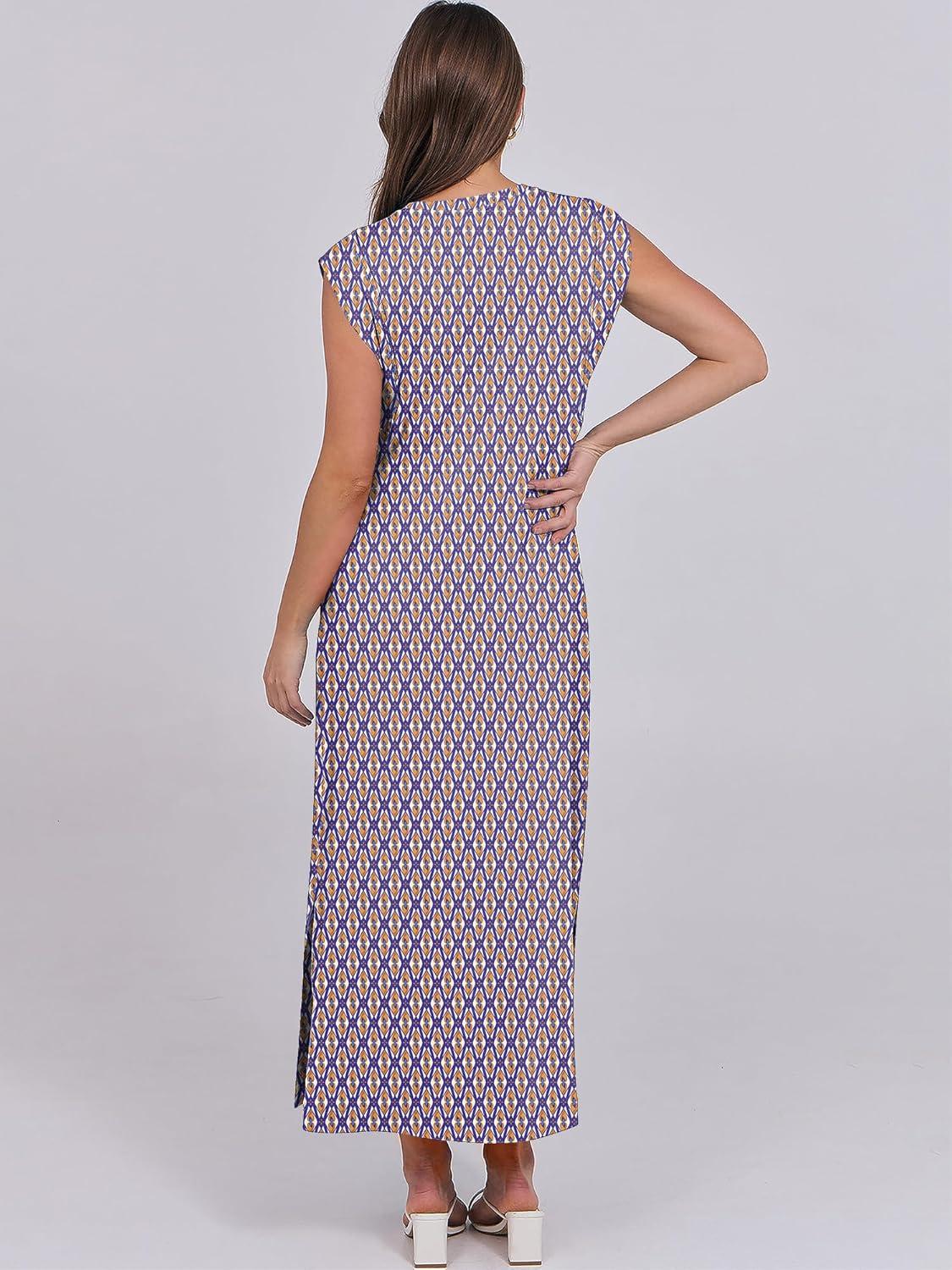 ANRABESS Summer Dress for Women 2025 Maxi Sundresses Casual Cap Sleeve Crew Neck Loose Split Beach Travel Vacation Outfits(Orange Rhombus)