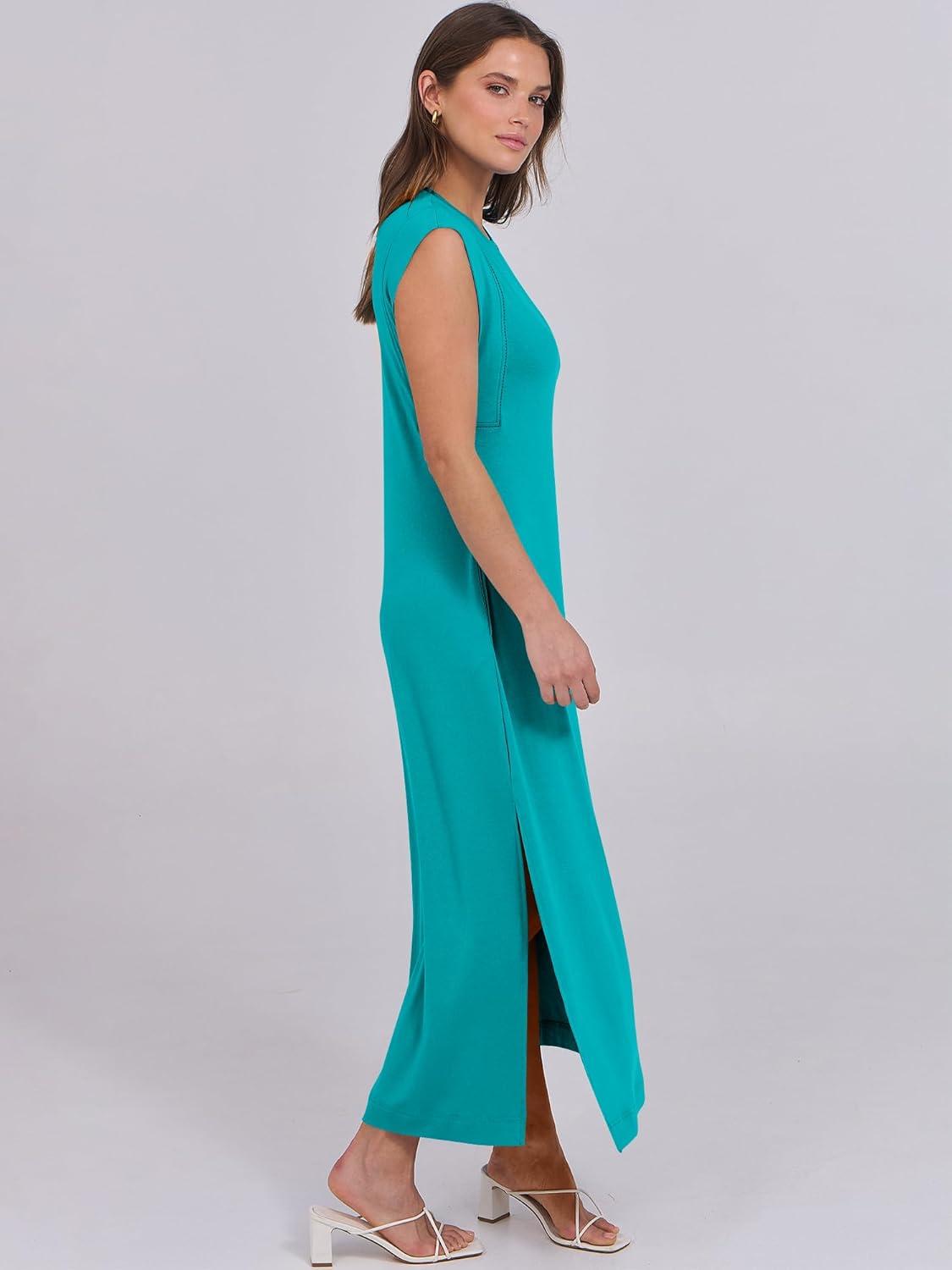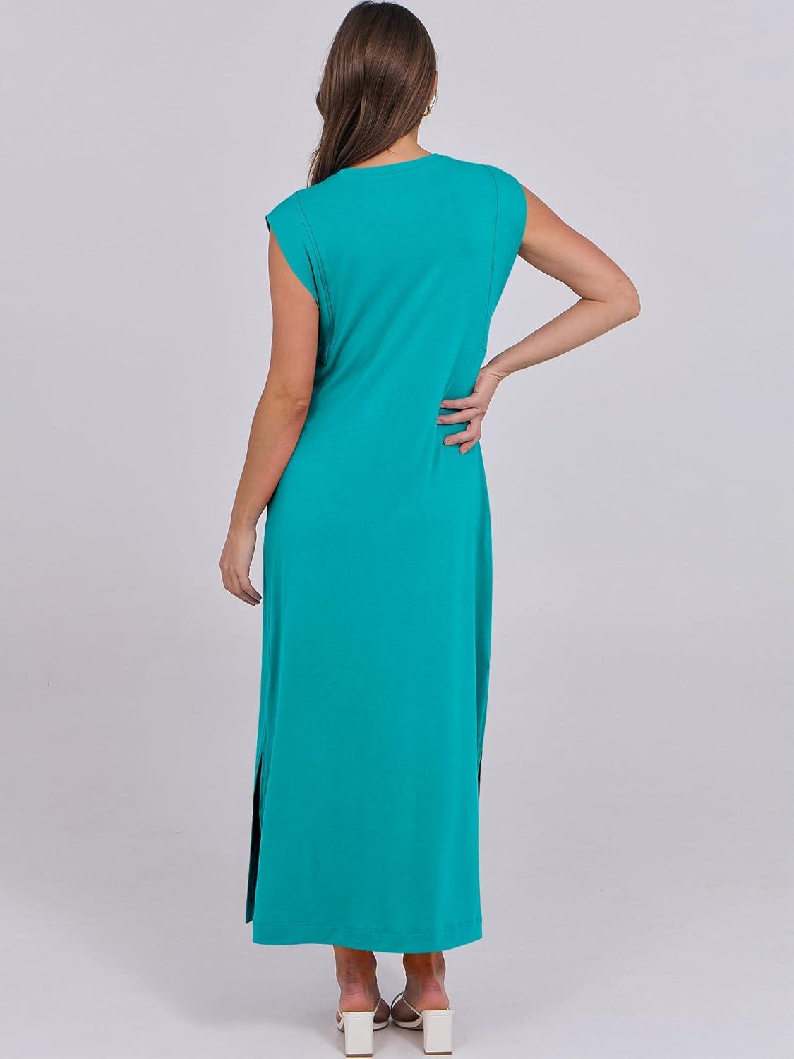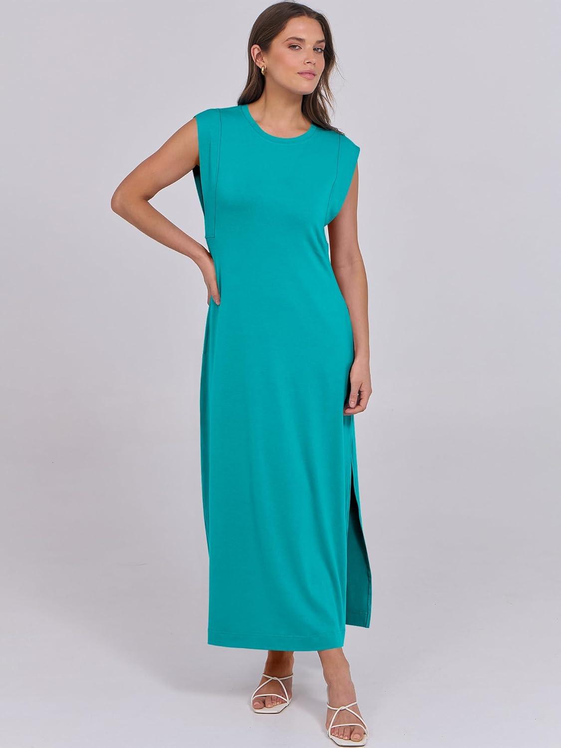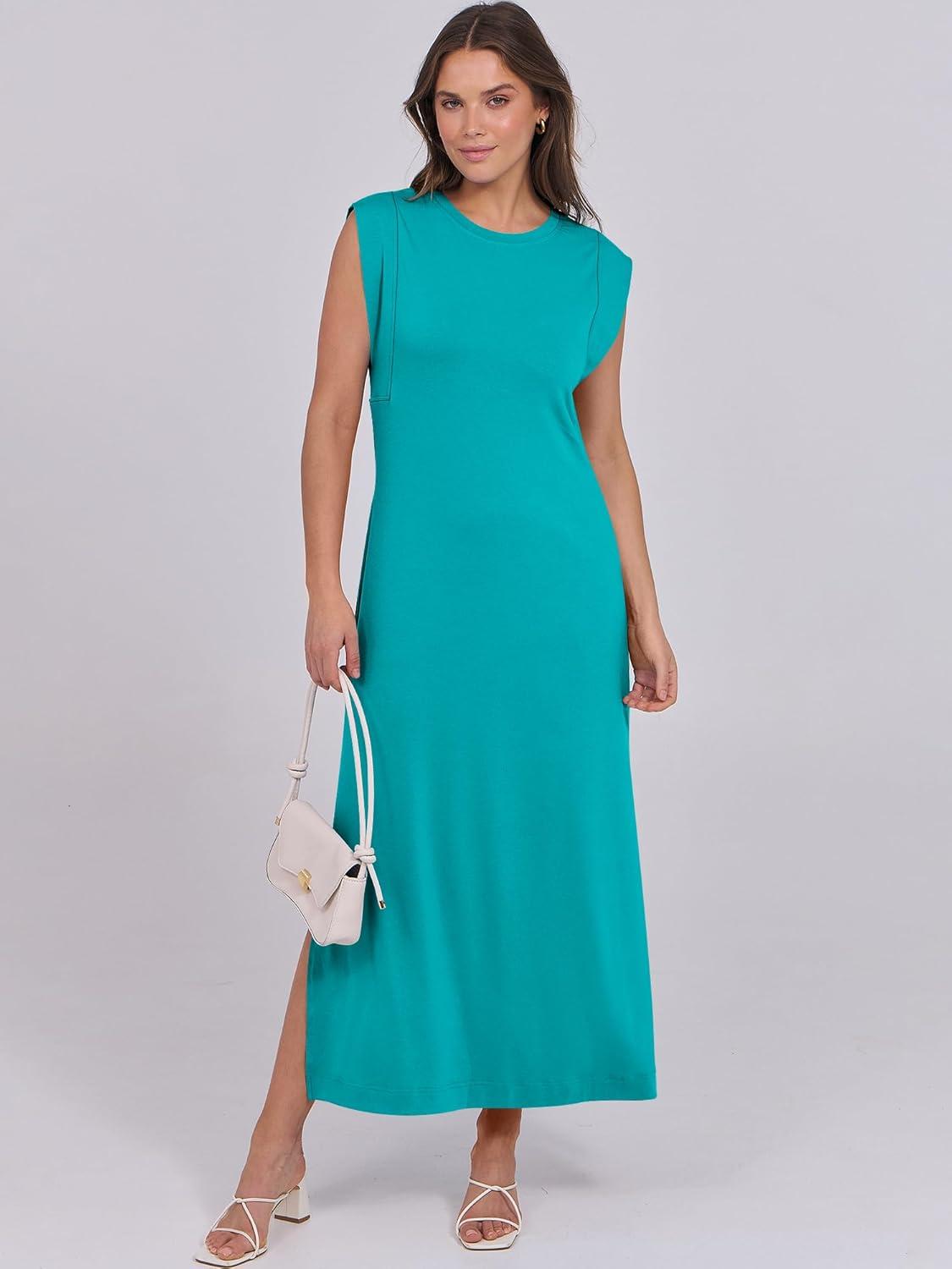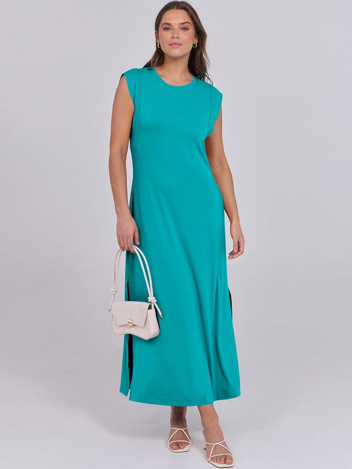 ANRABESS Summer Dress for Women 2026 Maxi Sundresses Casual Cap Sleeve Crew Neck Loose Split Beach Travel Vacation Outfits(Lake Green)