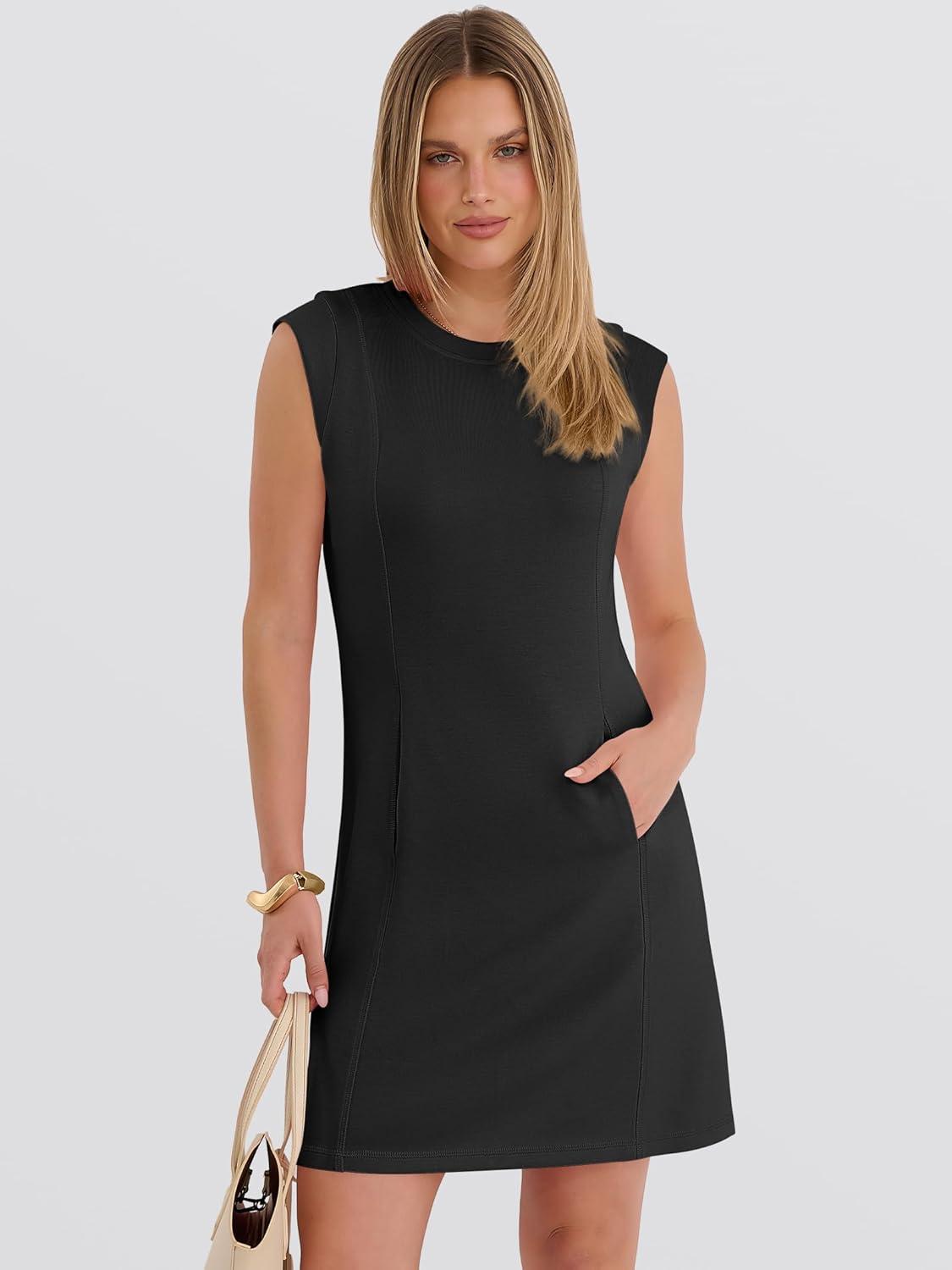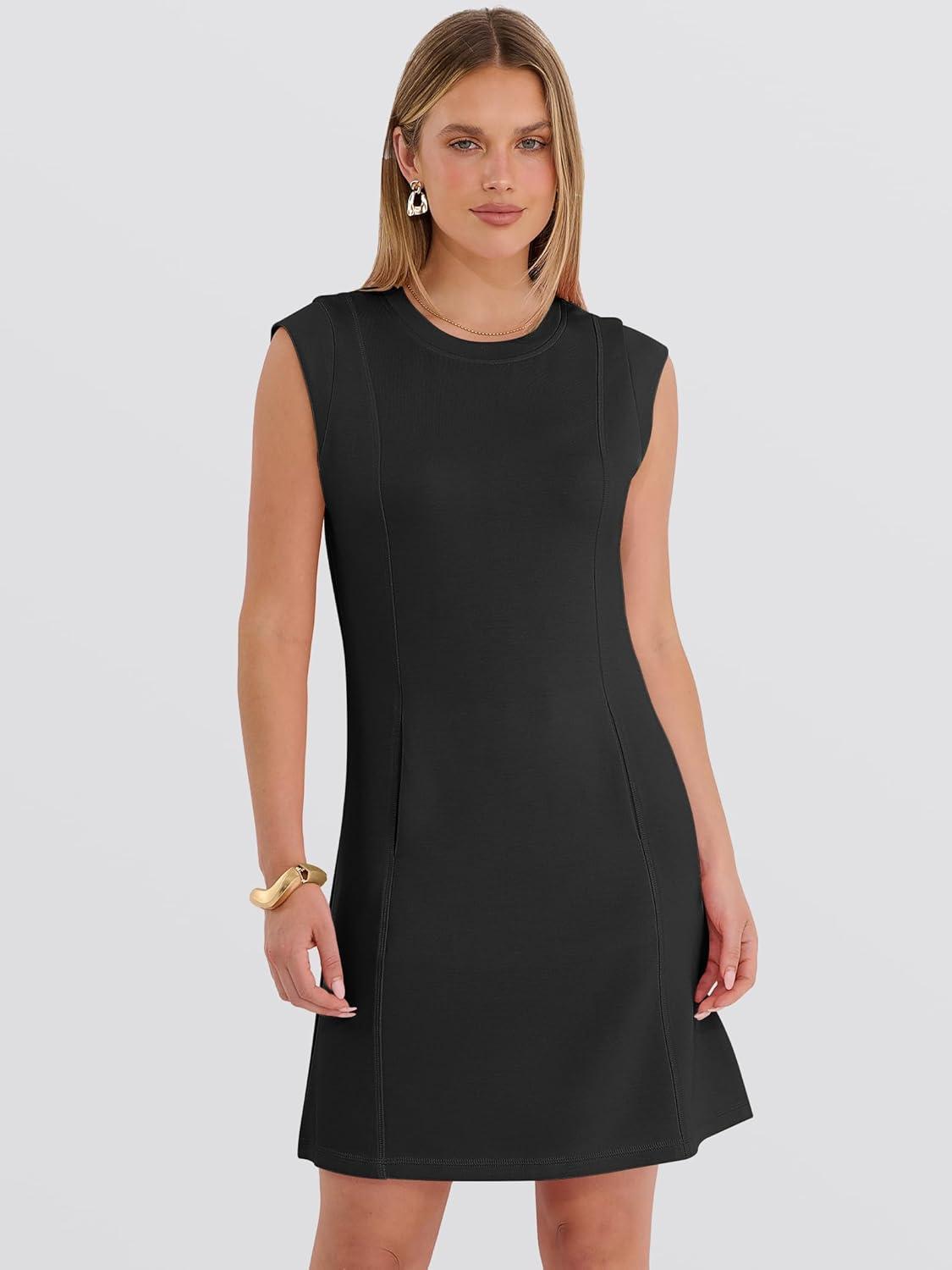 ANRABESS Summer Dresses for Women 2026 Casual A Line Sleeveless Wrinkle-Free Cute Beach Travel Vacation Short Mini Sundress(Black)