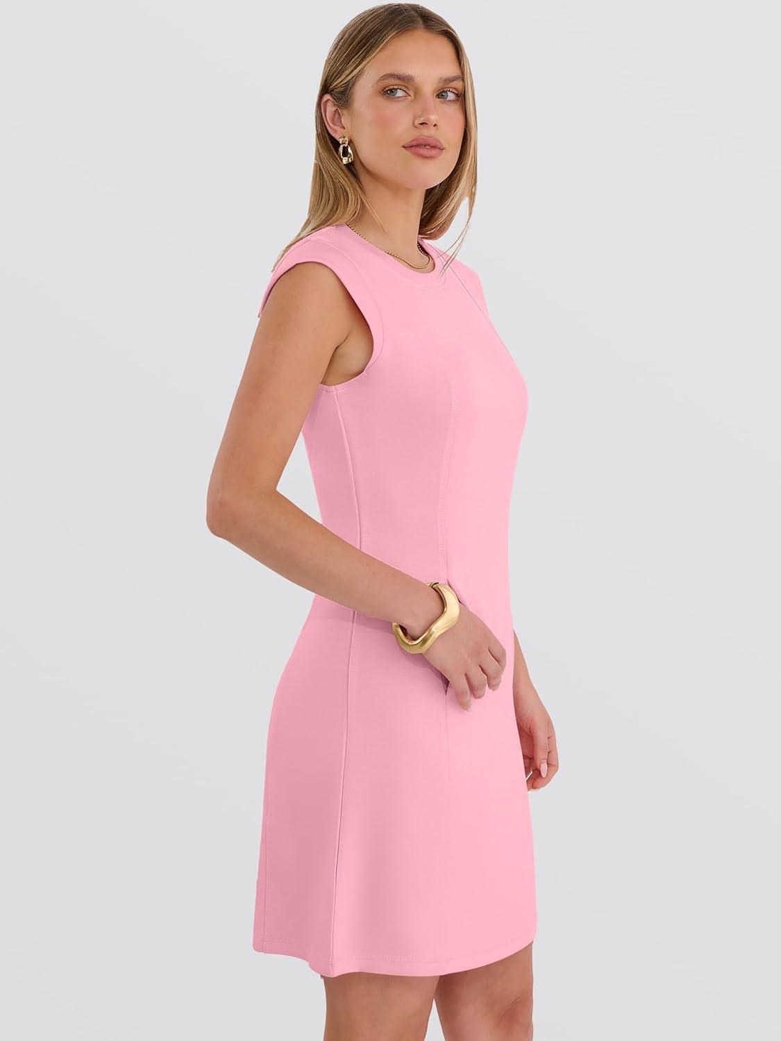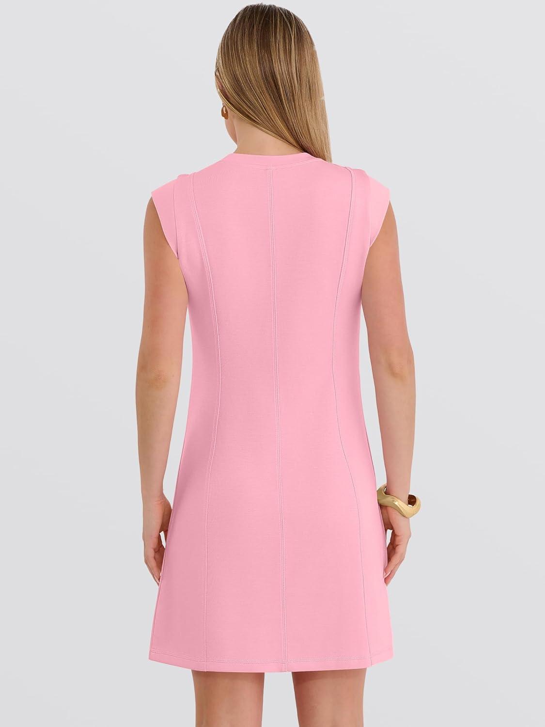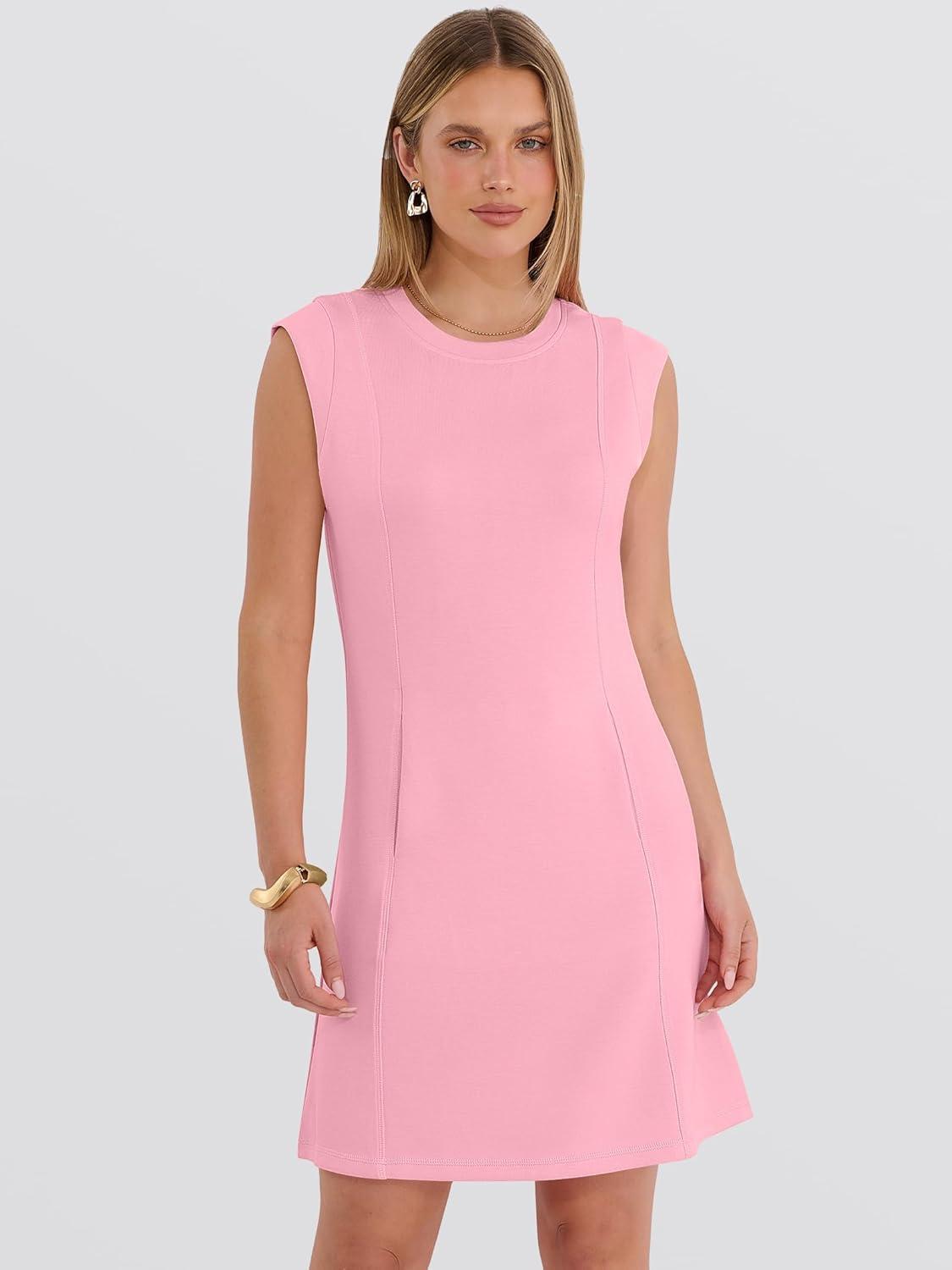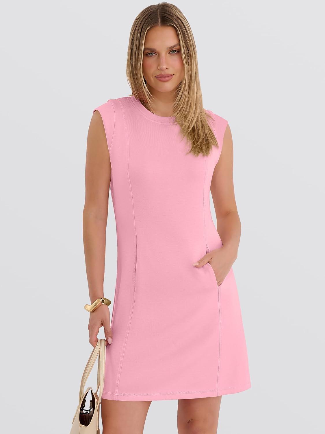 ANRABESS Summer Dresses for Women 2026 Casual A Line Sleeveless Wrinkle-Free Cute Beach Travel Vacation Short Mini Sundress(Pink)