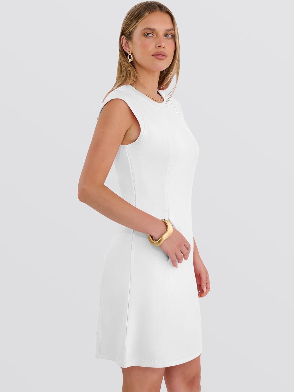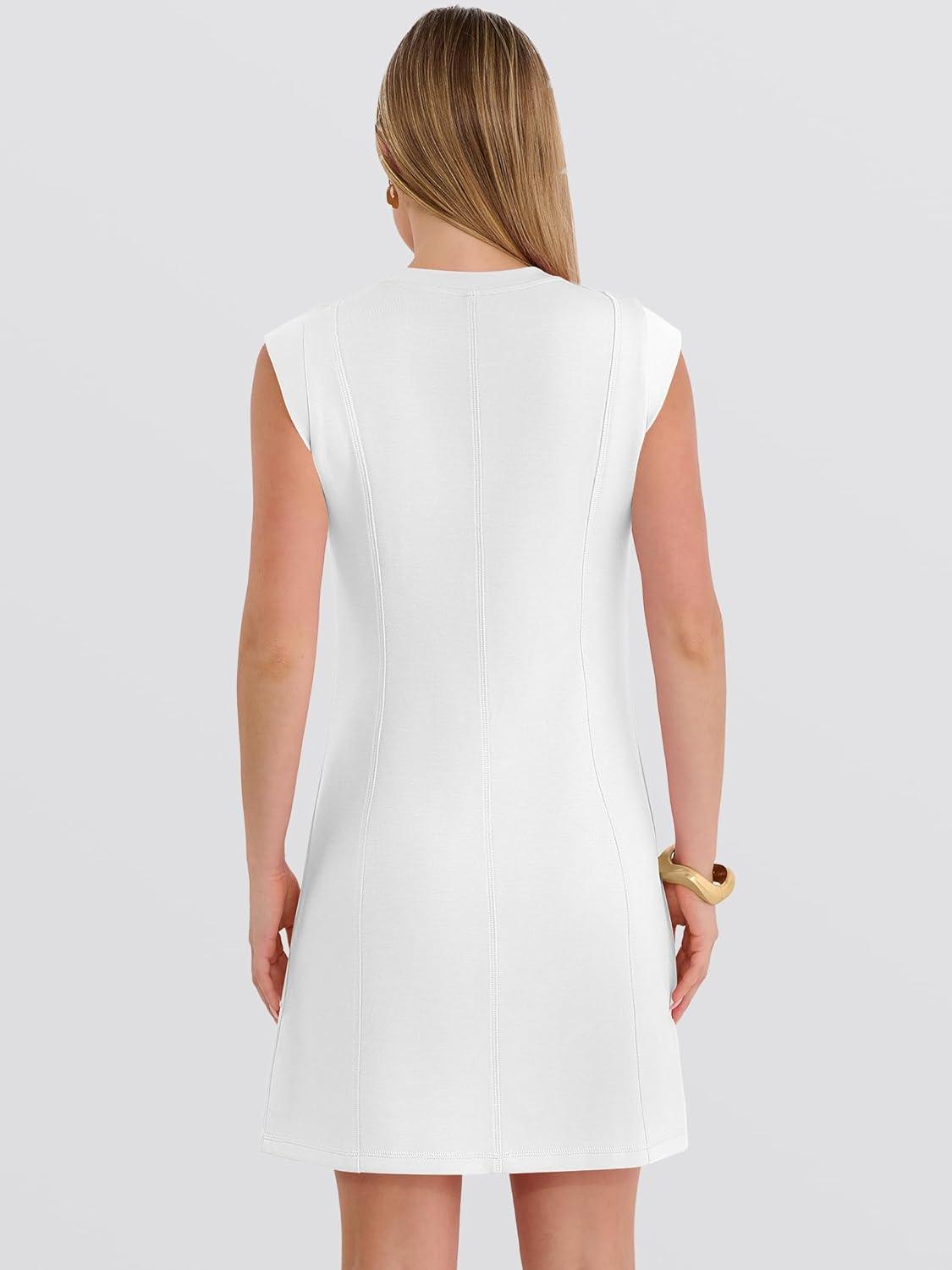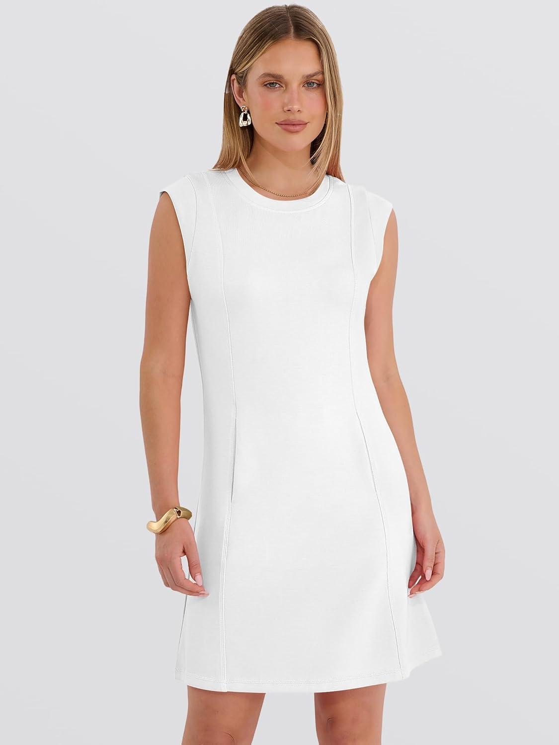 ANRABESS Summer Dresses for Women 2026 Casual A Line Sleeveless Wrinkle-Free Cute Beach Travel Vacation Short Mini Sundress(White)