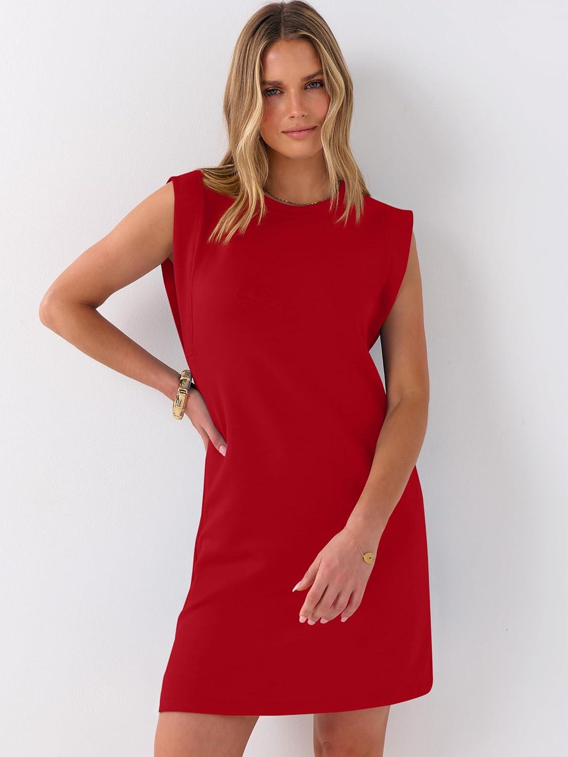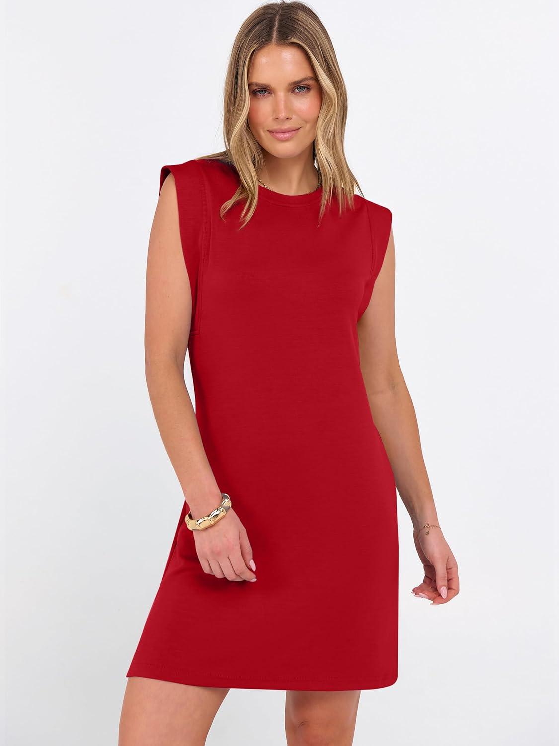imageANRABESS Summer Dresses for Women 2026 Casual Crewneck Sleeveless Split WrinkleFree Mini Dress Beach Vacation Short SundressRed
