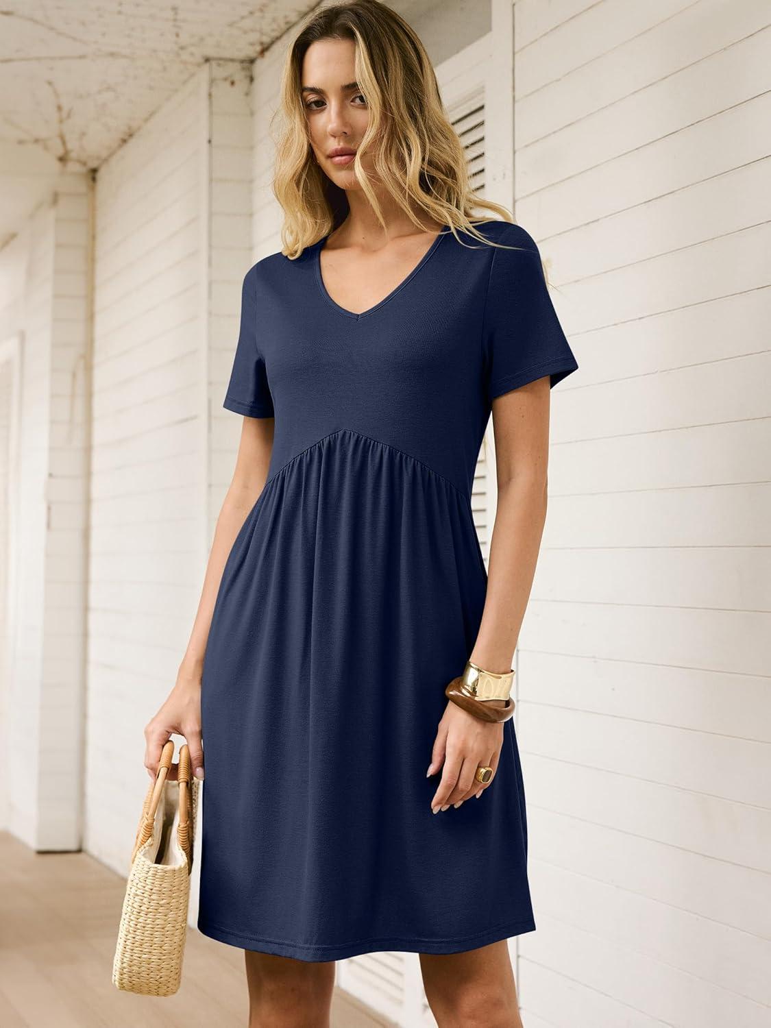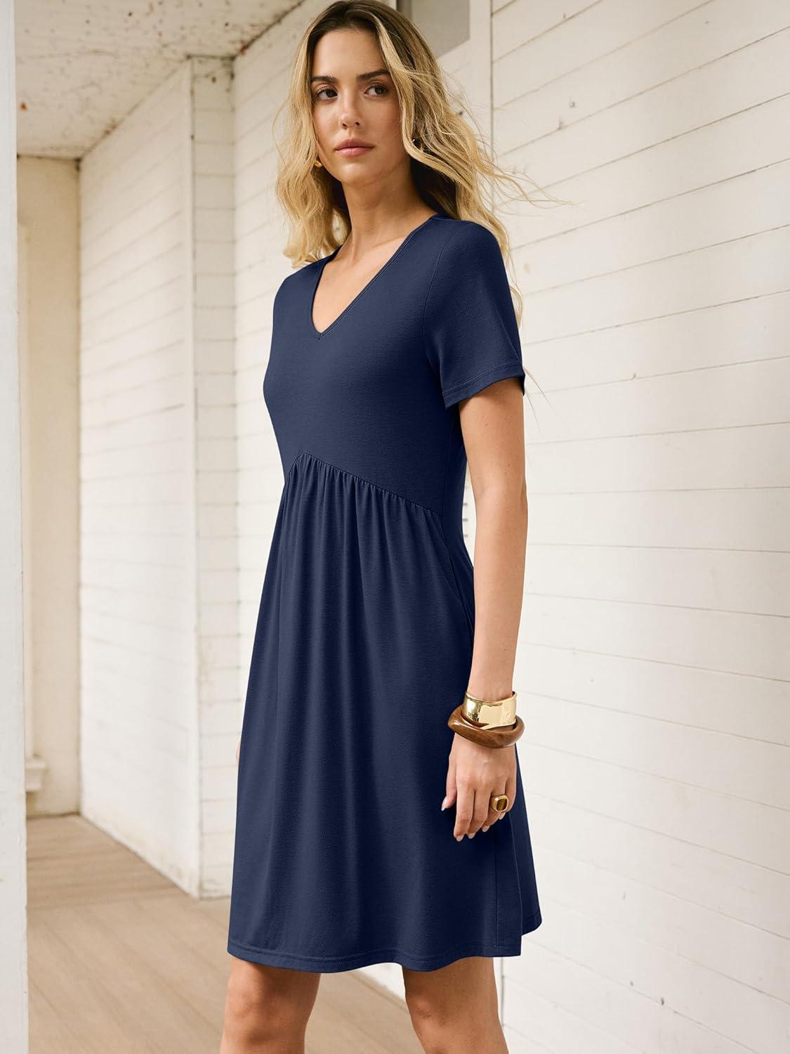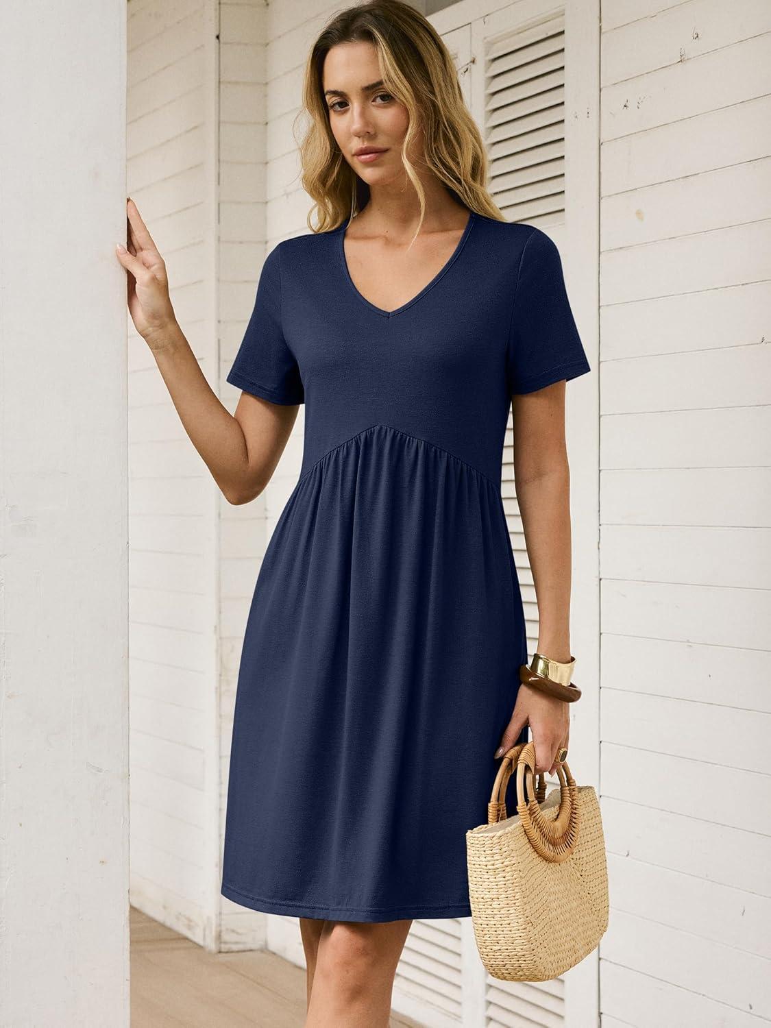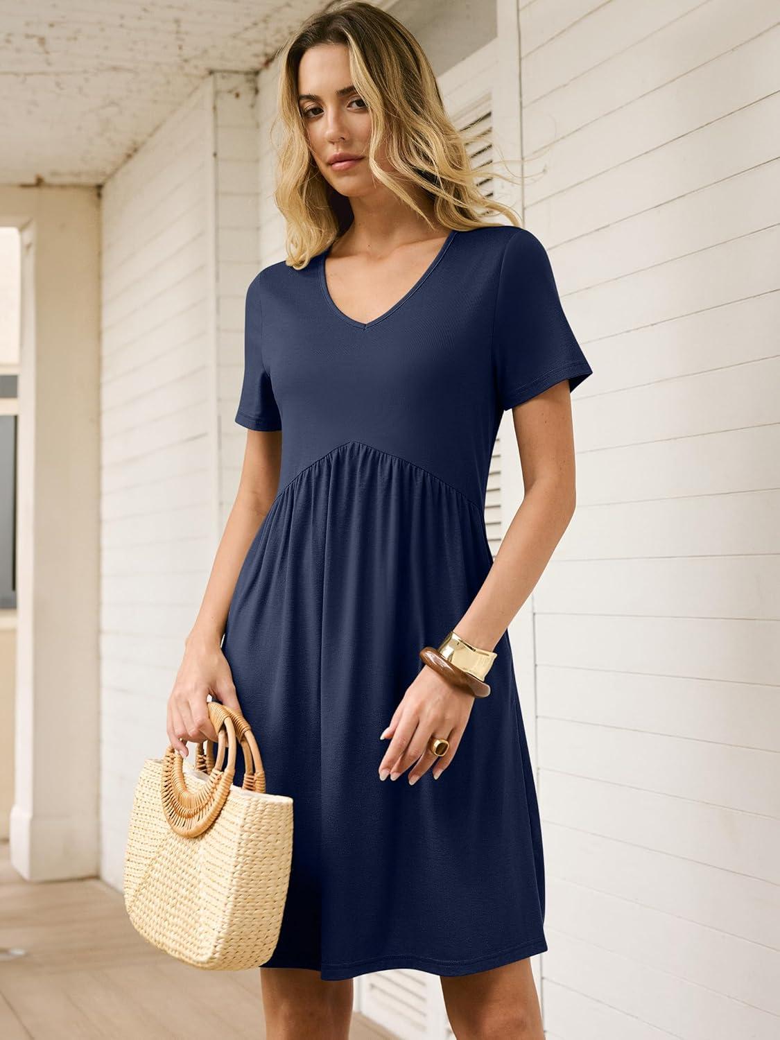 ANRABESS Summer Dresses for Women 2026 Casual Short Sleeve V Neck Spring Dress Beach Vacation Clothes Cruise Resort Outfits(Navy Blue)