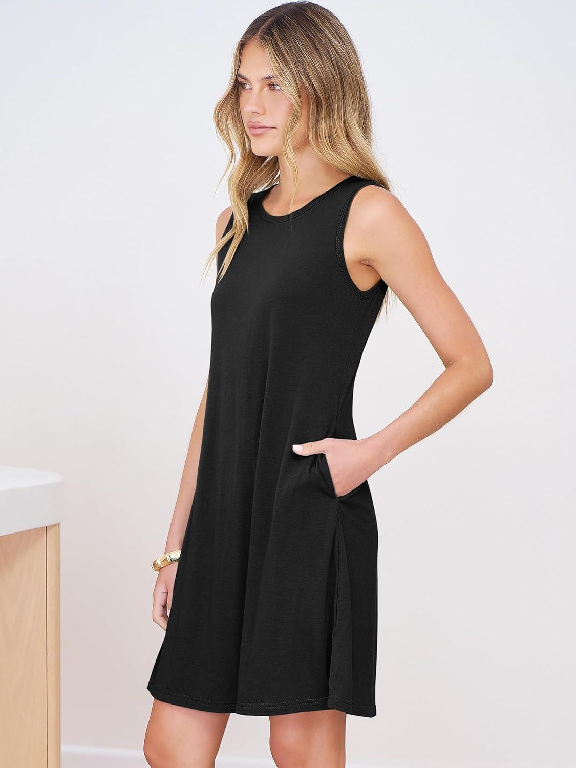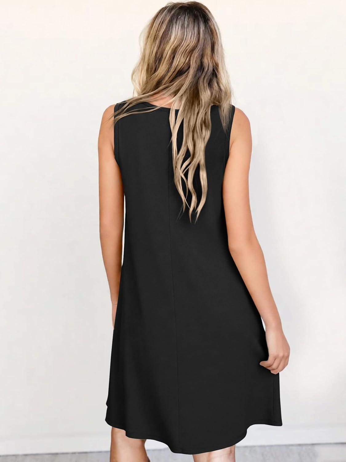 ANRABESS Summer Dresses for Women Beach Floral Tshirt Sundress Loose Casual Boho Tank Dress with Pocket Vacation Outfits(Black)