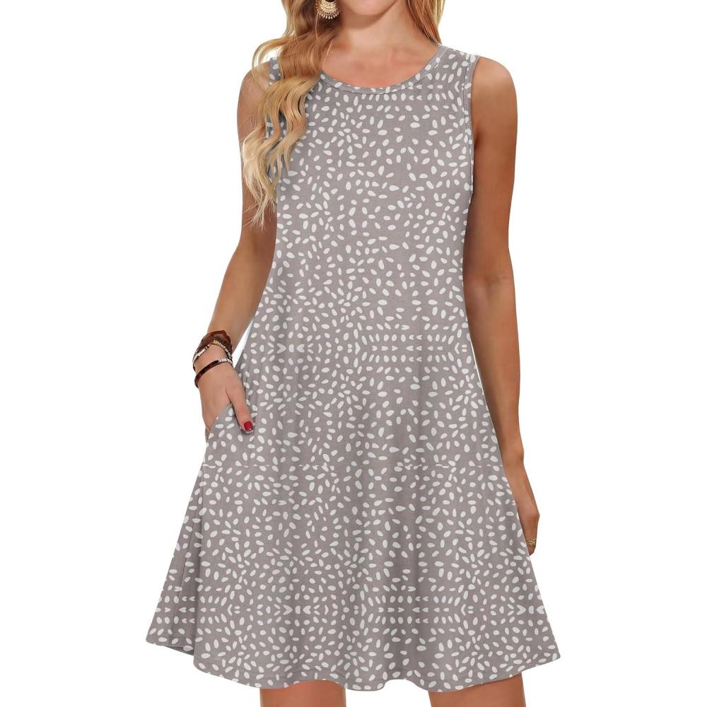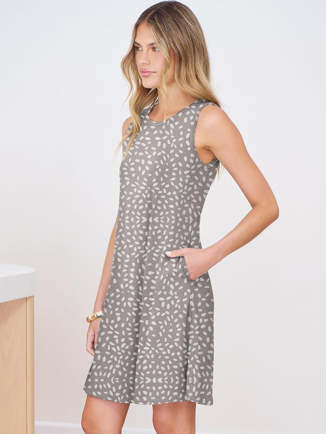 ANRABESS Summer Dresses for Women Beach Floral Tshirt Sundress Loose Casual Boho Tank Dress with Pocket Vacation Outfits(Polka Dot)