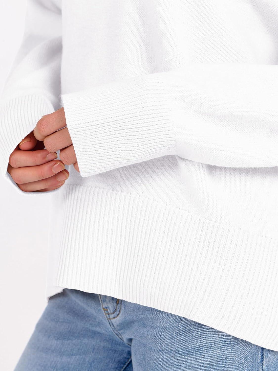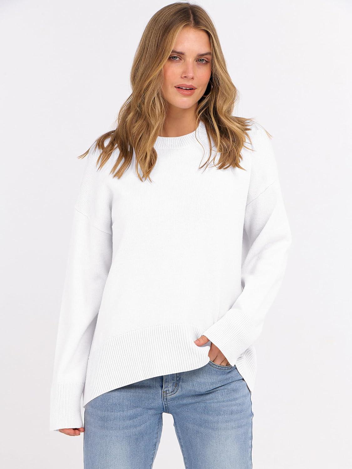 ANRABESS Sweaters for Women 2025 Fall Long Sleeve Casual Loose Fit Knitted High Low Hem Basic Pullover Sweater Tops(White)
