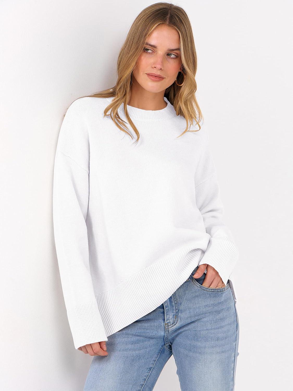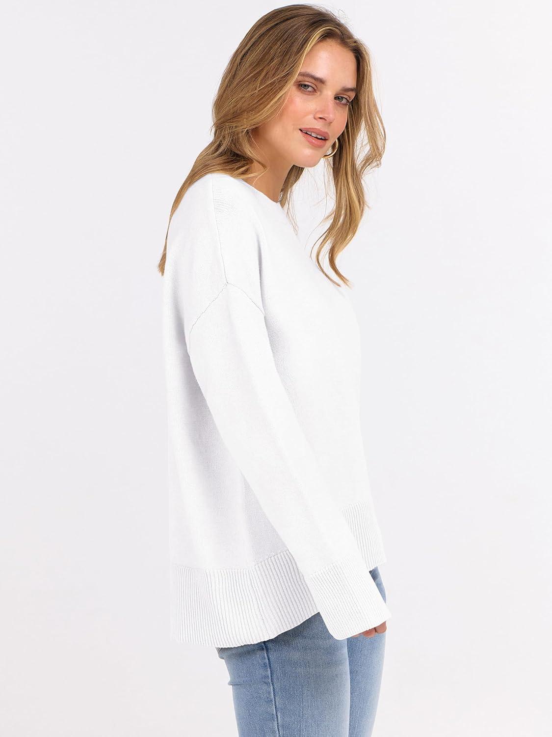 imageANRABESS Sweaters for Women 2025 Fall Long Sleeve Casual Loose Fit Knitted High Low Hem Basic Pullover Sweater TopsWhite