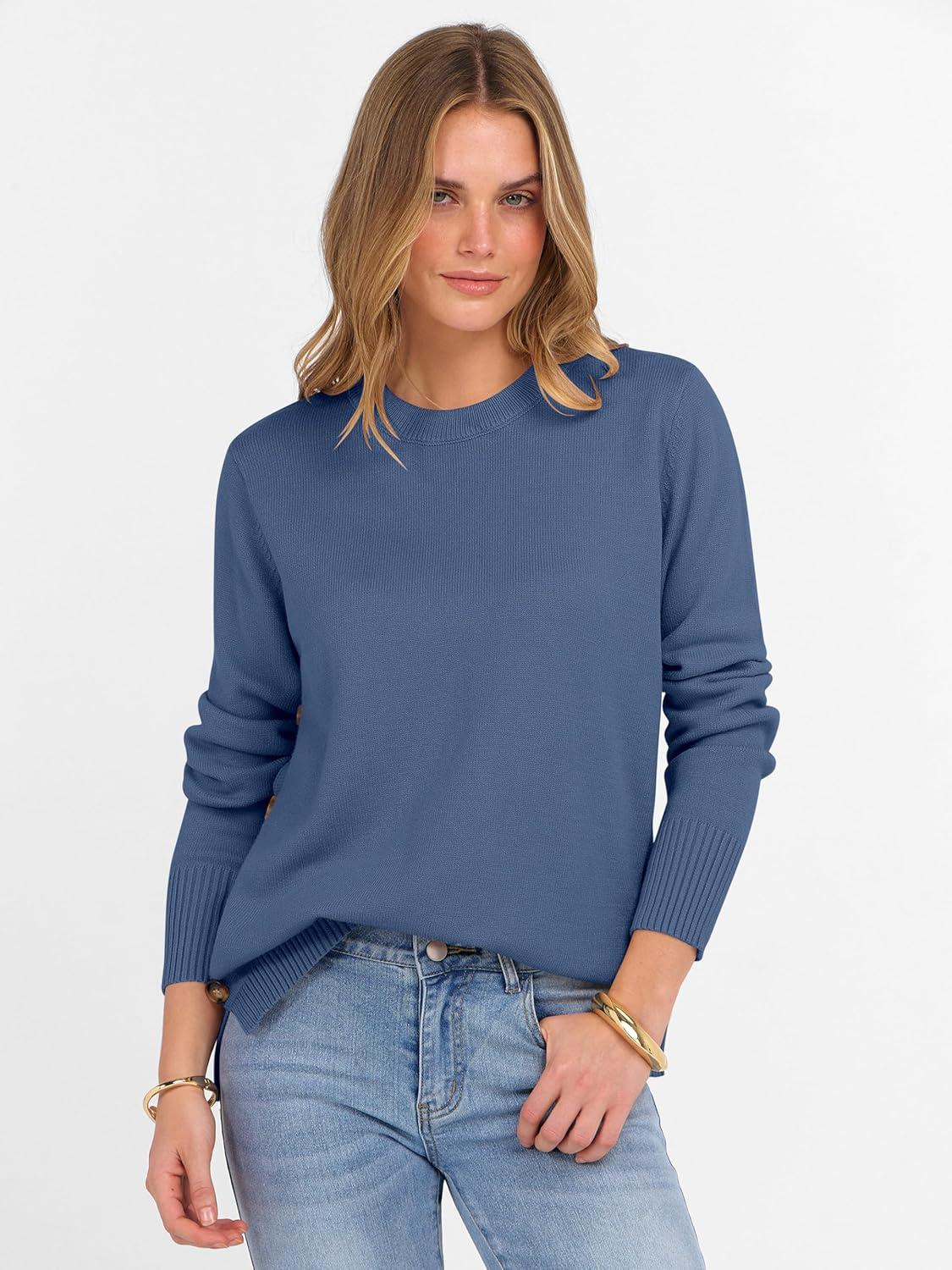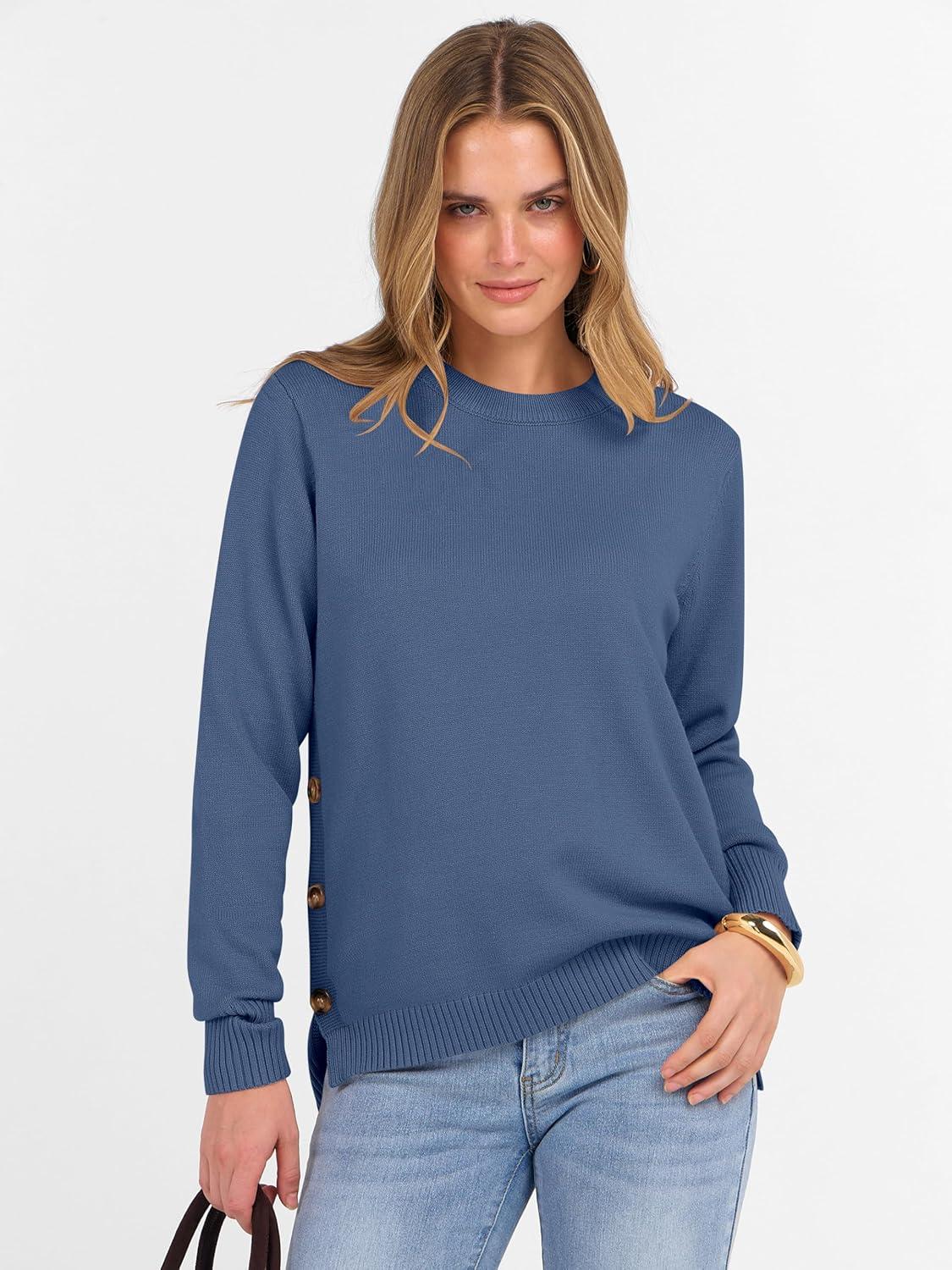 imageANRABESS Sweaters for Women 2025 Fall Long Sleeve Crewneck Knit Casual Loose Side Button Basic Pullover Tops Trendy OutfitsBlue