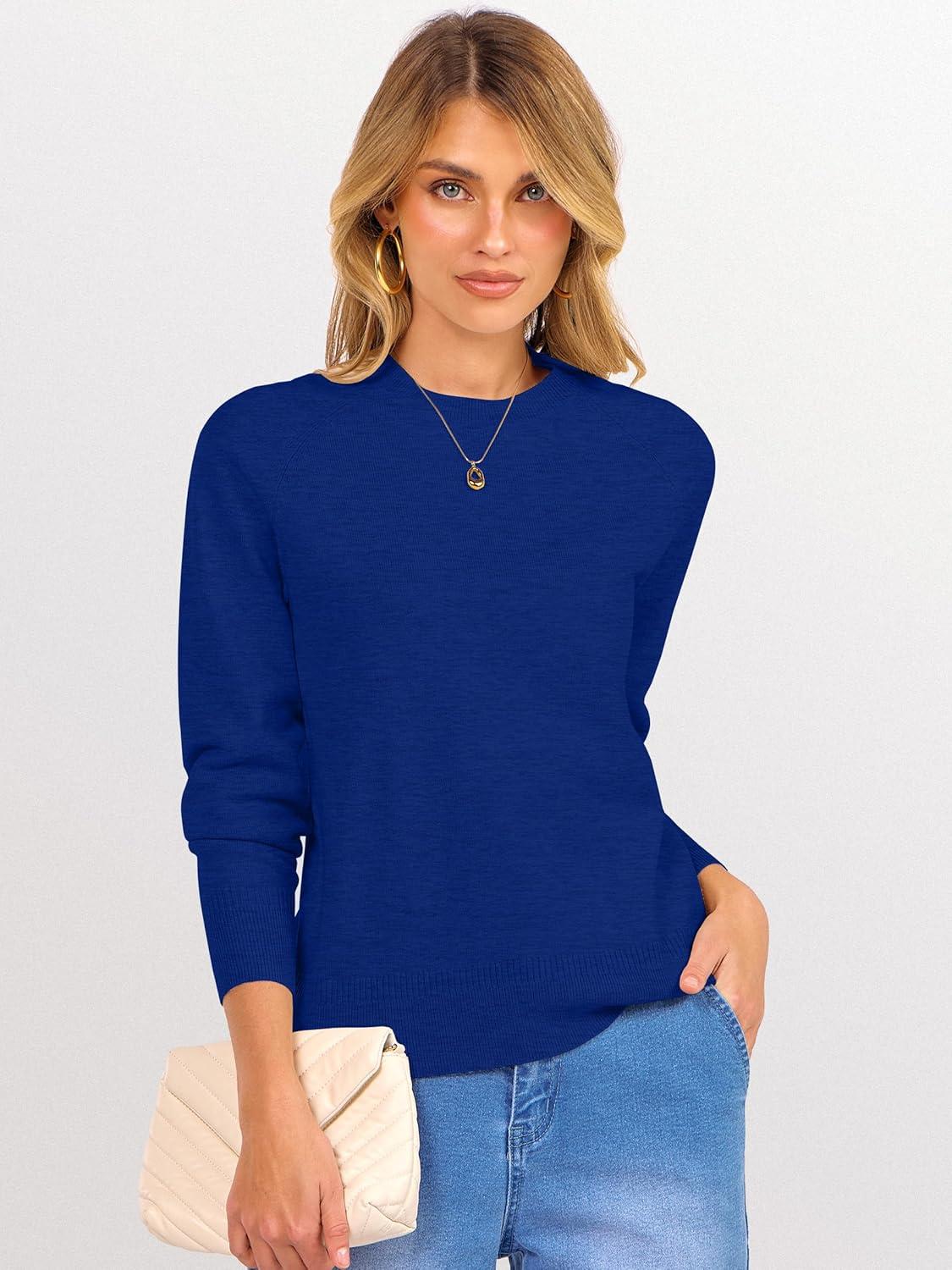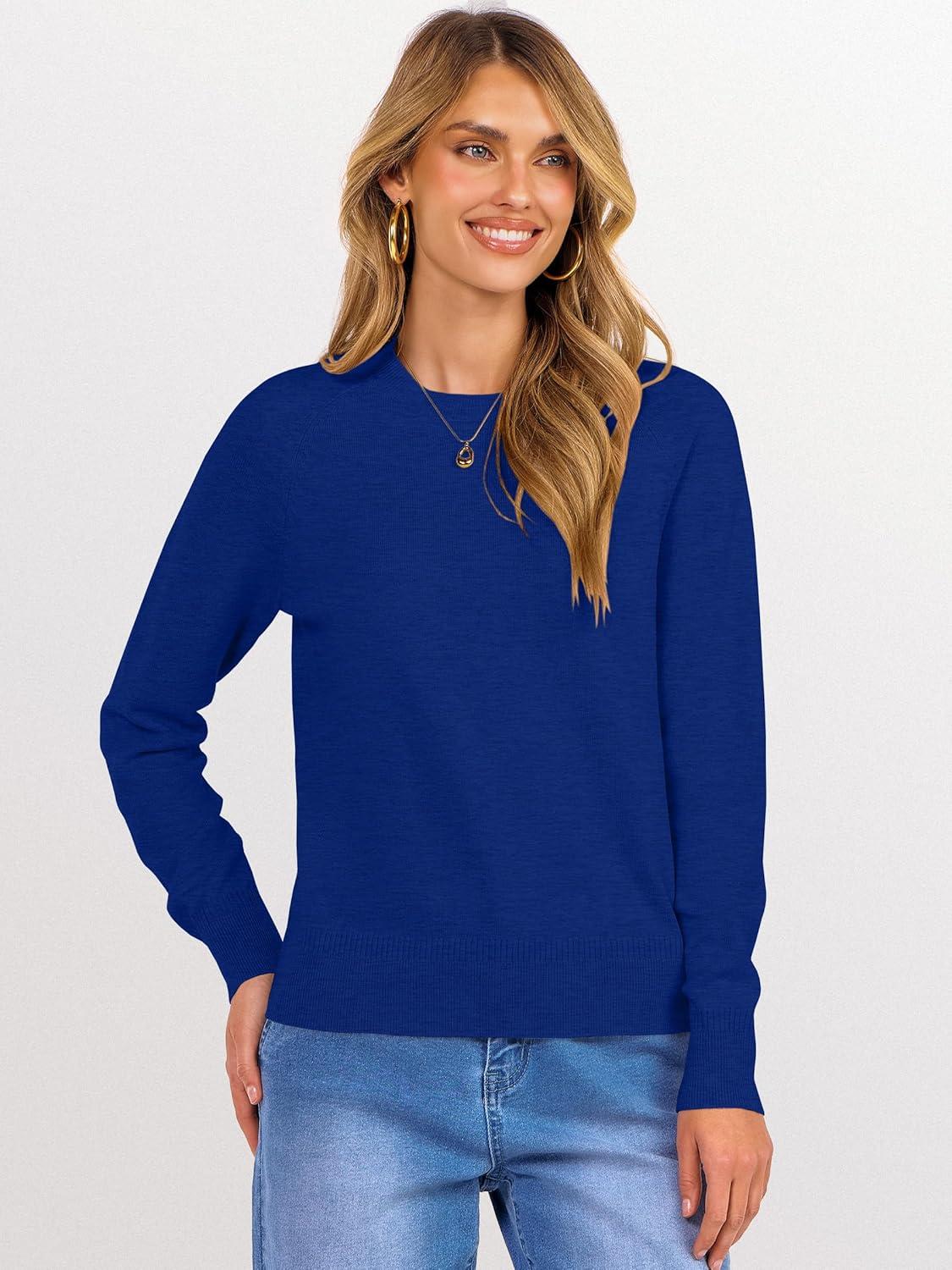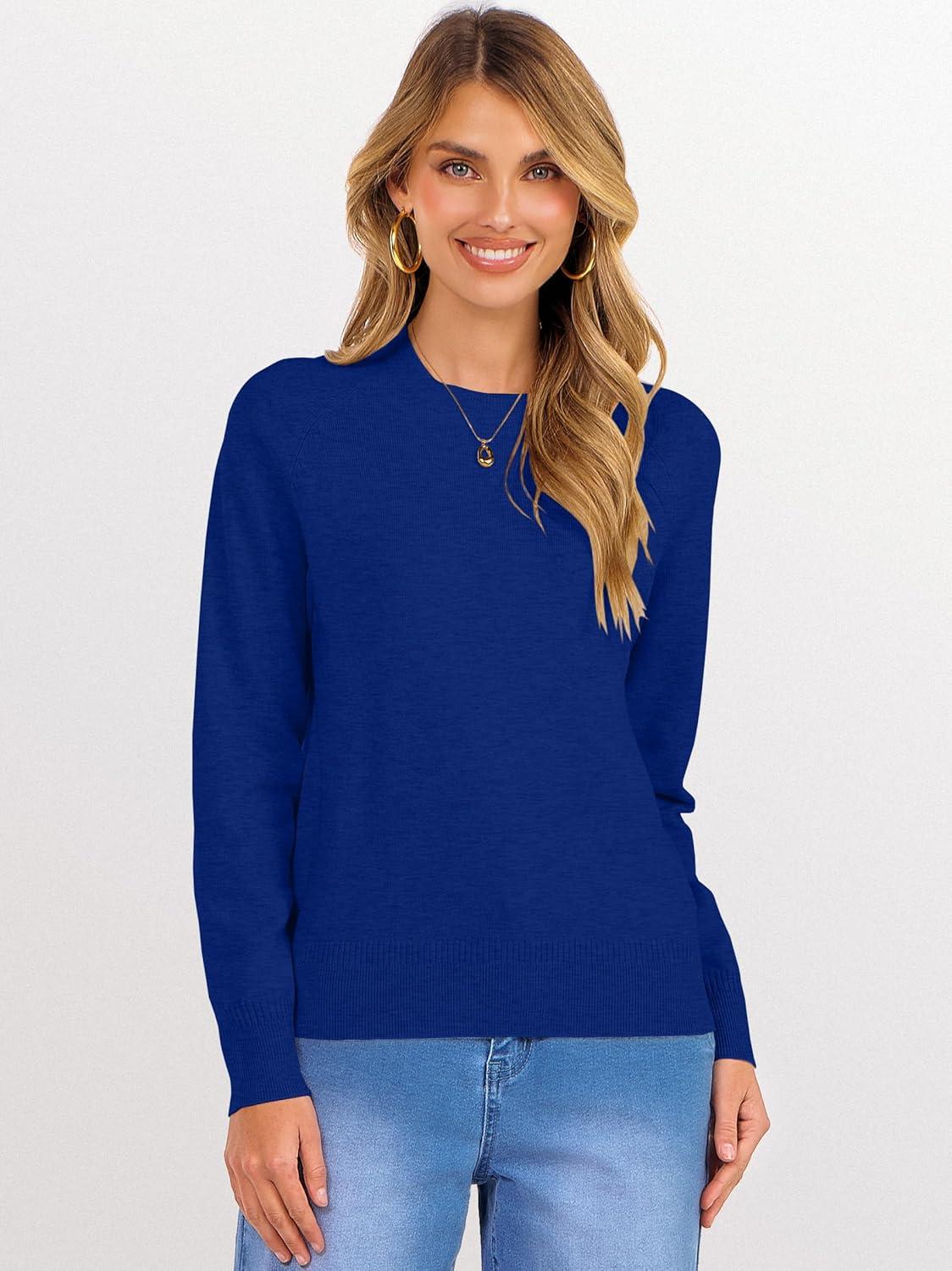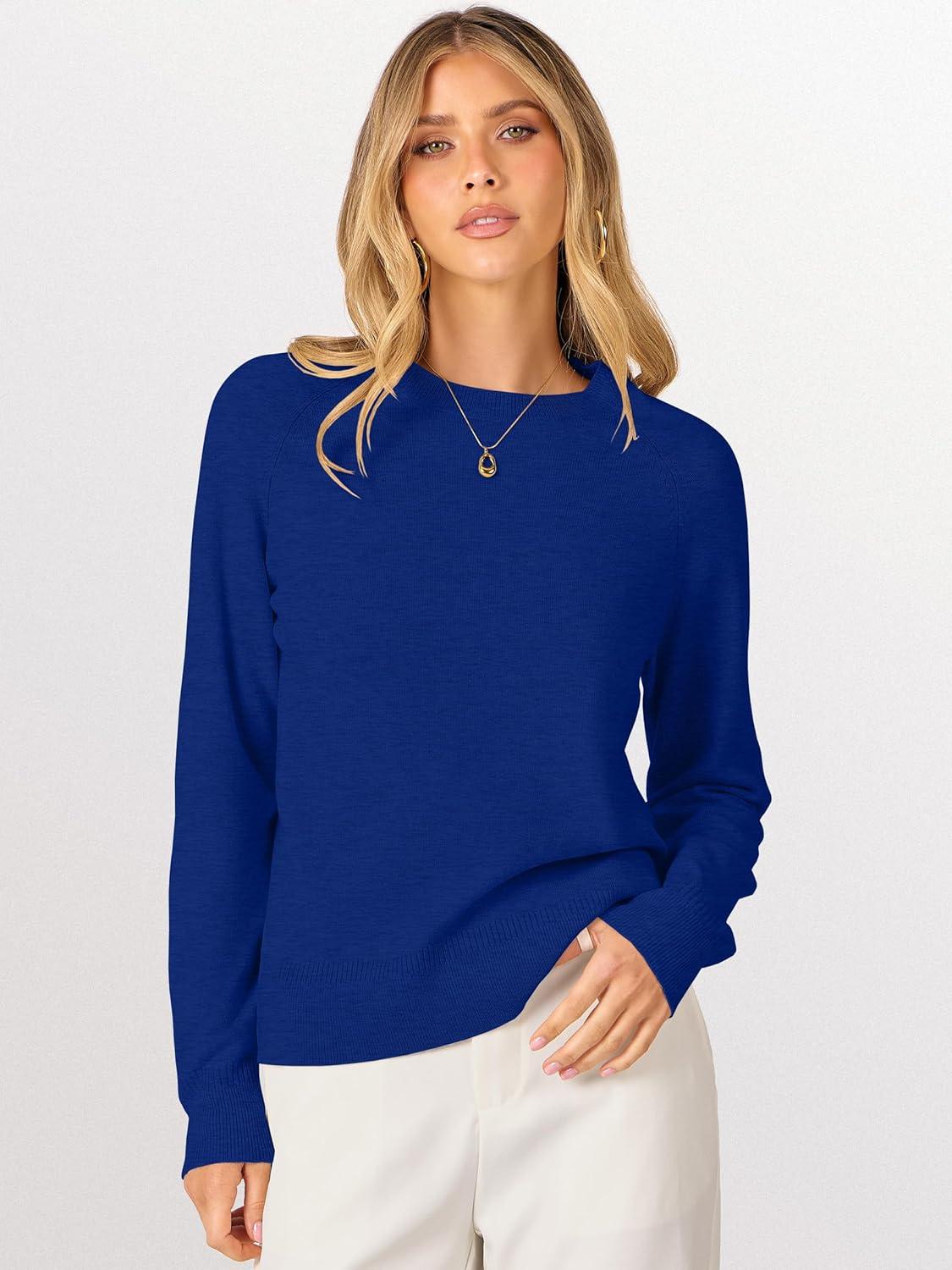 ANRABESS Sweaters for Women 2025 Long Sleeve Crewneck Loose Fit Lightweight Knit Basic Fall Sweater Outfits(Royal Blue)