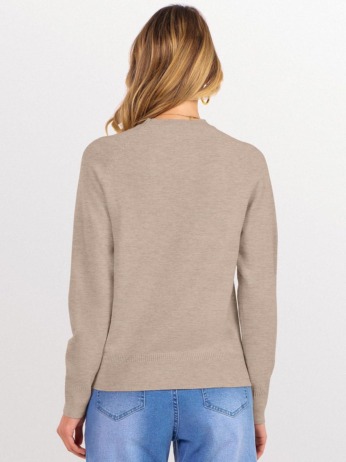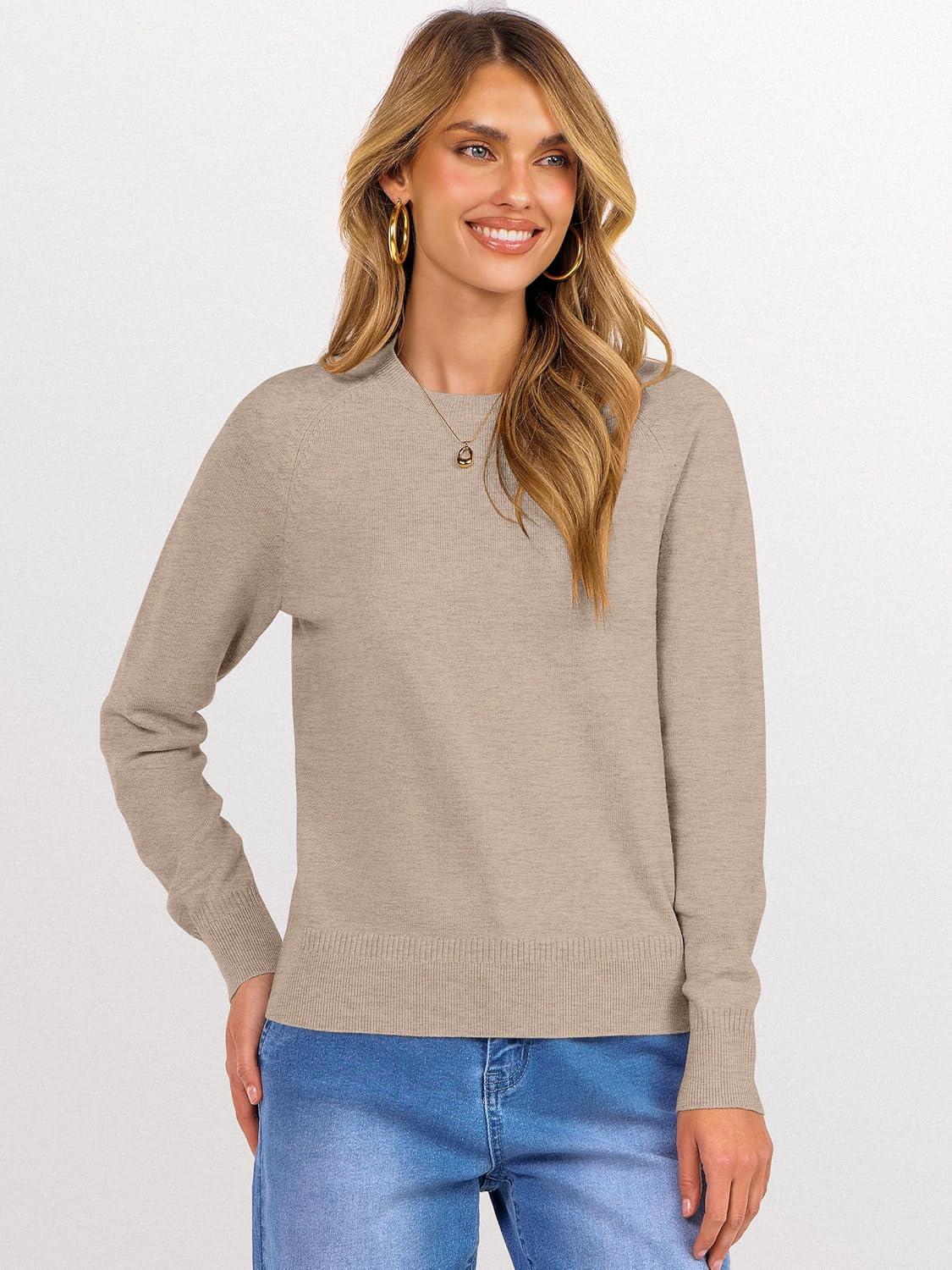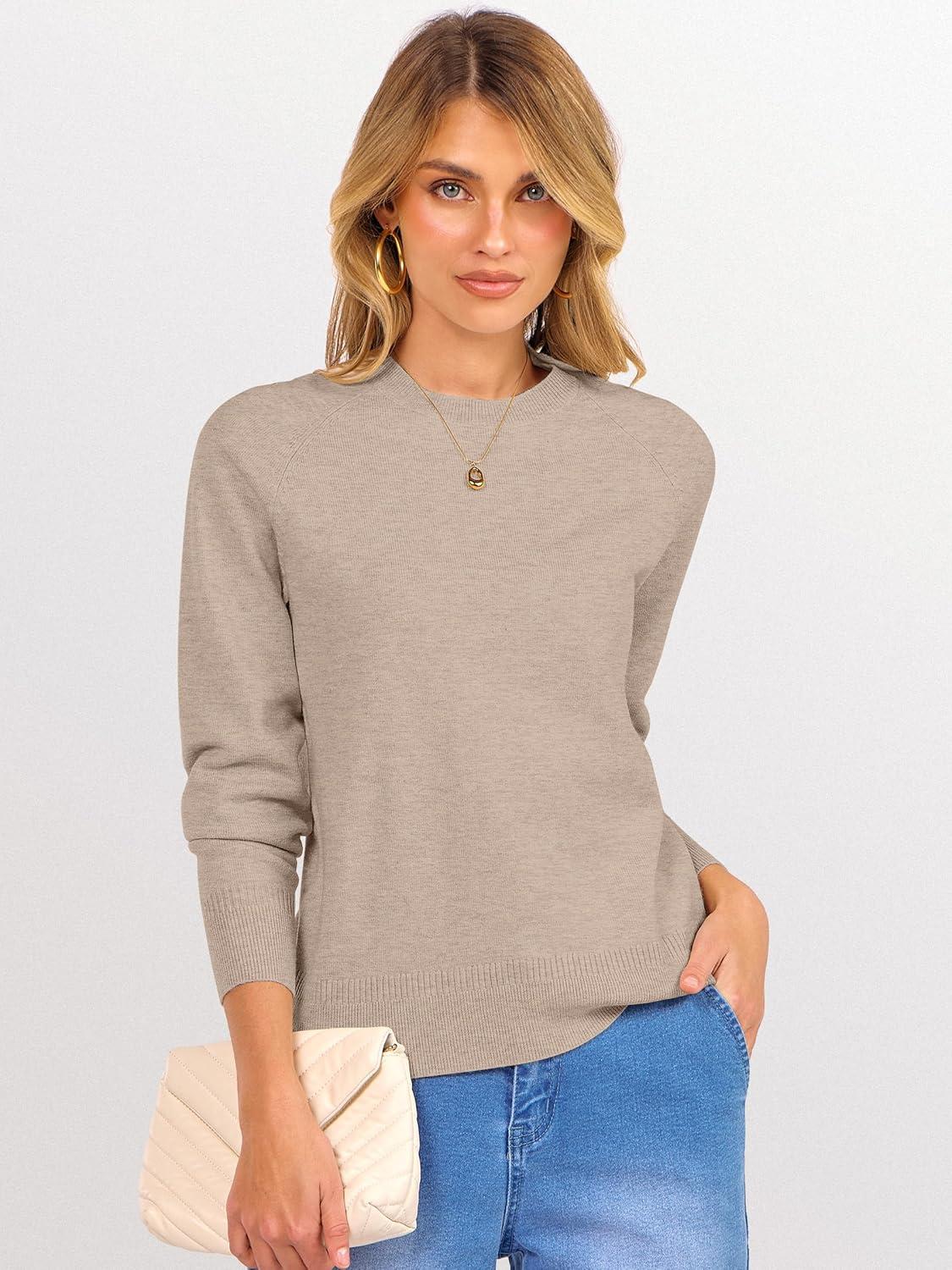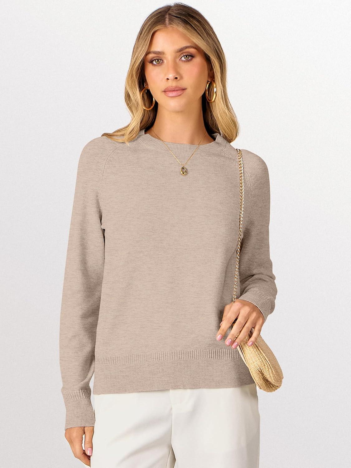 ANRABESS Sweaters for Women 2025 Long Sleeve Crewneck Loose Fit Lightweight Knit Basic Fall Sweater Outfits(Tan)