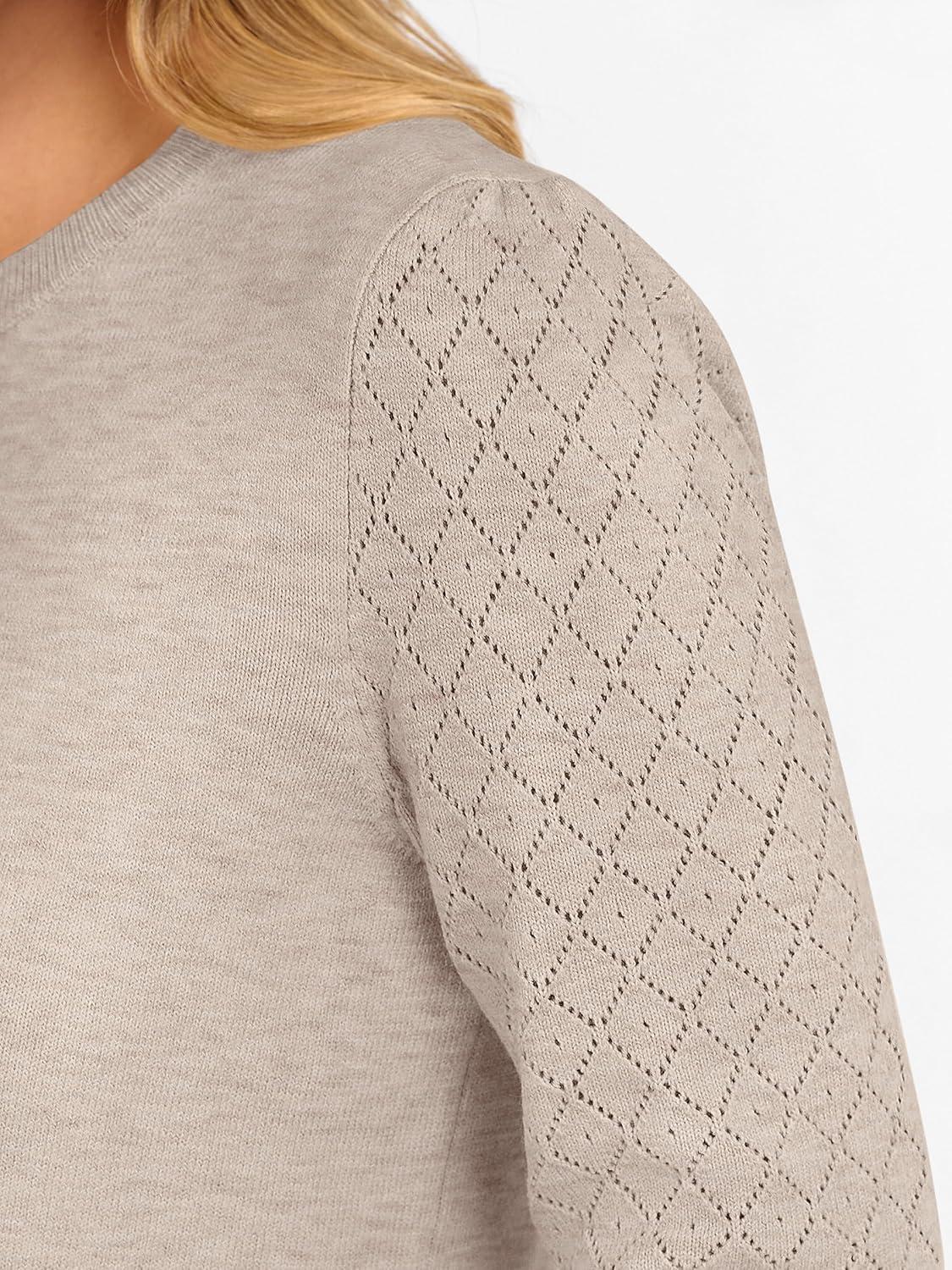 ANRABESS Sweaters for Women Lace Long Sleeve Tops 2025 Fall Dressy Casual Business Knitted Pullover Shirts Puff Cuffs Outfits(Almond)