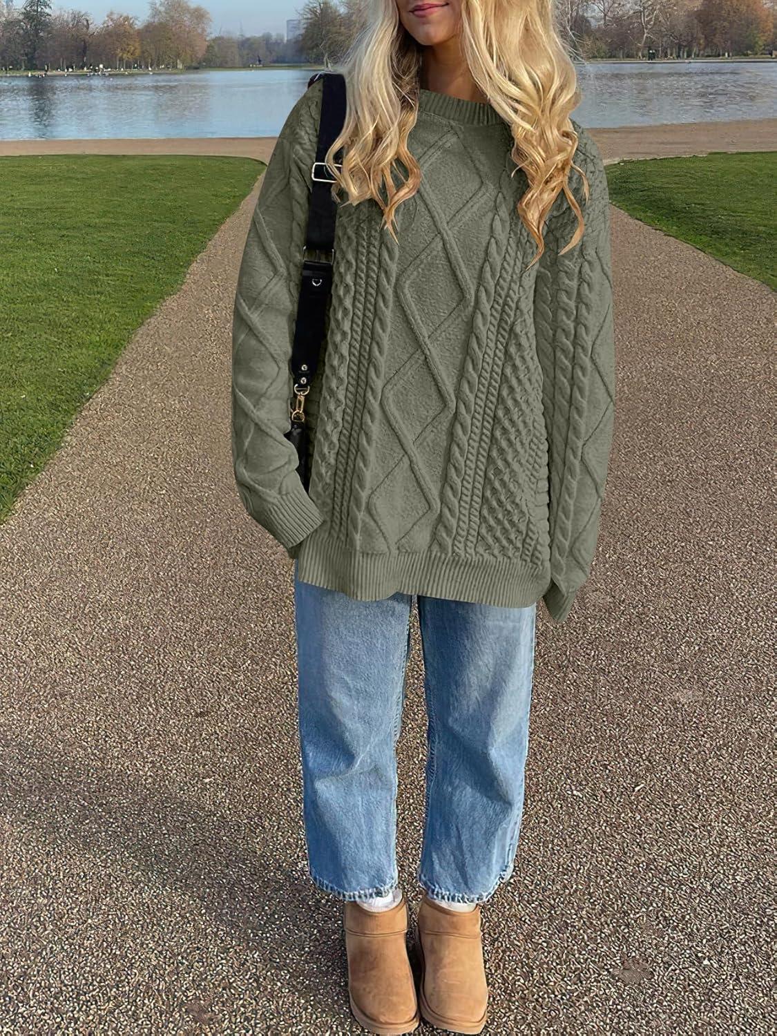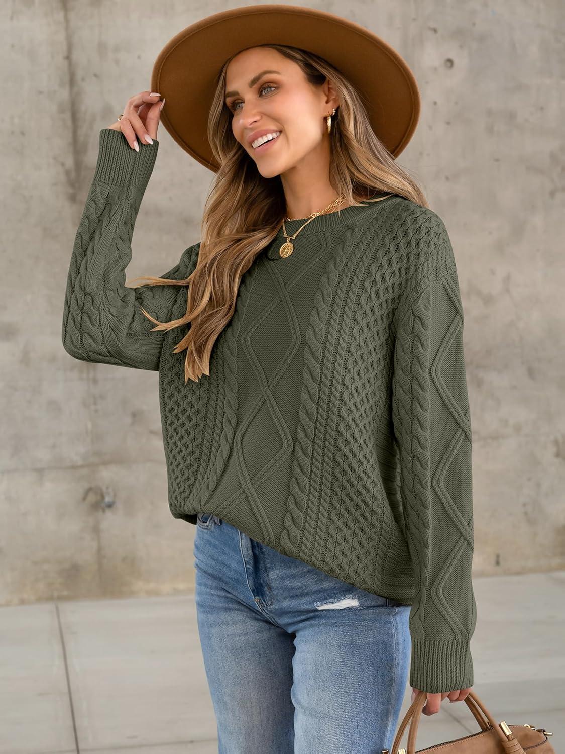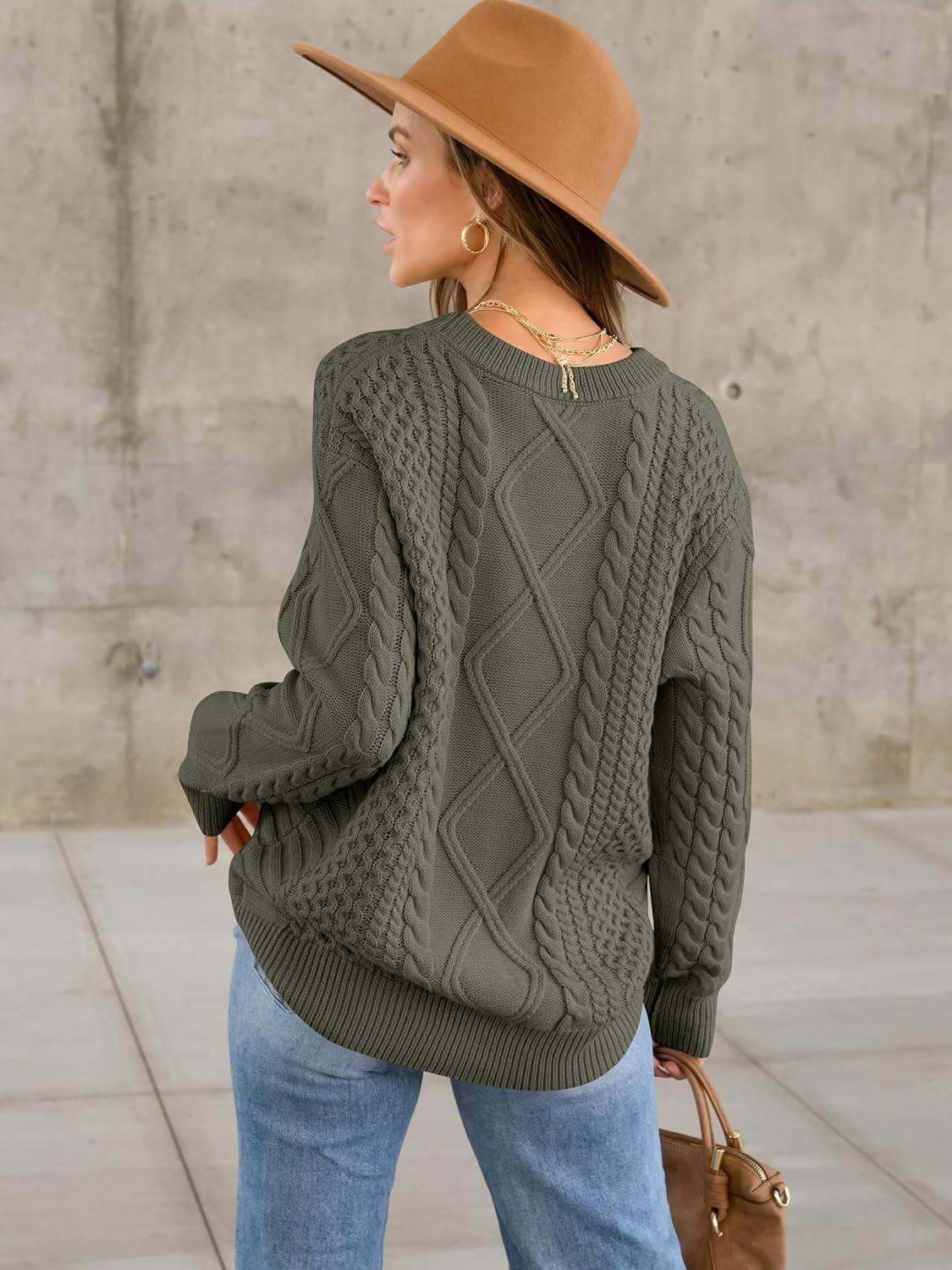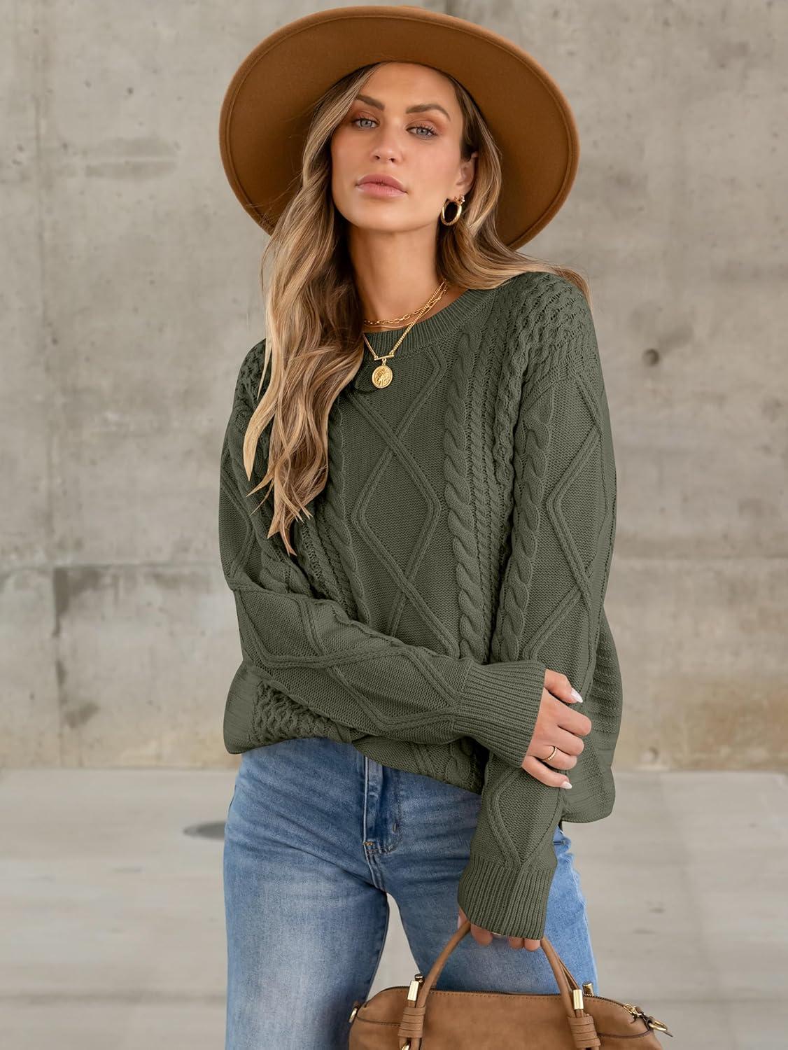 ANRABESS Sweaters for Women Oversized Cable Knit Fall Long Sleeve Crewneck Casual Pullover Sweater Tops 2025 Winter Outfits(Army Green)