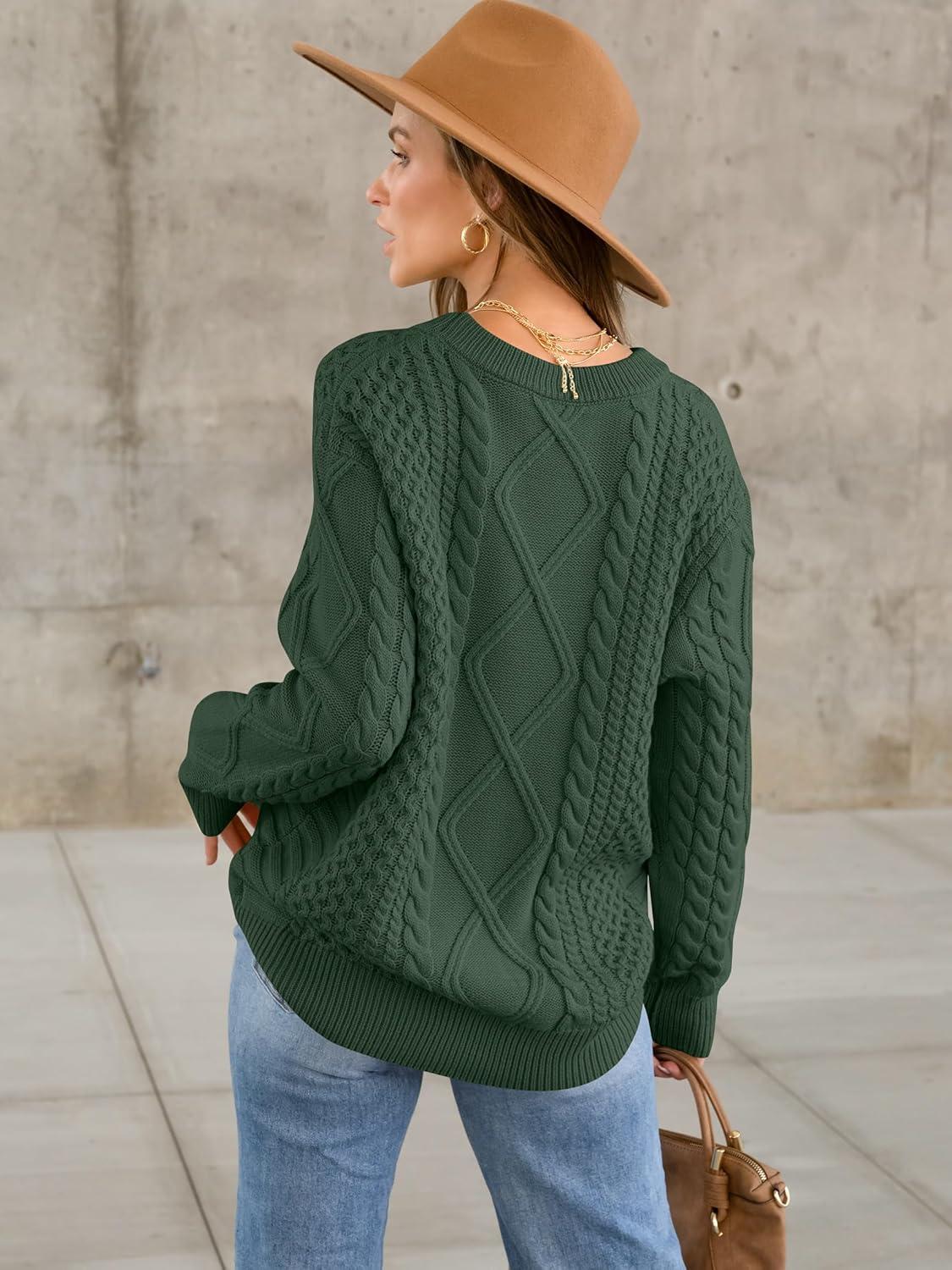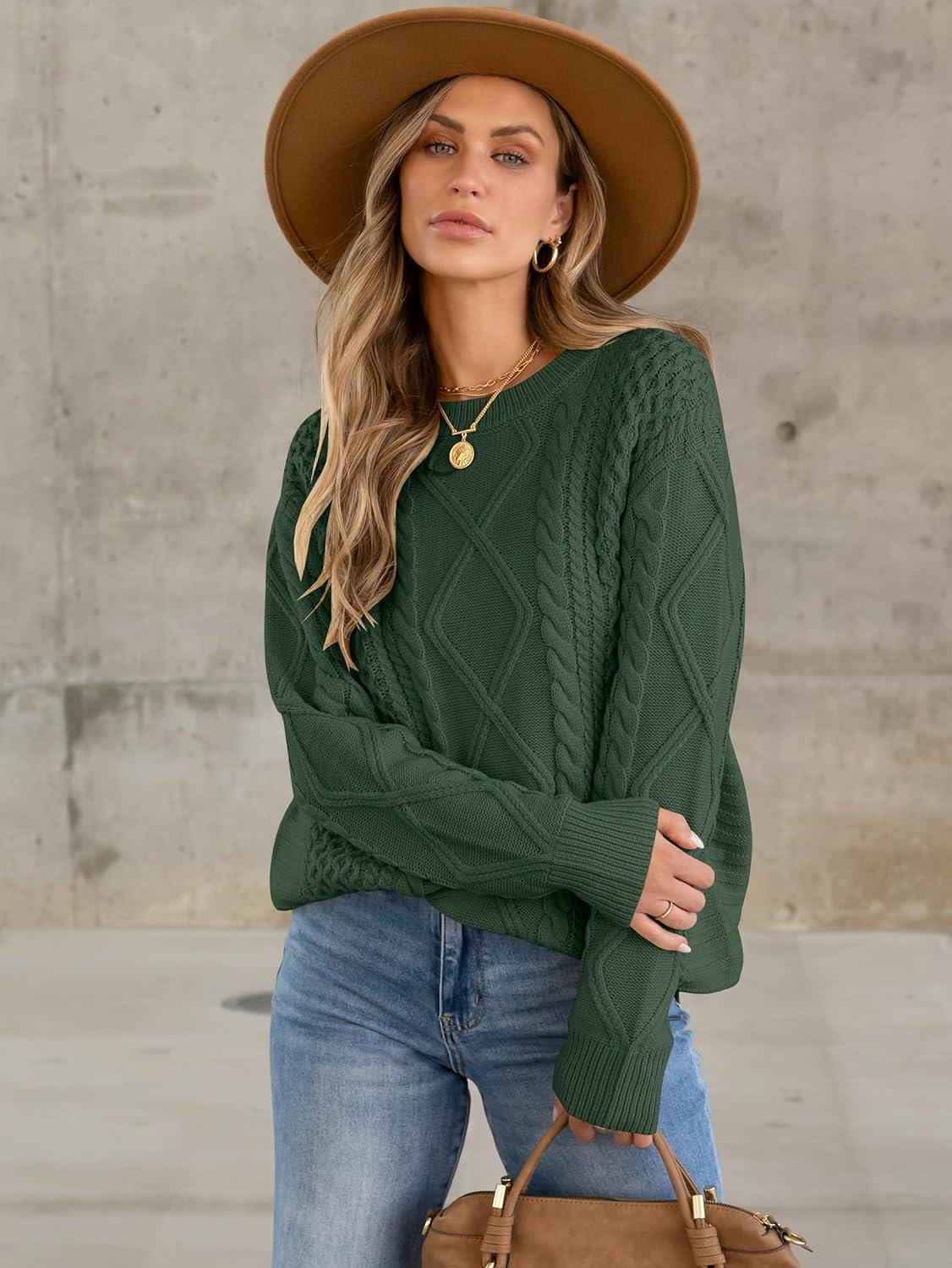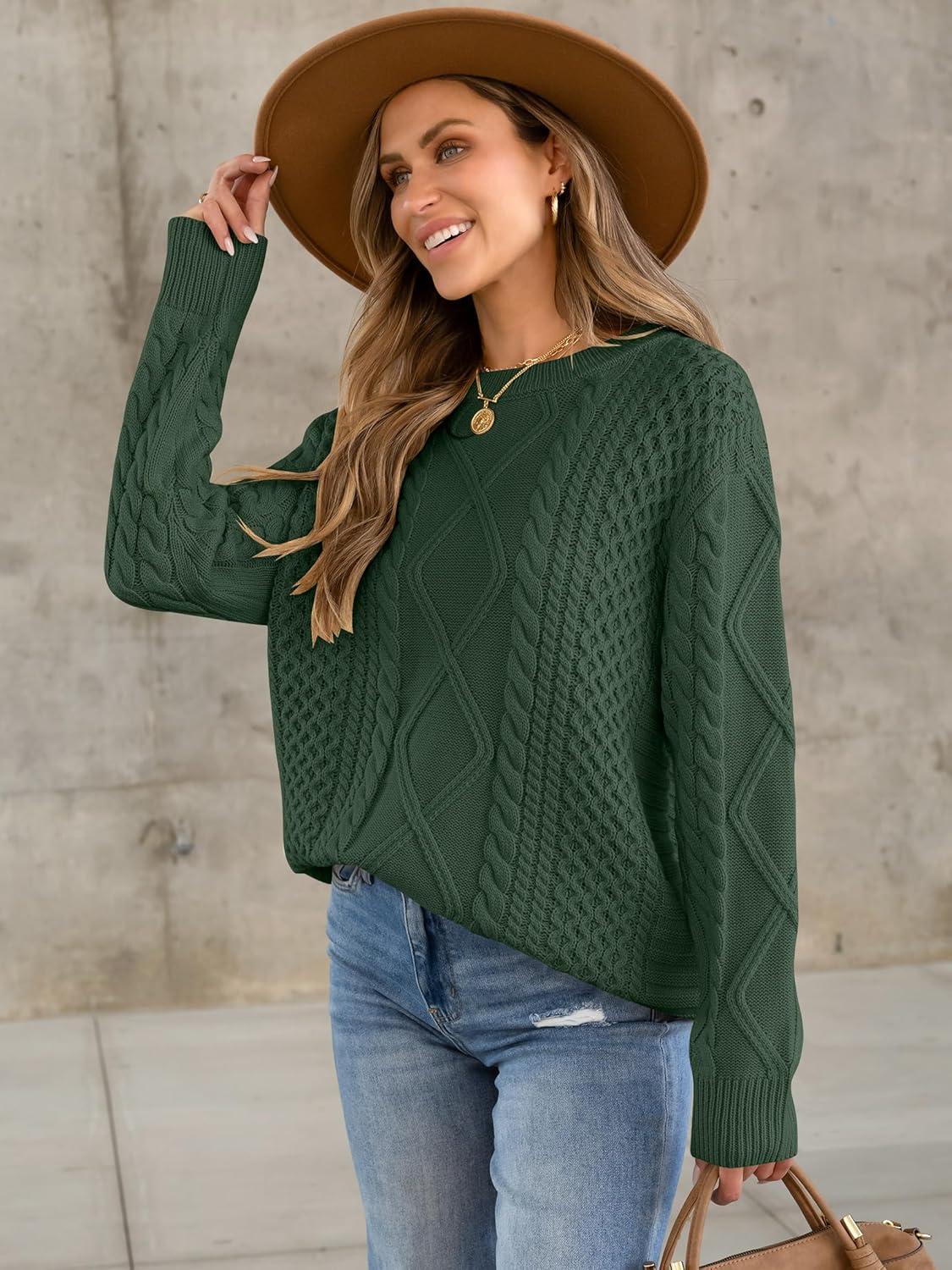ANRABESS Sweaters for Women Oversized Cable Knit Fall Long Sleeve Crewneck Casual Pullover Sweater Tops 2025 Winter Outfits(Deep Green)