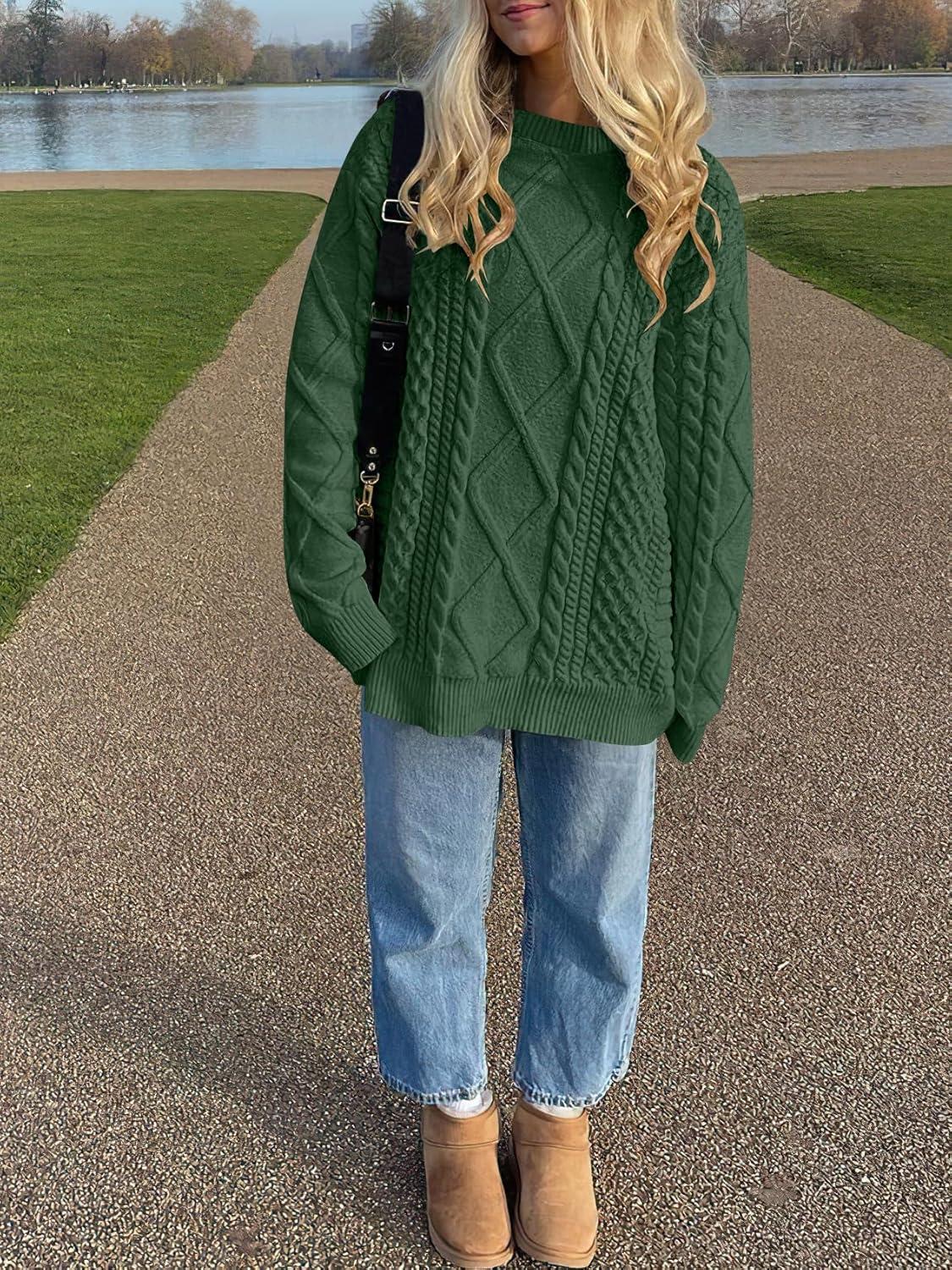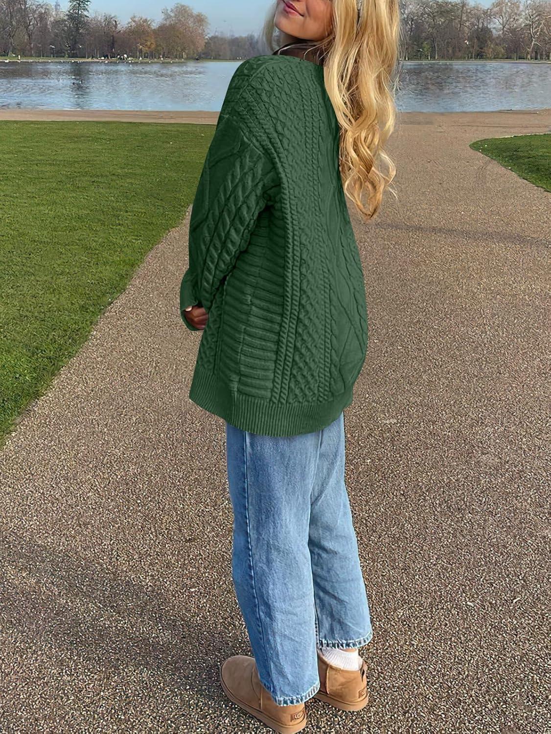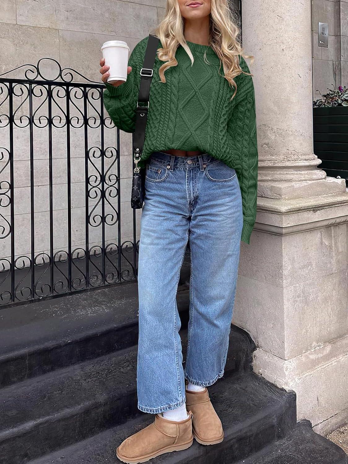 ANRABESS Sweaters for Women Oversized Cable Knit Fall Long Sleeve Crewneck Casual Pullover Sweater Tops 2025 Winter Outfits(Deep Green)