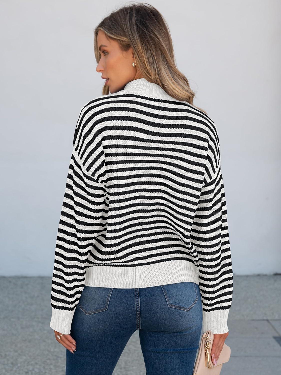 ANRABESS Sweaters for Women Striped Half Zip Long Sleeve Ribbed Knit Pullover Comfy Casual Lightweight Tops 2025 Fall Fashion(Striped Black White)