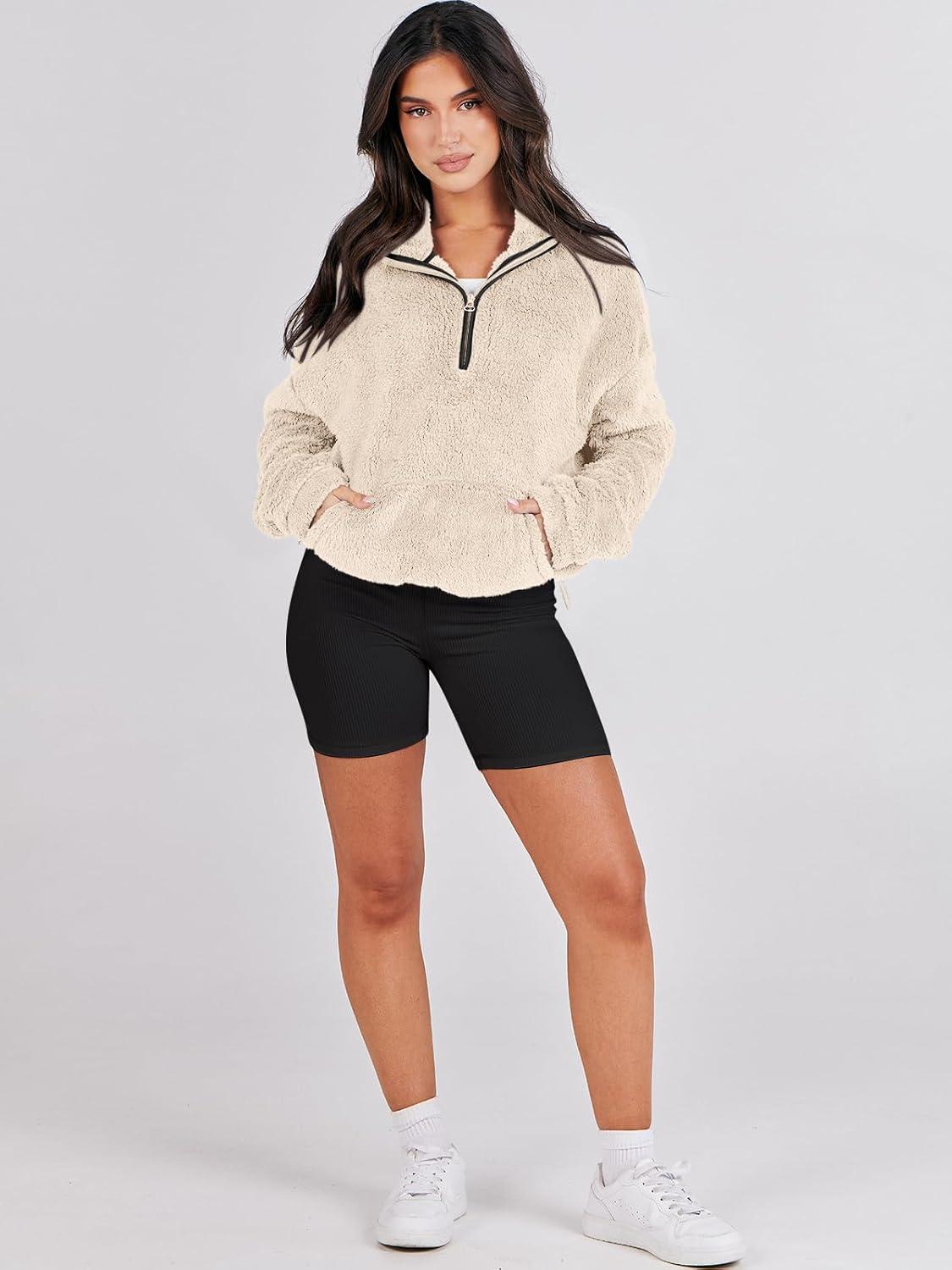 ANRABESS Sweatshirt for Women Zip Up Hoodies Cropped Pullover Fleece Hooded Sherpa Sweaters Tops 2025 Fall Winter Clothes(Apricot)