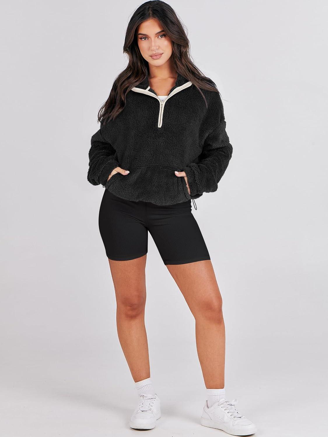 imageANRABESS Sweatshirt for Women Zip Up Hoodies Cropped Pullover Fleece Hooded Sherpa Sweaters Tops 2025 Fall Winter ClothesBlack