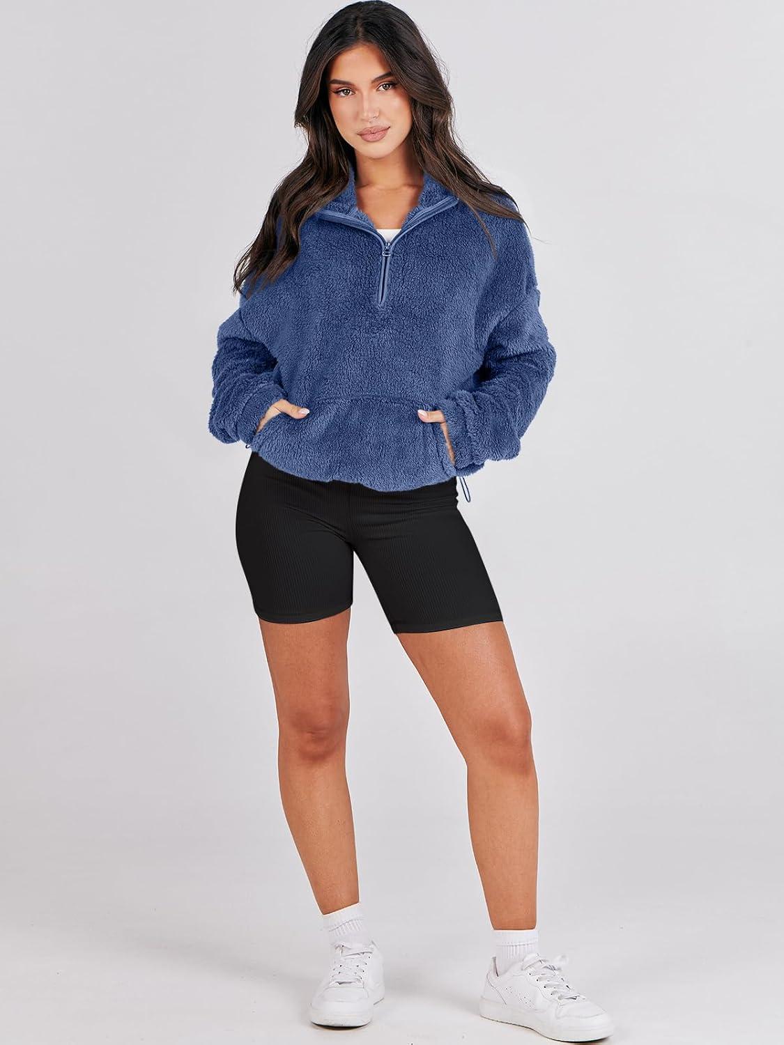 ANRABESS Sweatshirt for Women Zip Up Hoodies Cropped Pullover Fleece Hooded Sherpa Sweaters Tops 2025 Fall Winter Clothes(Deep Blue)