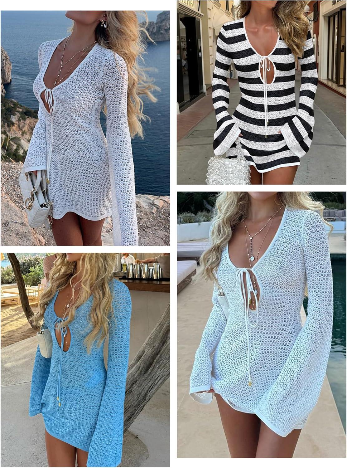 Be the first to review “ANRABESS Swimsuit Cover Up for Women Crochet Bathing Suit 2026 Summer Swimwear V Neck Mesh Knit Dress Beach Vacation Clothes(Black White Stripe)”