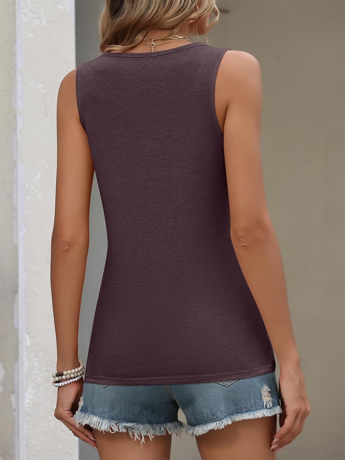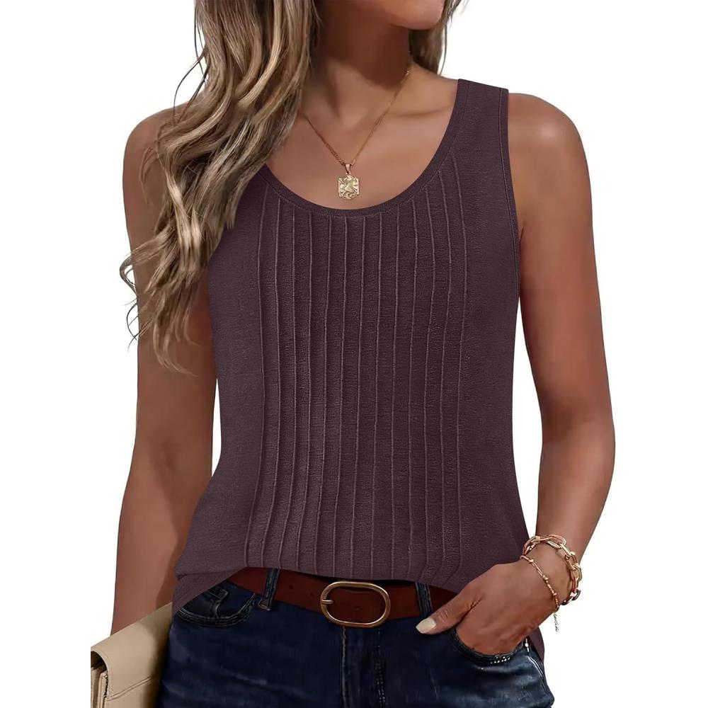 ANRABESS Tank Top for Women 2026 Summer Casual Sleeveless Scoop Neck Pleated Dressy Shirts Cute Beach Vacation Clothes(Maroon)