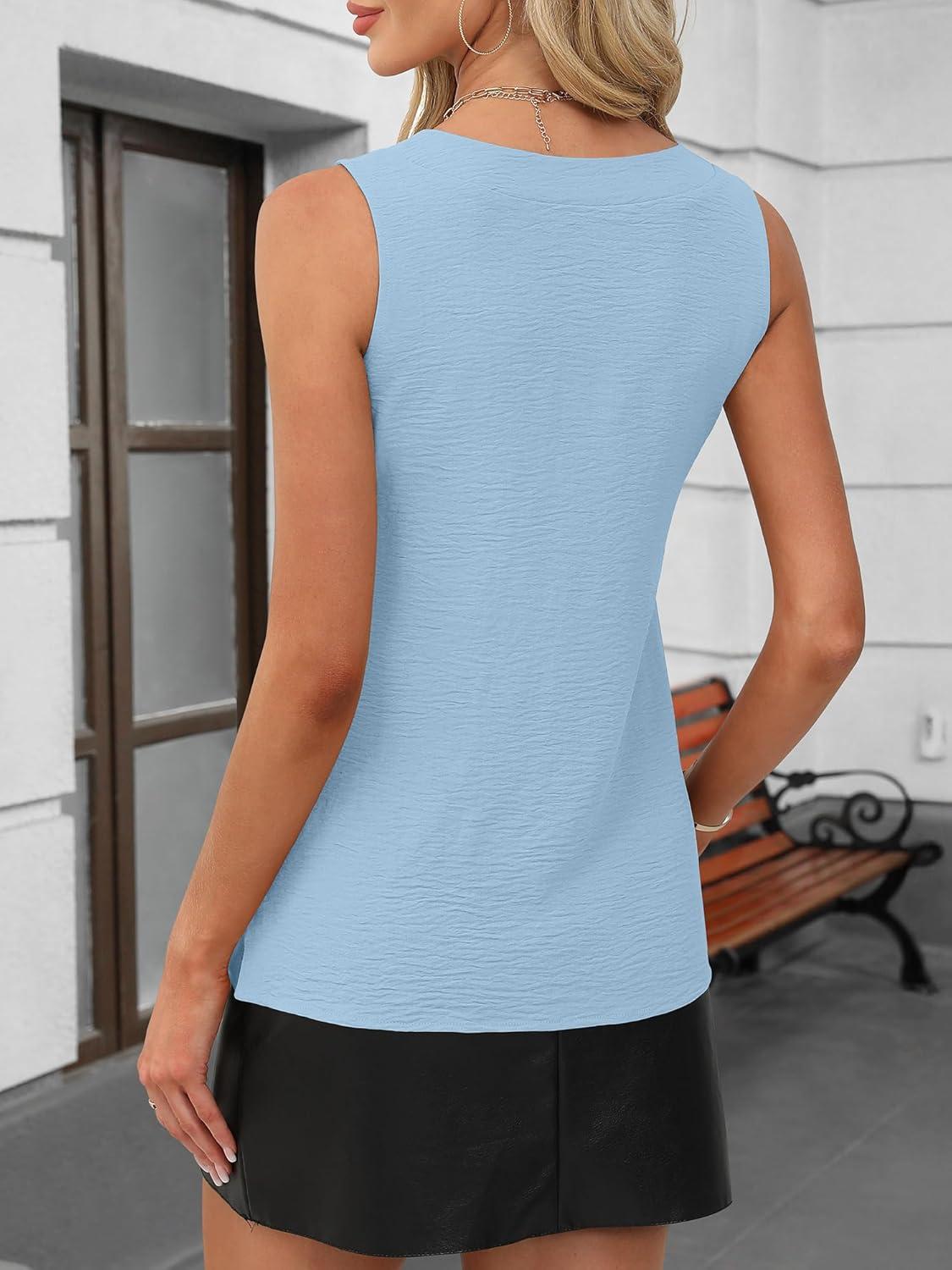 ANRABESS Tank Top for Women Dressy Casual Business Work Blouses Sleeveless V Neck Textured Tops 2025 Spring Summer Outfits(Light Blue)
