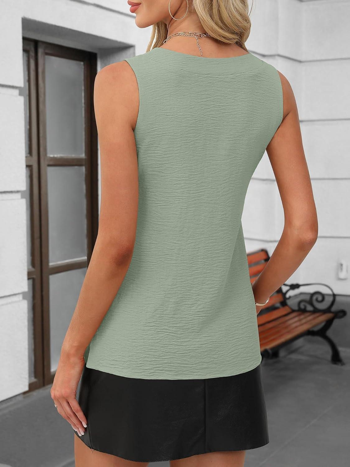 imageANRABESS Tank Top for Women Dressy Casual Business Work Blouses Sleeveless V Neck Textured Tops 2025 Spring Summer OutfitsLight Green