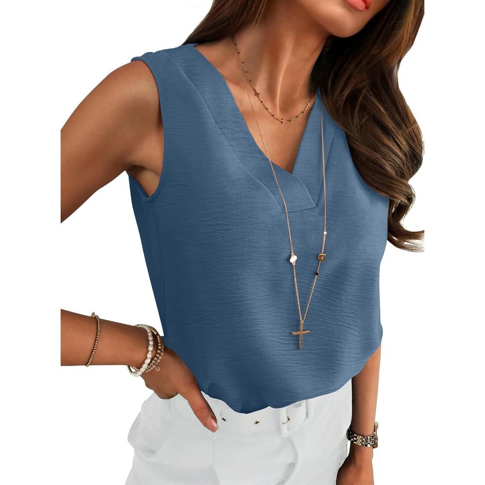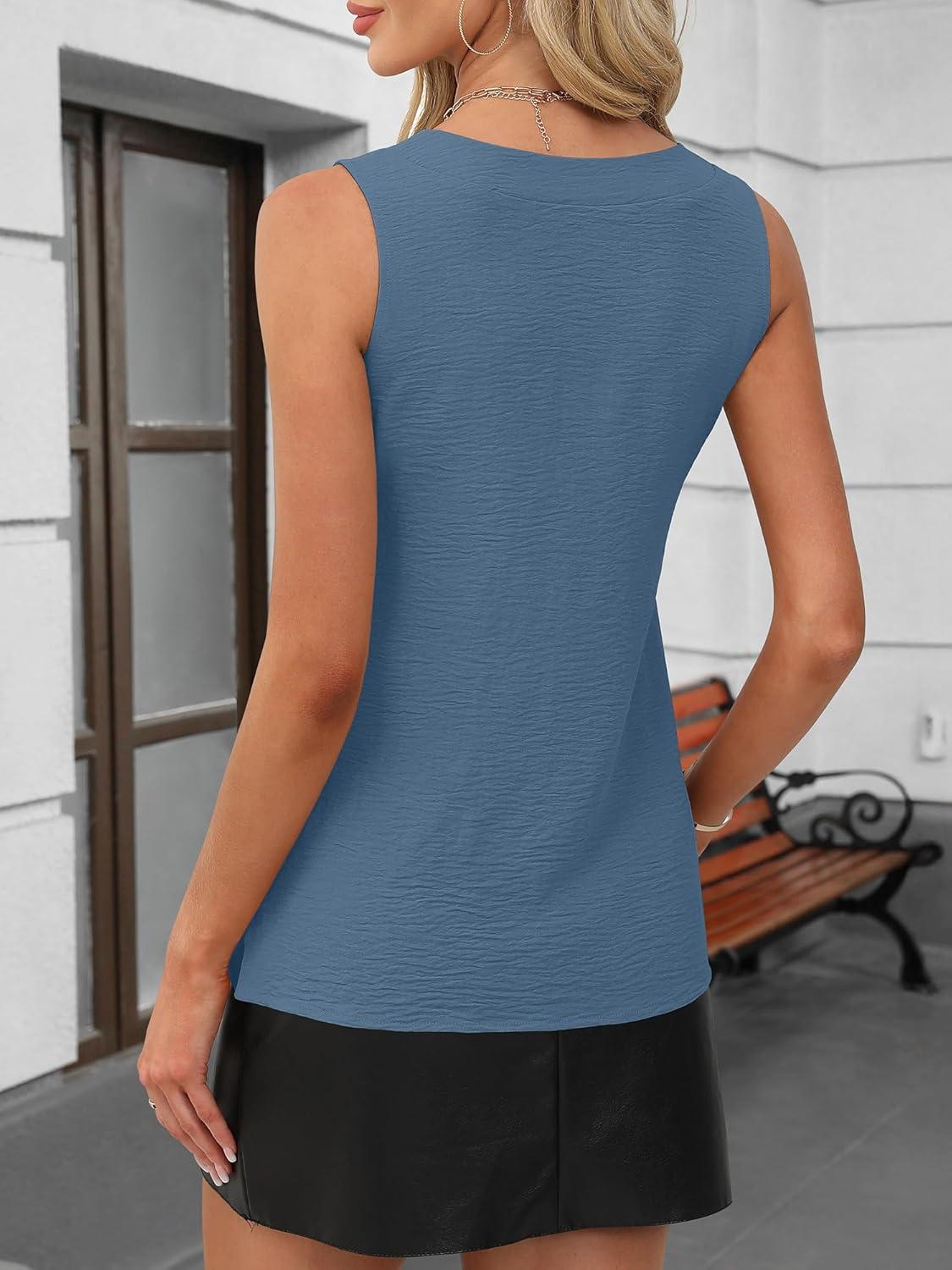 ANRABESS Tank Top for Women Dressy Casual Business Work Blouses Sleeveless V Neck Textured Tops 2026 Spring Summer Outfits(Lake Blue)