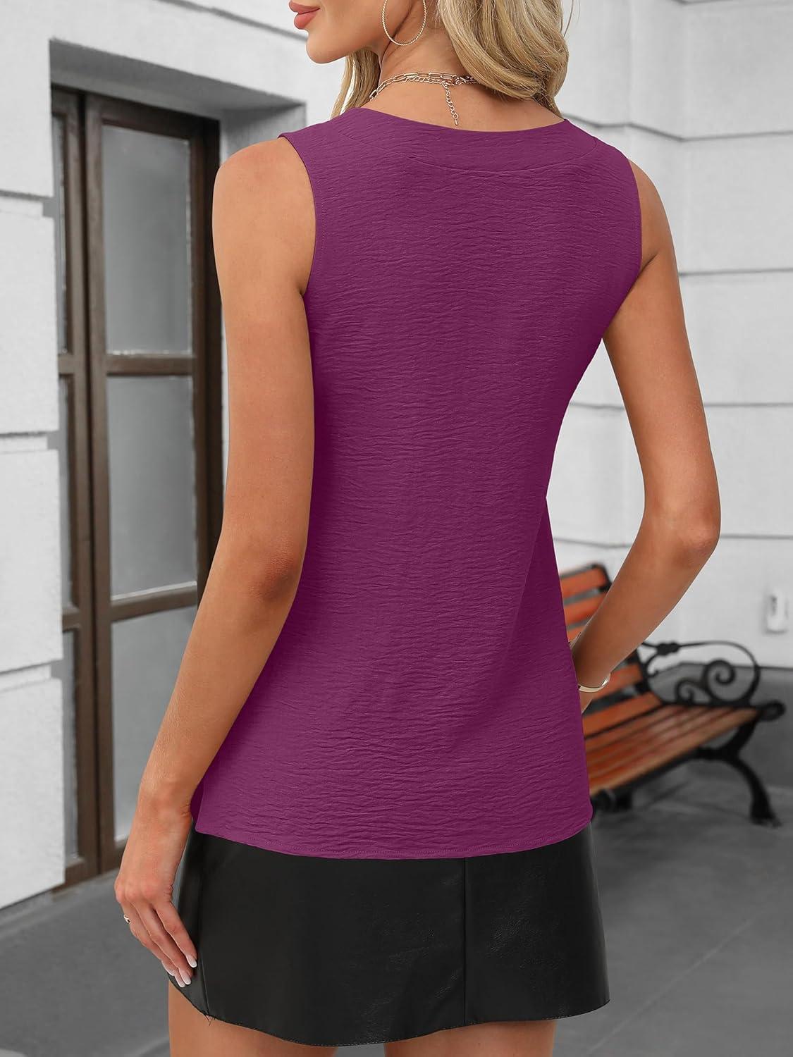 ANRABESS Tank Top for Women Dressy Casual Business Work Blouses Sleeveless V Neck Textured Tops 2026 Spring Summer Outfits(Purple)