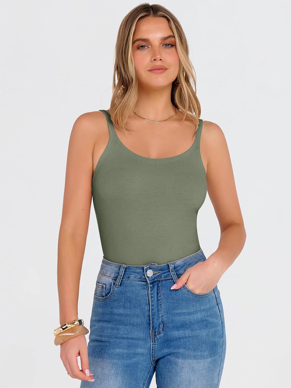 ANRABESS Tank Top for Womens Summer 2026 Scoop Neck Sleeveless Ribbed Knit Workout Basic Tees Slim Fitted Cami Shirts(Sage Green)