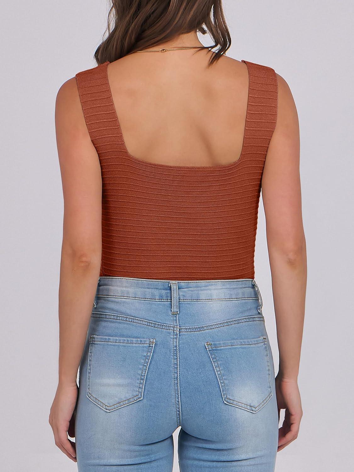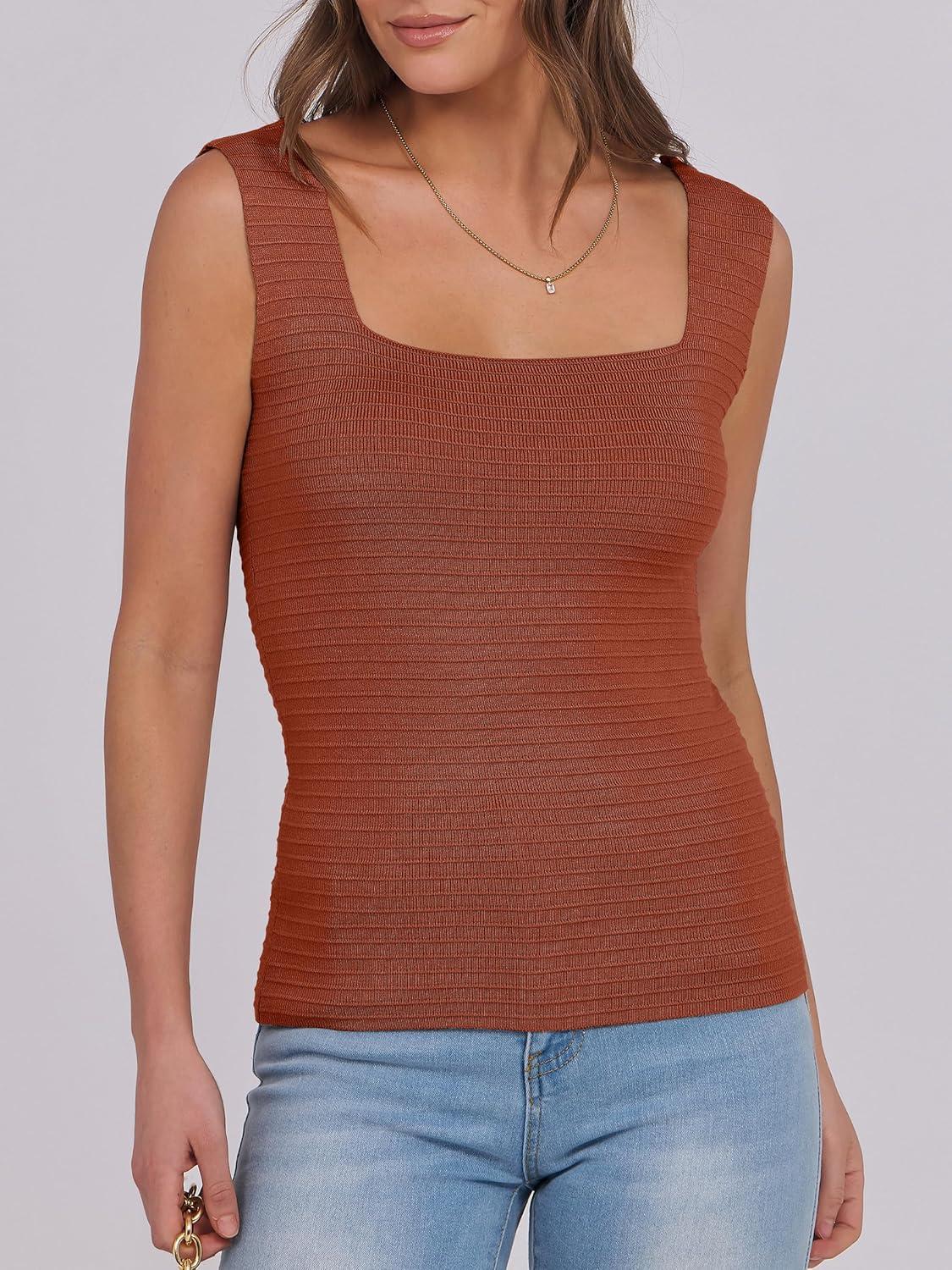 ANRABESS Tank Tops for Women 2026 Summer Square Neck Sleeveless Rib Knit Basic Slim Fit Shirts Casual Basic Workout Clothes(Rust)