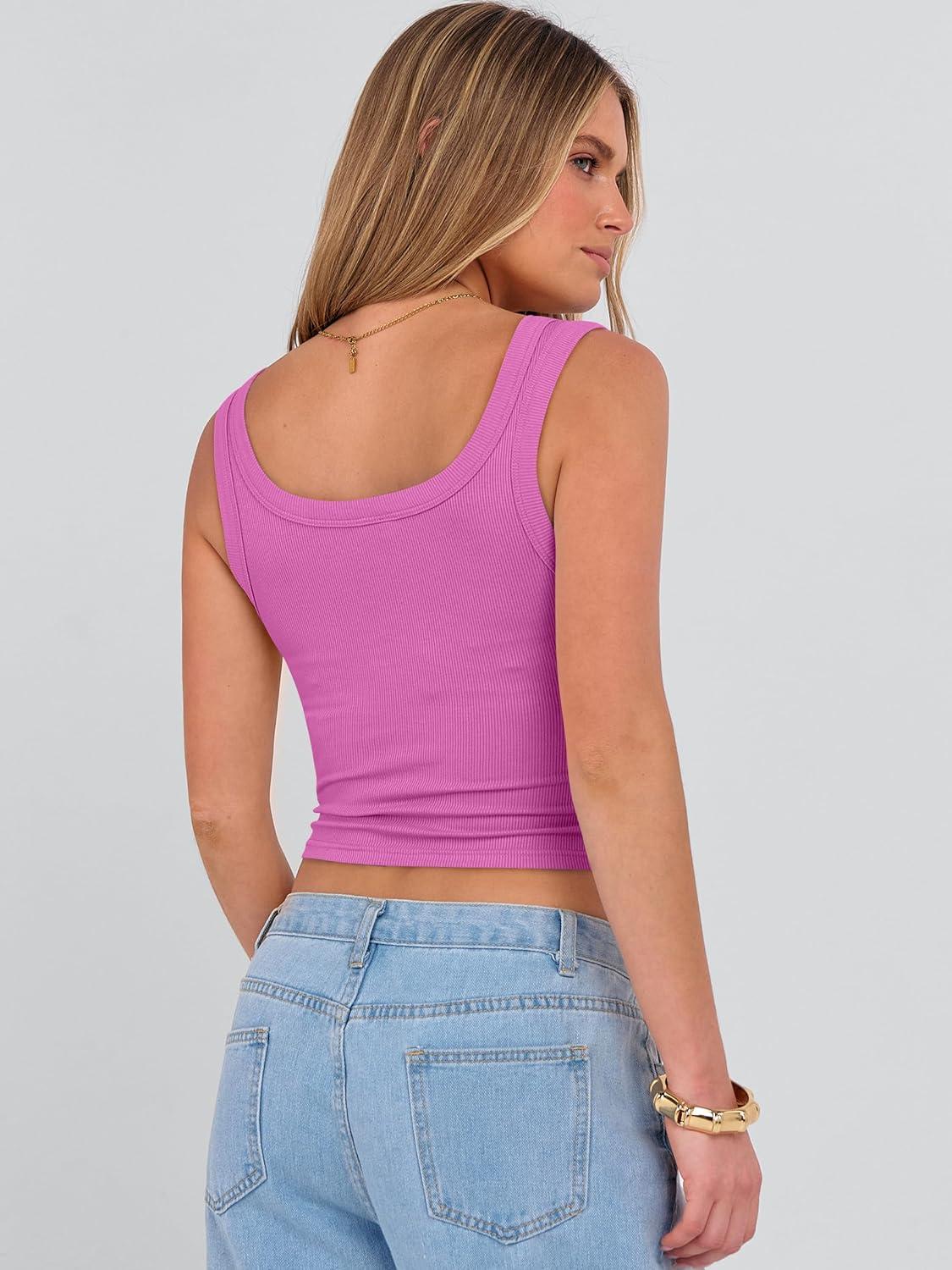 ANRABESS Tank Tops for Women Scoop Neck Crop Sleeveless Top Summer Going Out Basic Tee Cute Ribbed Slim Shirts Clothes 2026(Hot Pink)