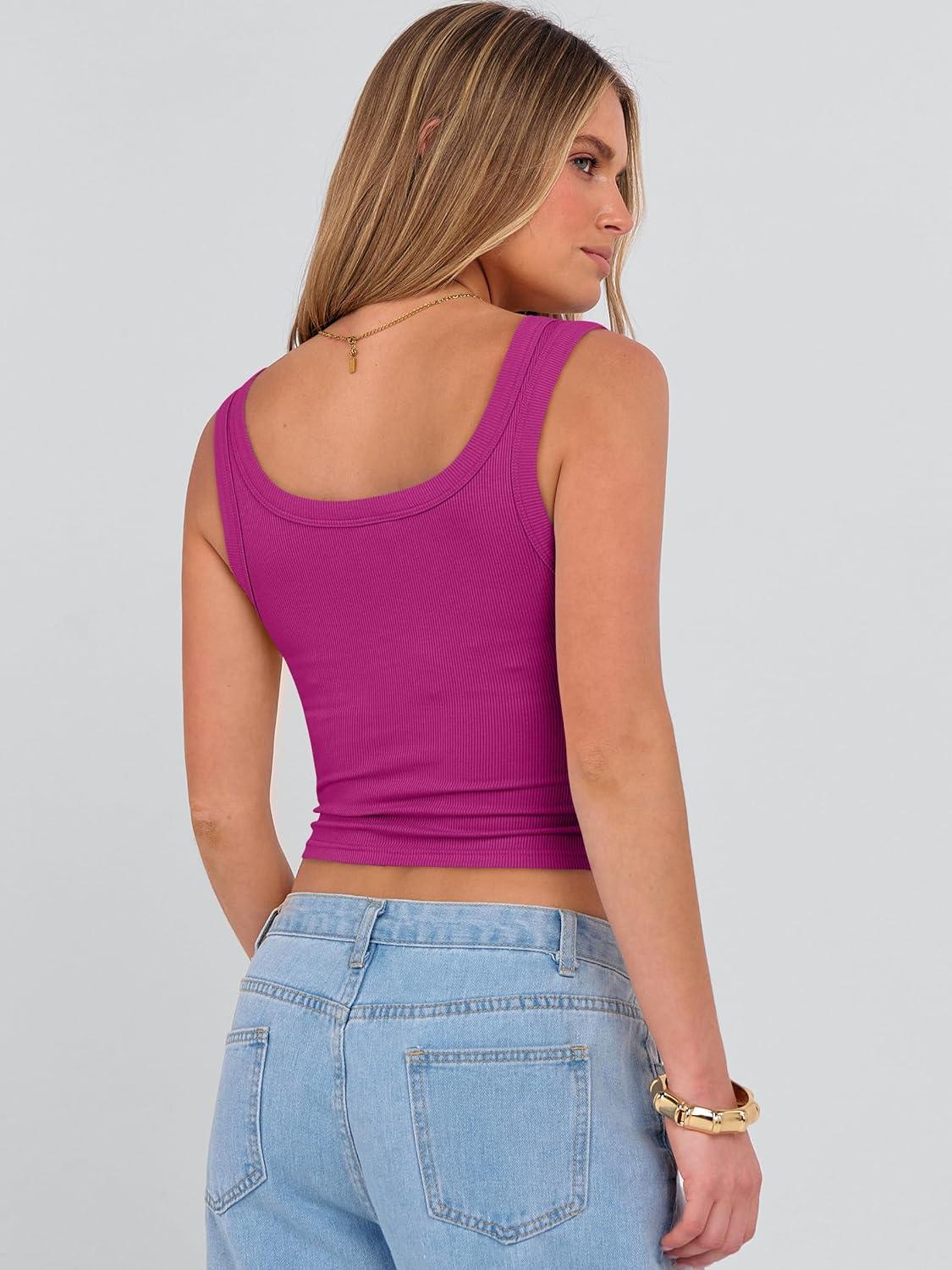 ANRABESS Tank Tops for Women Scoop Neck Crop Sleeveless Top Summer Going Out Basic Tee Cute Ribbed Slim Shirts Clothes 2026(Purple Red)