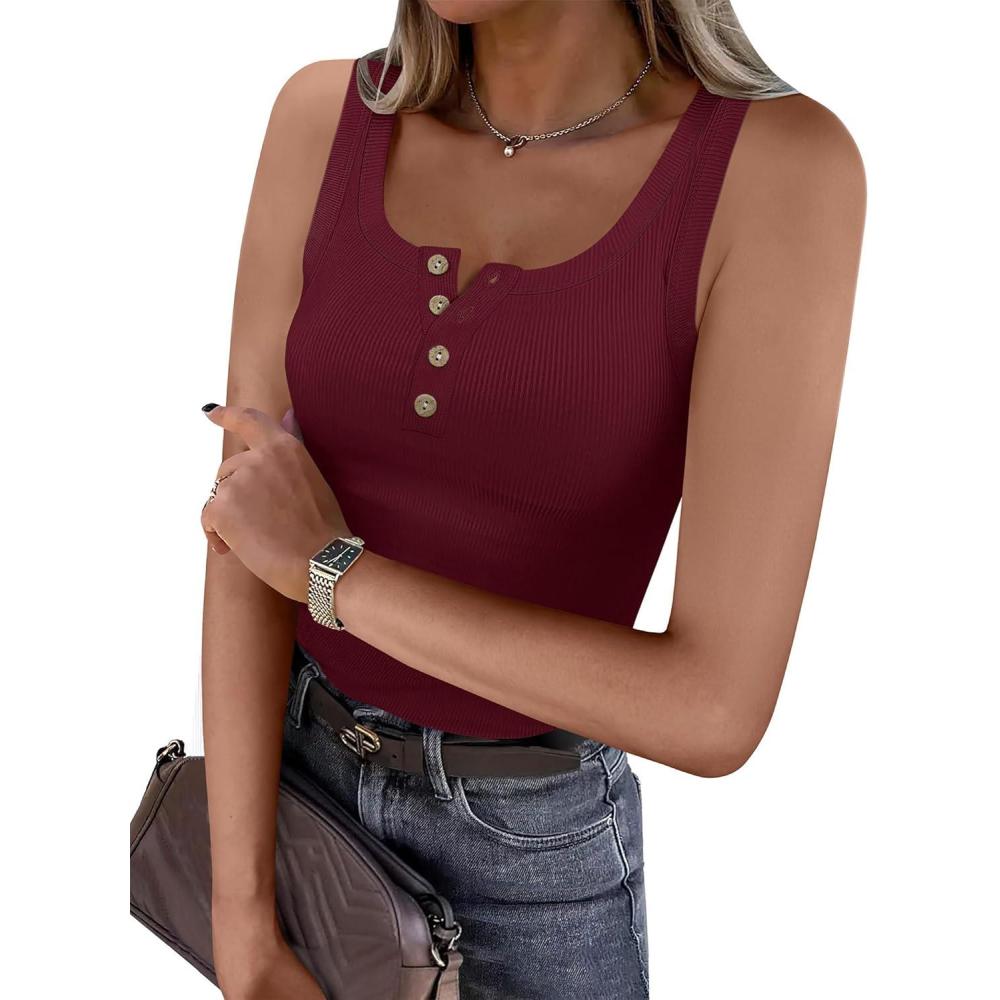imageANRABESS Tank Tops for Women Summer Basic Ribbed Henley Slim Fitted Sleeveless Cami Shirts Button Up Workout Casual OutfitsDeep Red