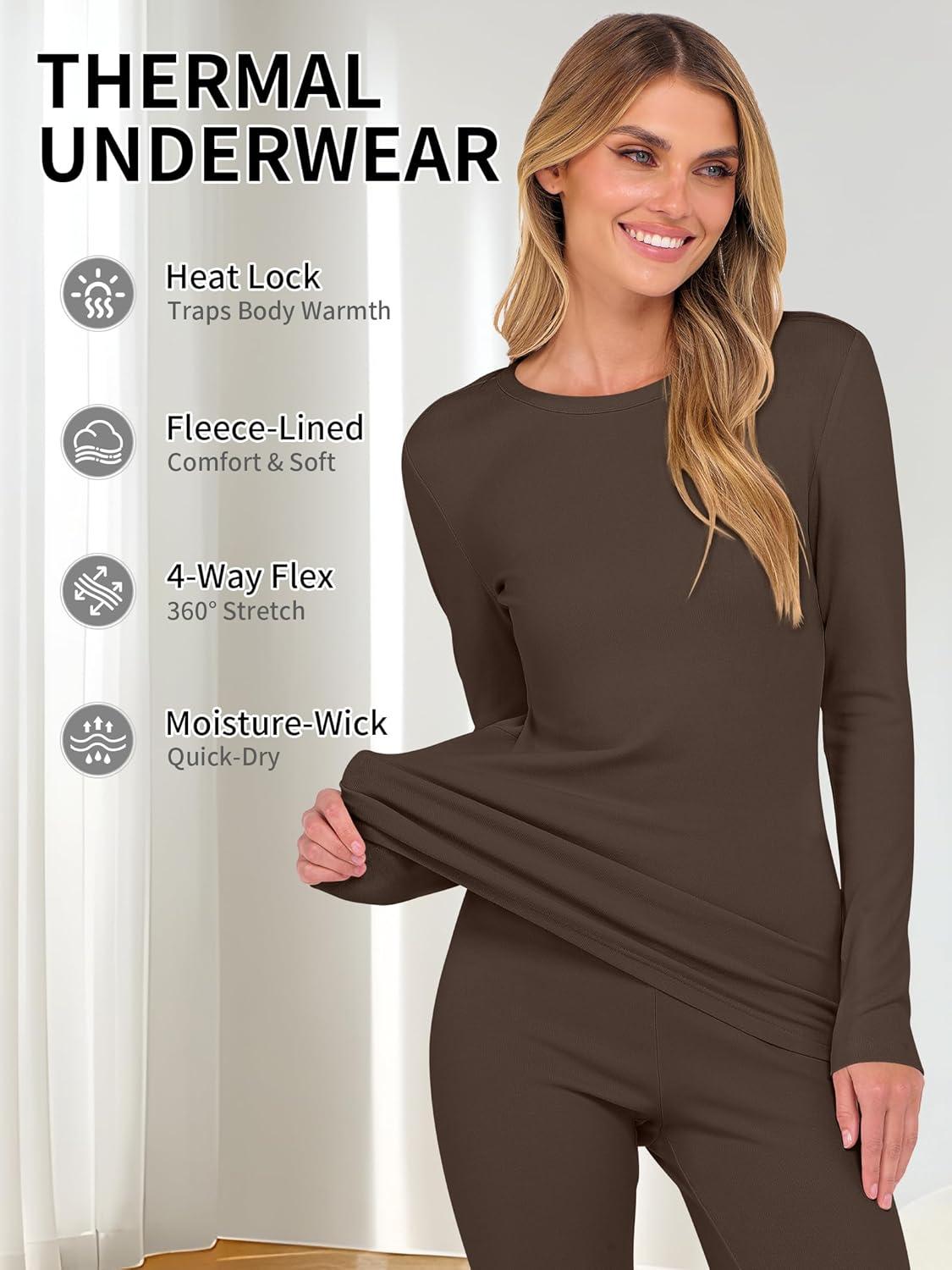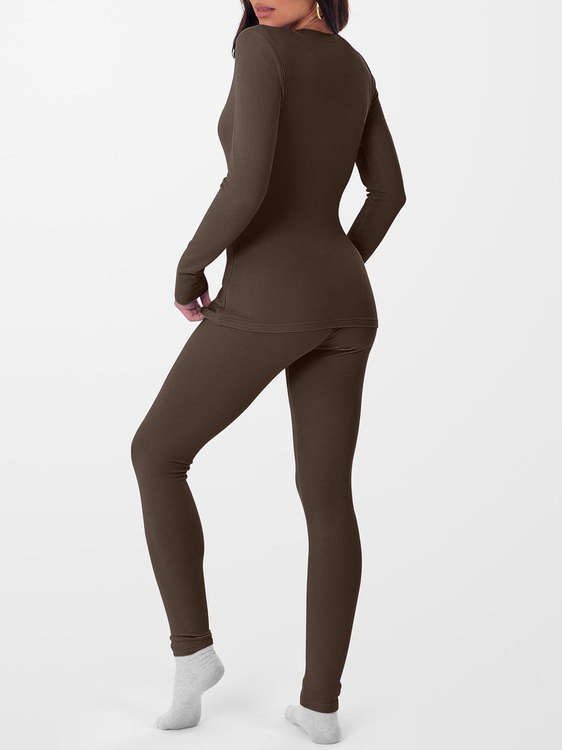 imageANRABESS Thermal Underwear for Women Long Johns Fleece Lined Base Layer Pajama Set Cold Weather Top Bottom Winter ClothingDark Brown