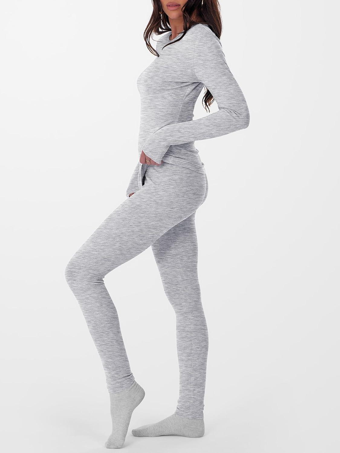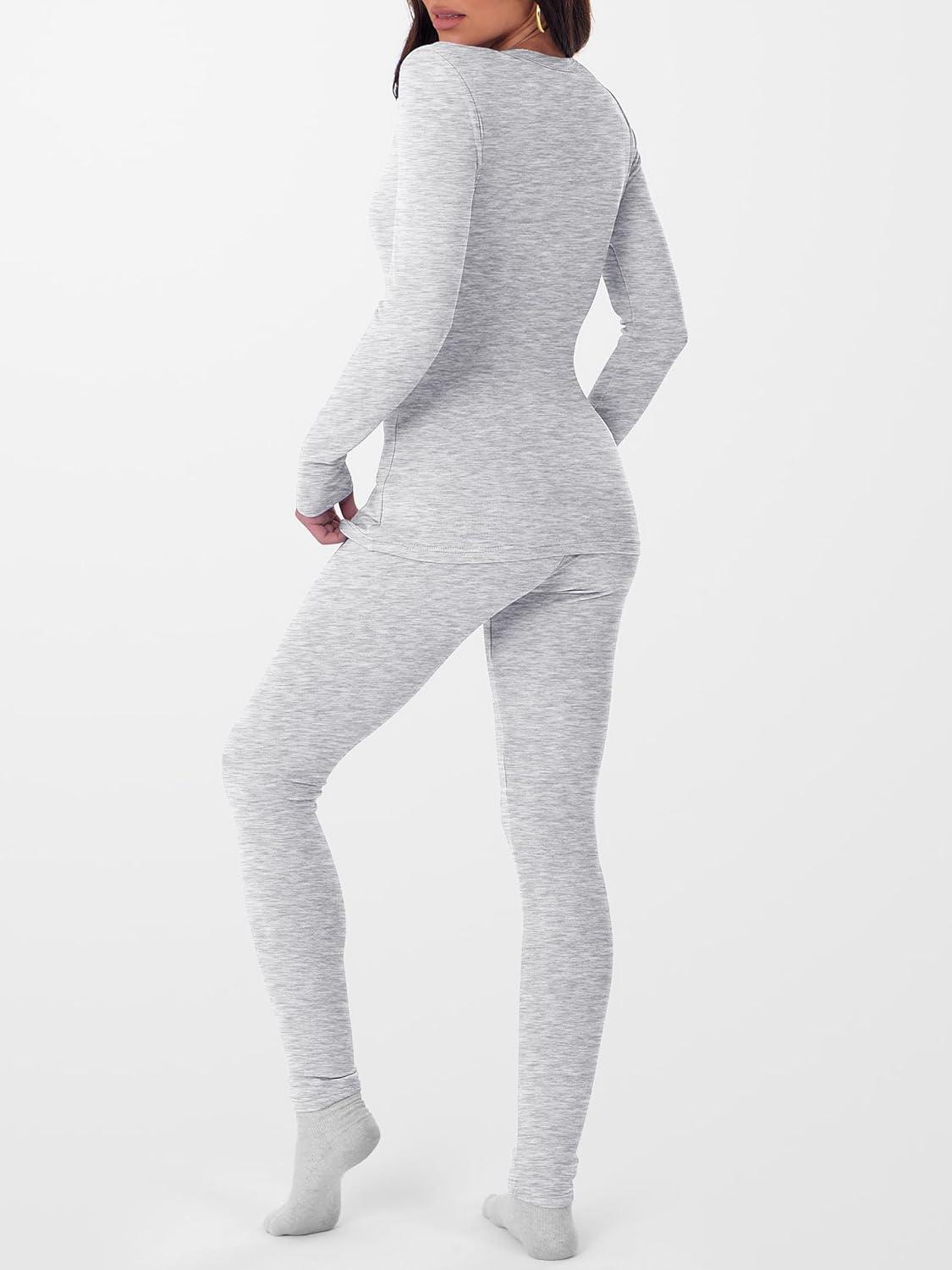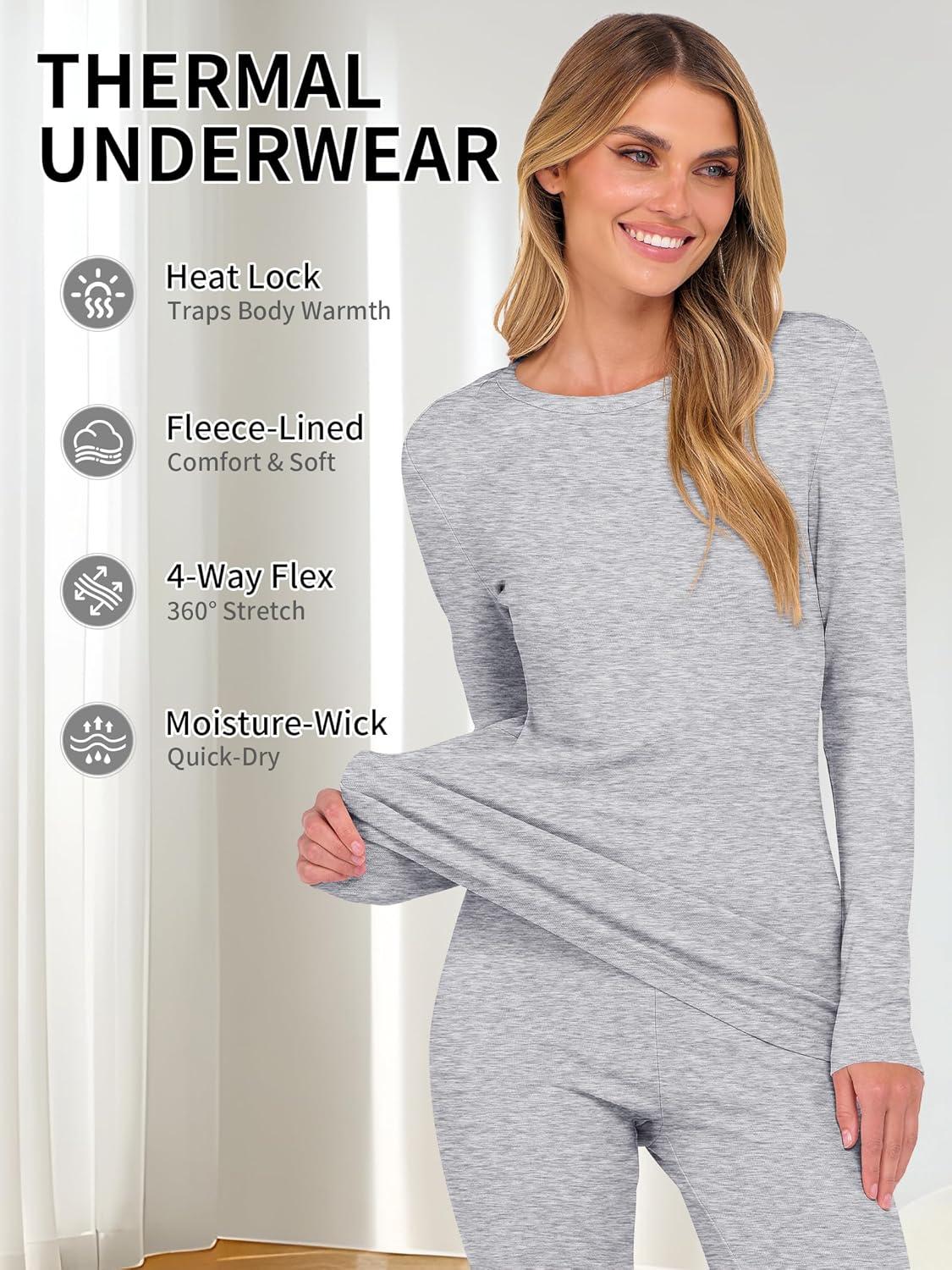 ANRABESS Thermal Underwear for Women Long Johns Fleece Lined Base Layer Pajama Set Cold Weather Top Bottom Winter Clothing(Grey)