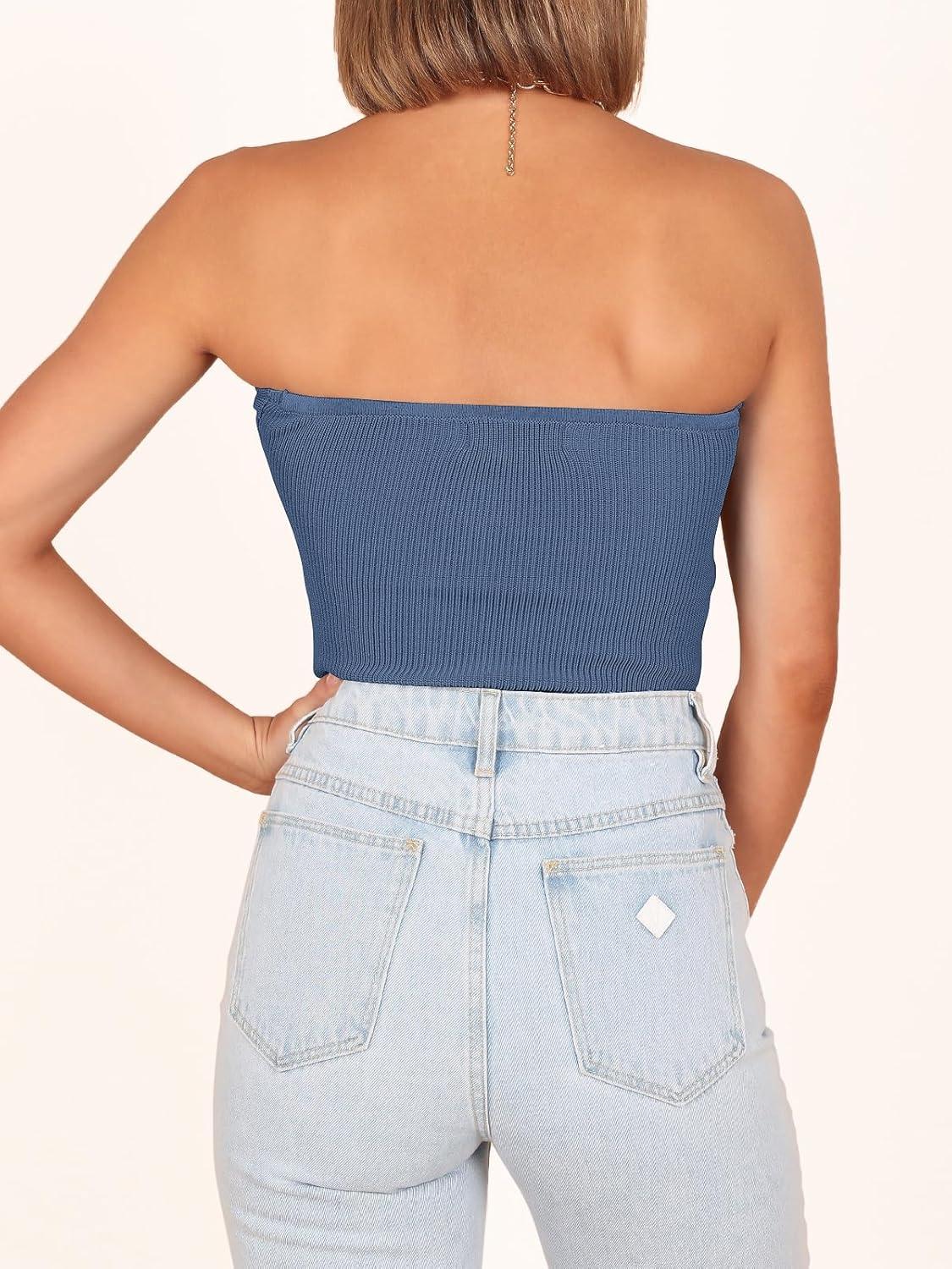 imageANRABESS Tube Top for Women Summer Strapless Bandeau Knit Twist Knot Corset Crop Basic Tank Tops 2026 Vacation Beach ClothesDeep Blue