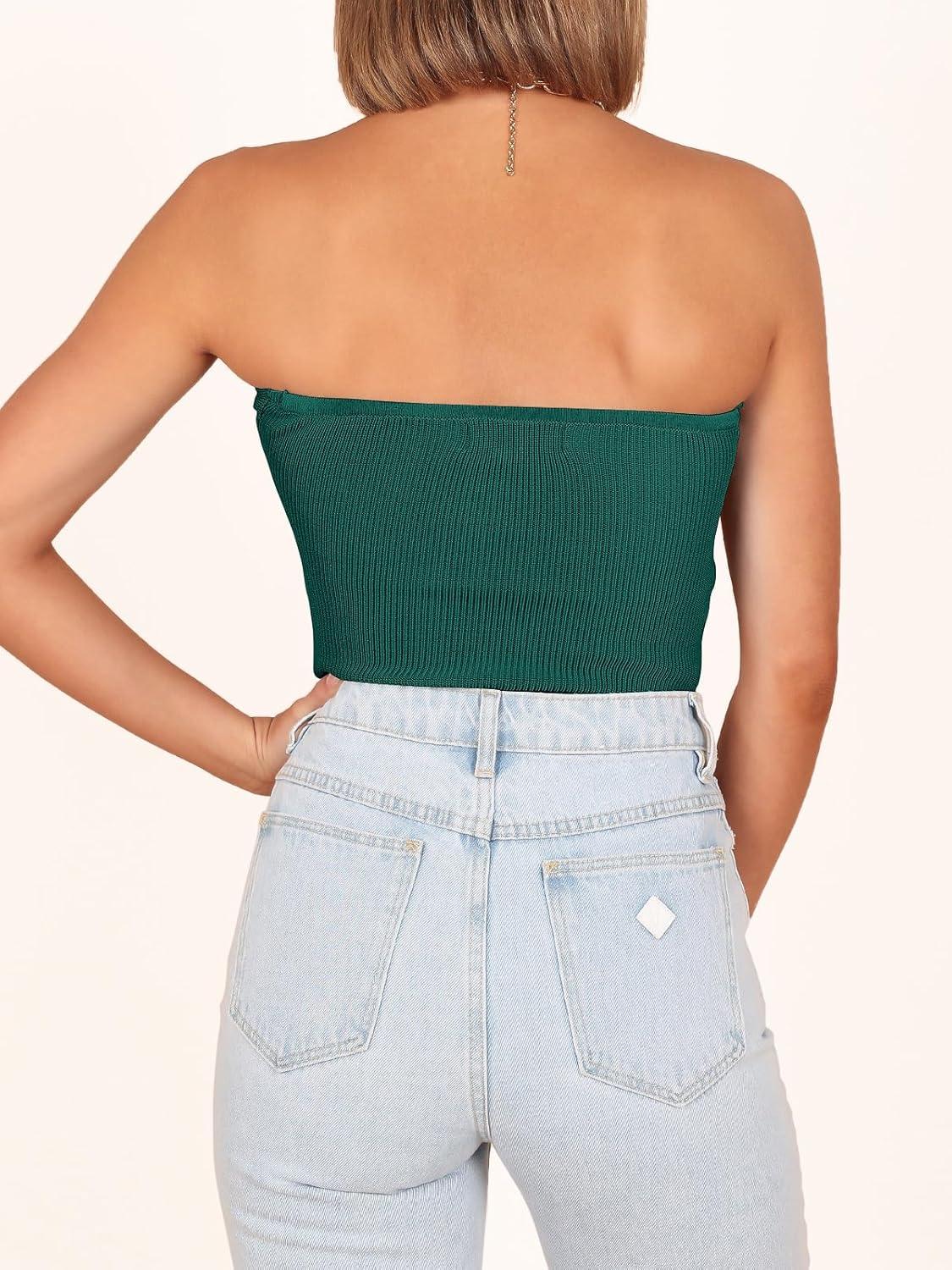 imageANRABESS Tube Top for Women Summer Strapless Bandeau Knit Twist Knot Corset Crop Basic Tank Tops 2026 Vacation Beach ClothesOpal Green