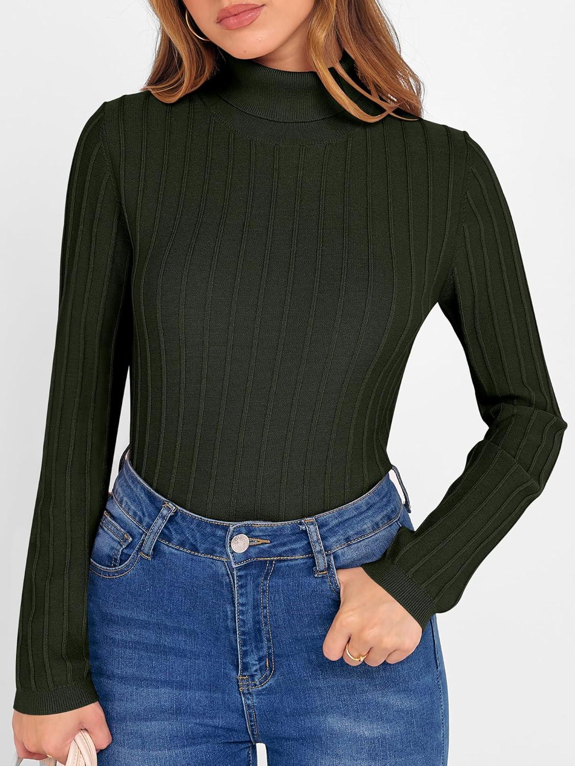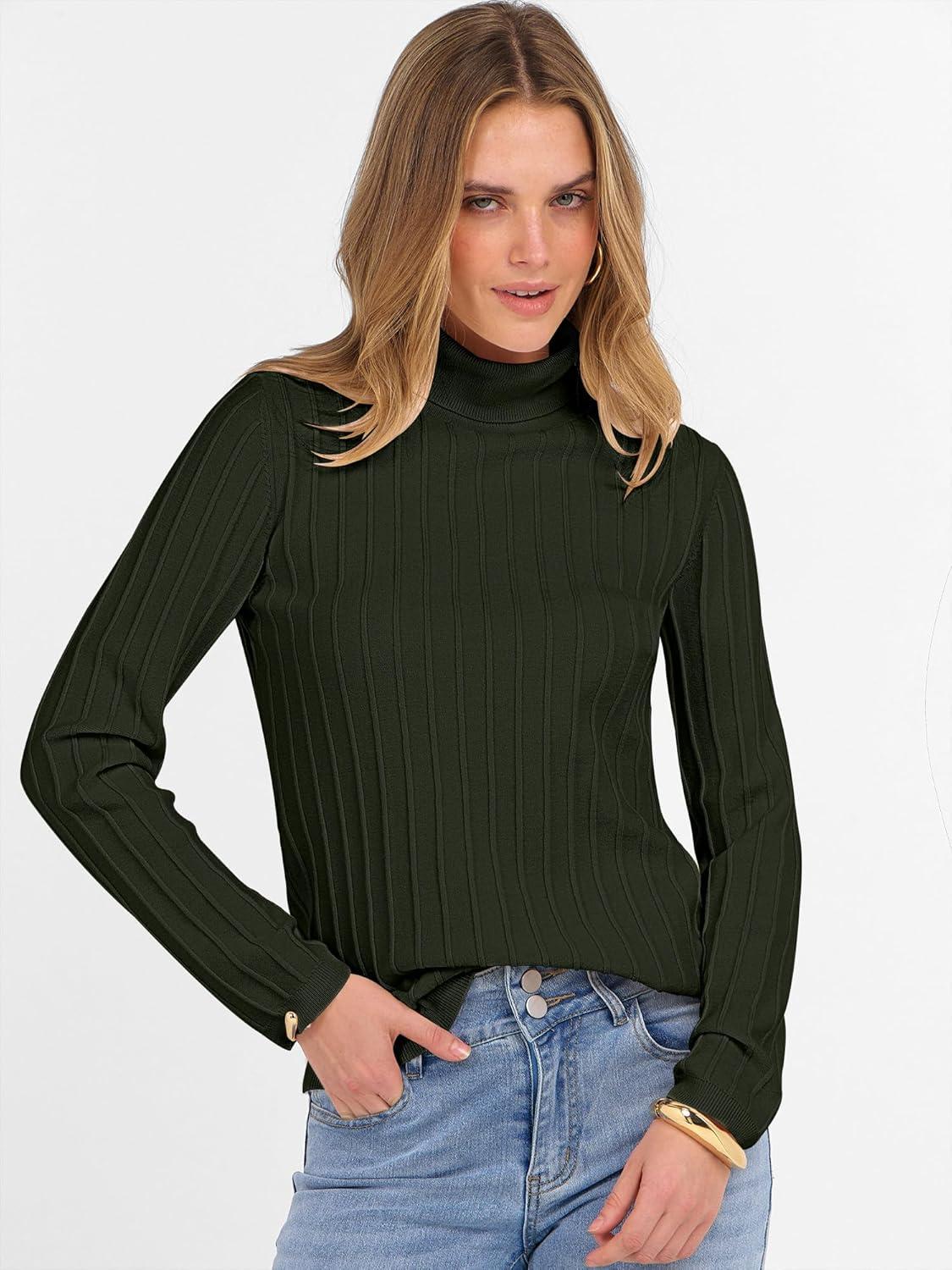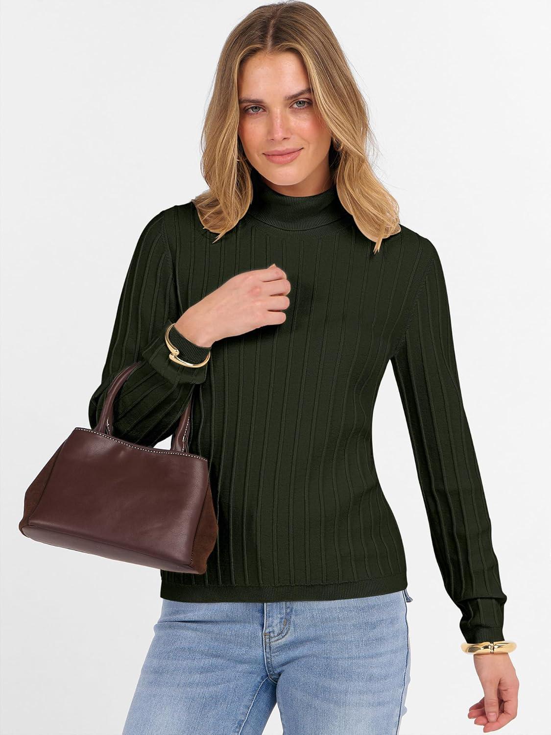 ANRABESS Turtleneck Sweaters for Women 2025 Fall Long Sleeve Dressy Casual Slim Soft Fitted Basic Pullover Tops(Army Green)