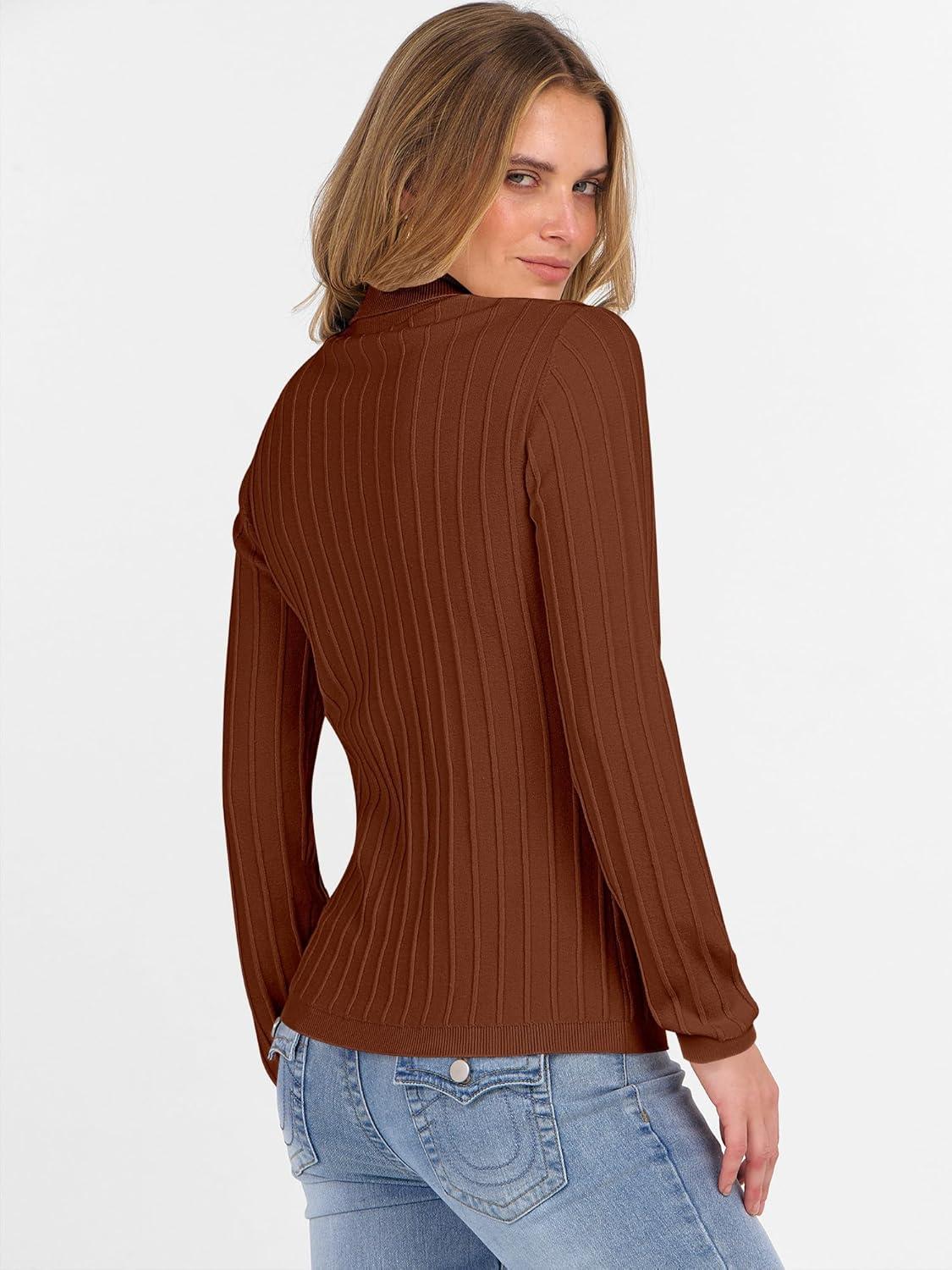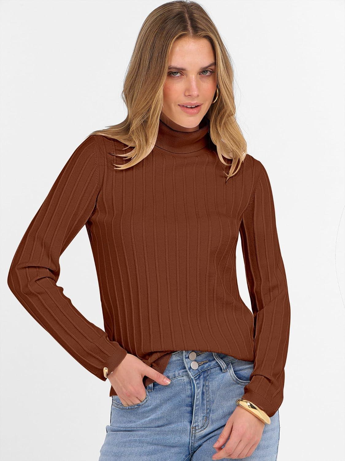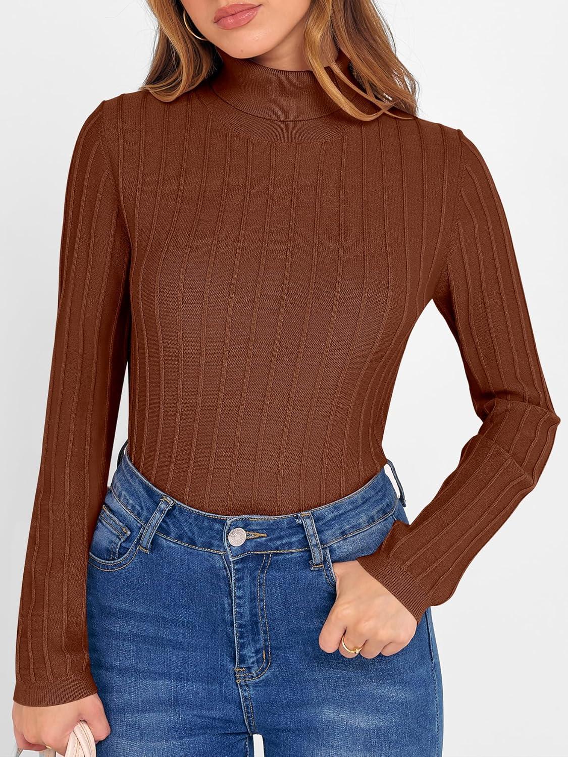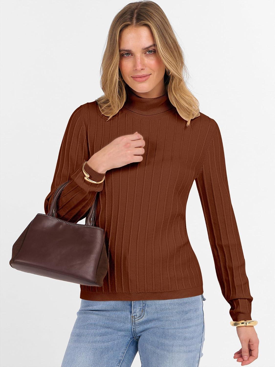 ANRABESS Turtleneck Sweaters for Women 2025 Fall Long Sleeve Dressy Casual Slim Soft Fitted Basic Pullover Tops(Auburn)